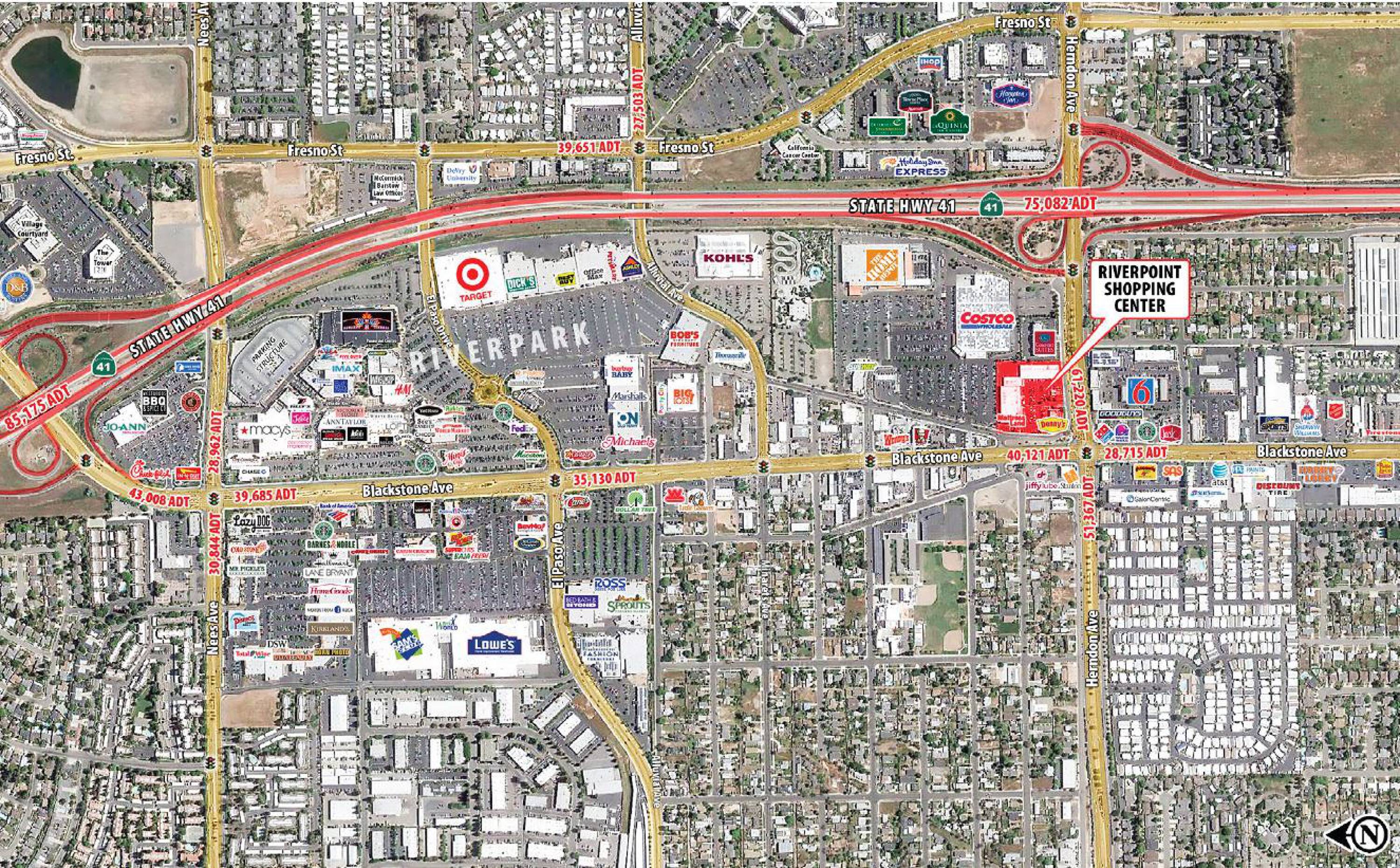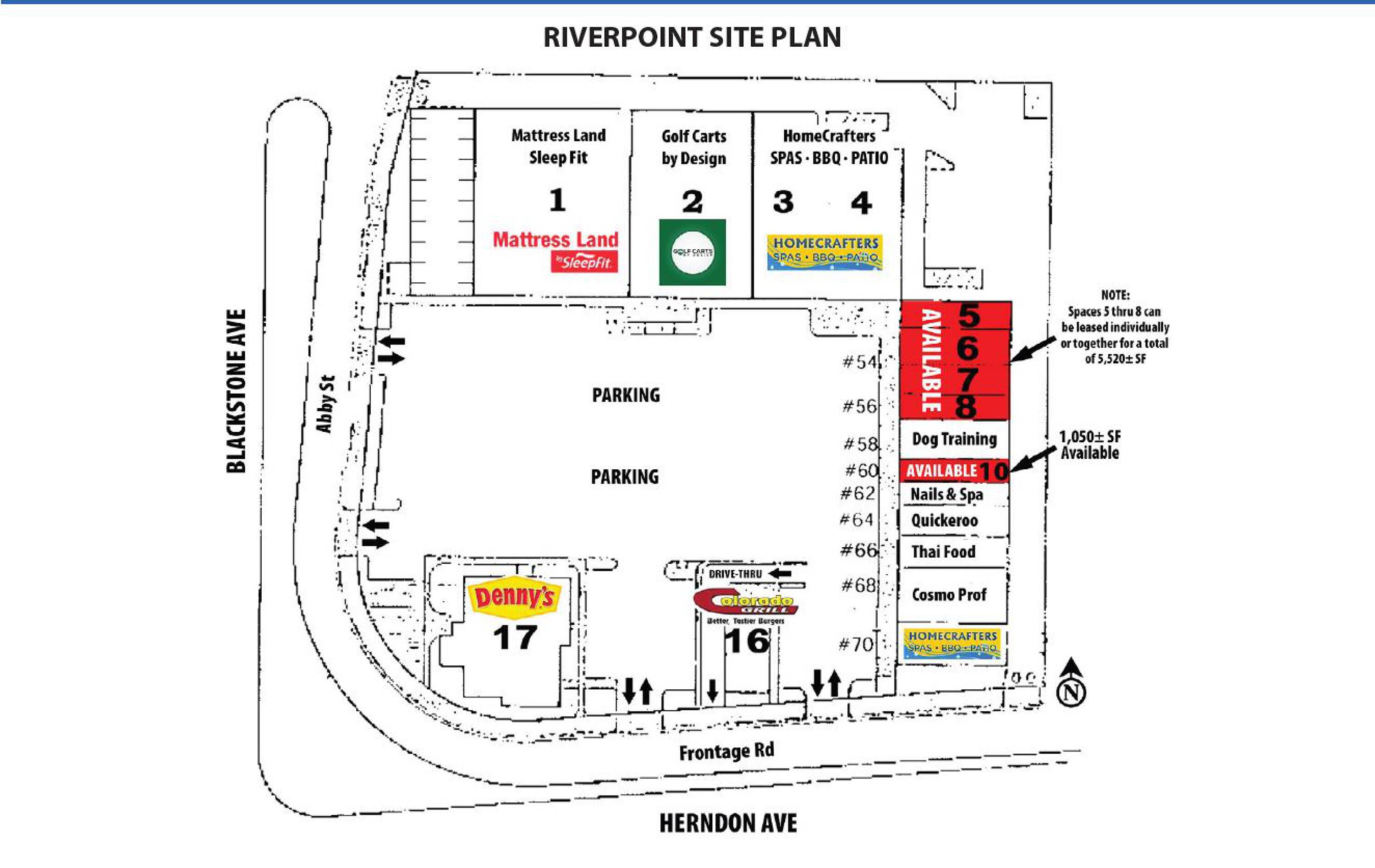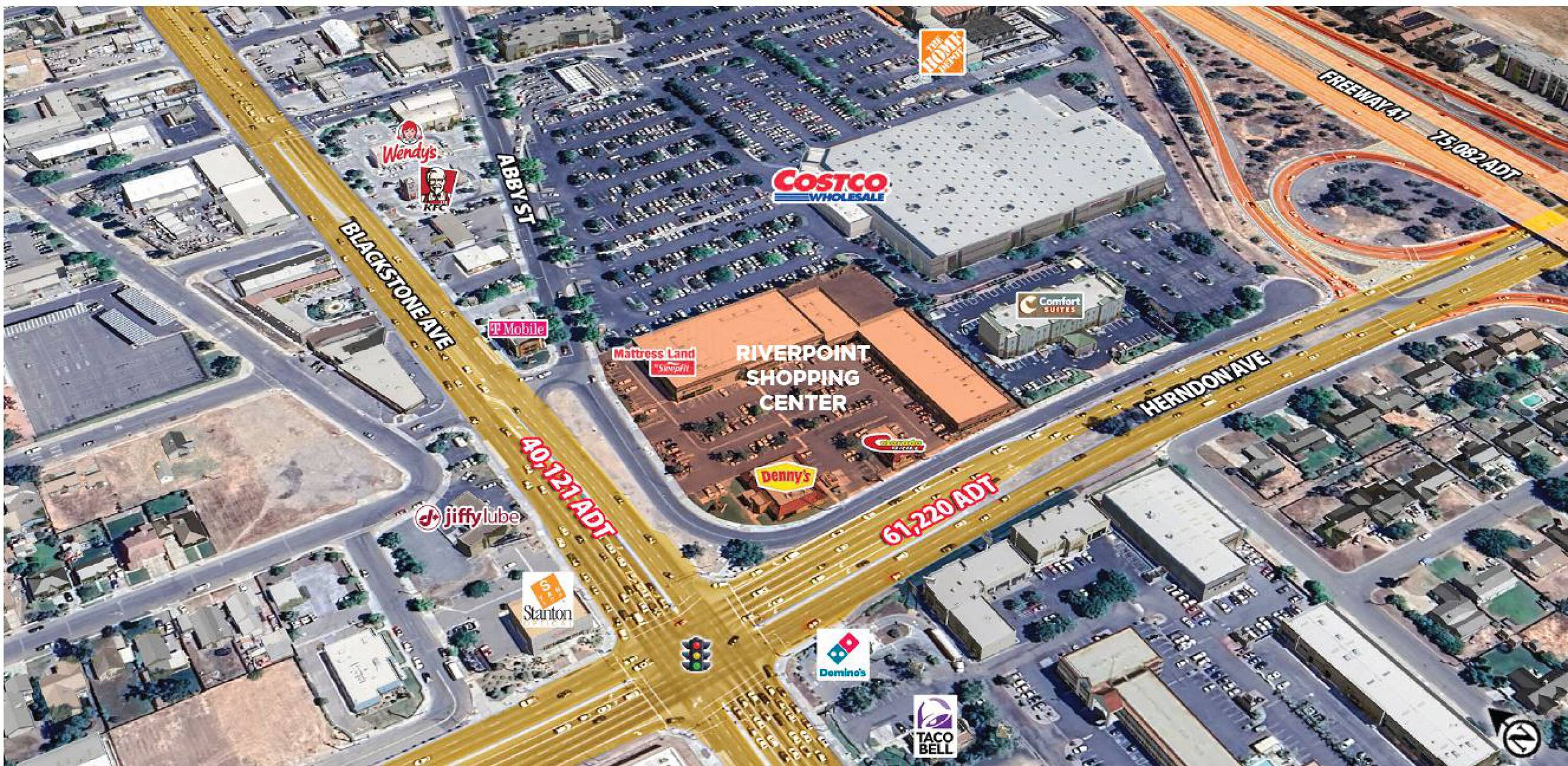Retail spaces available in Riverpoint Shopping Center, Fresno, CA.