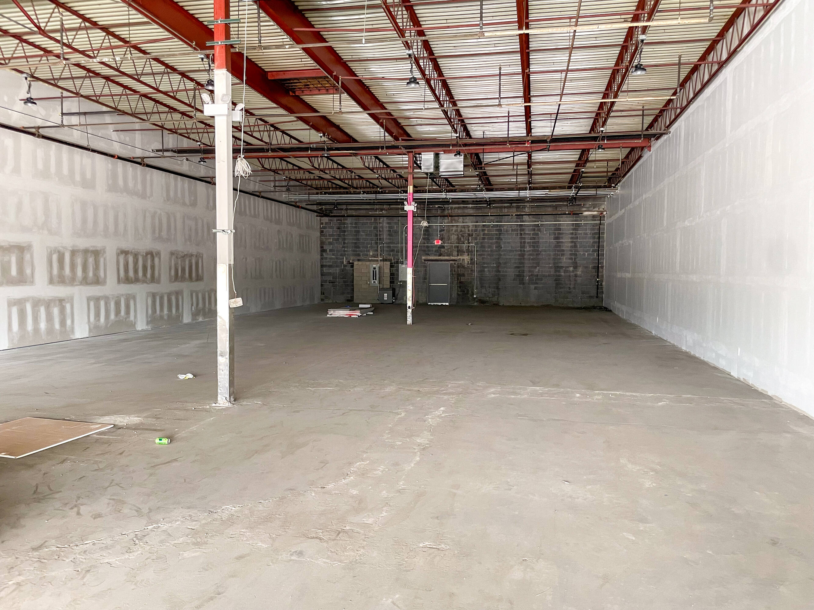 Large interior, high ceilings, ample parking, desirable location.