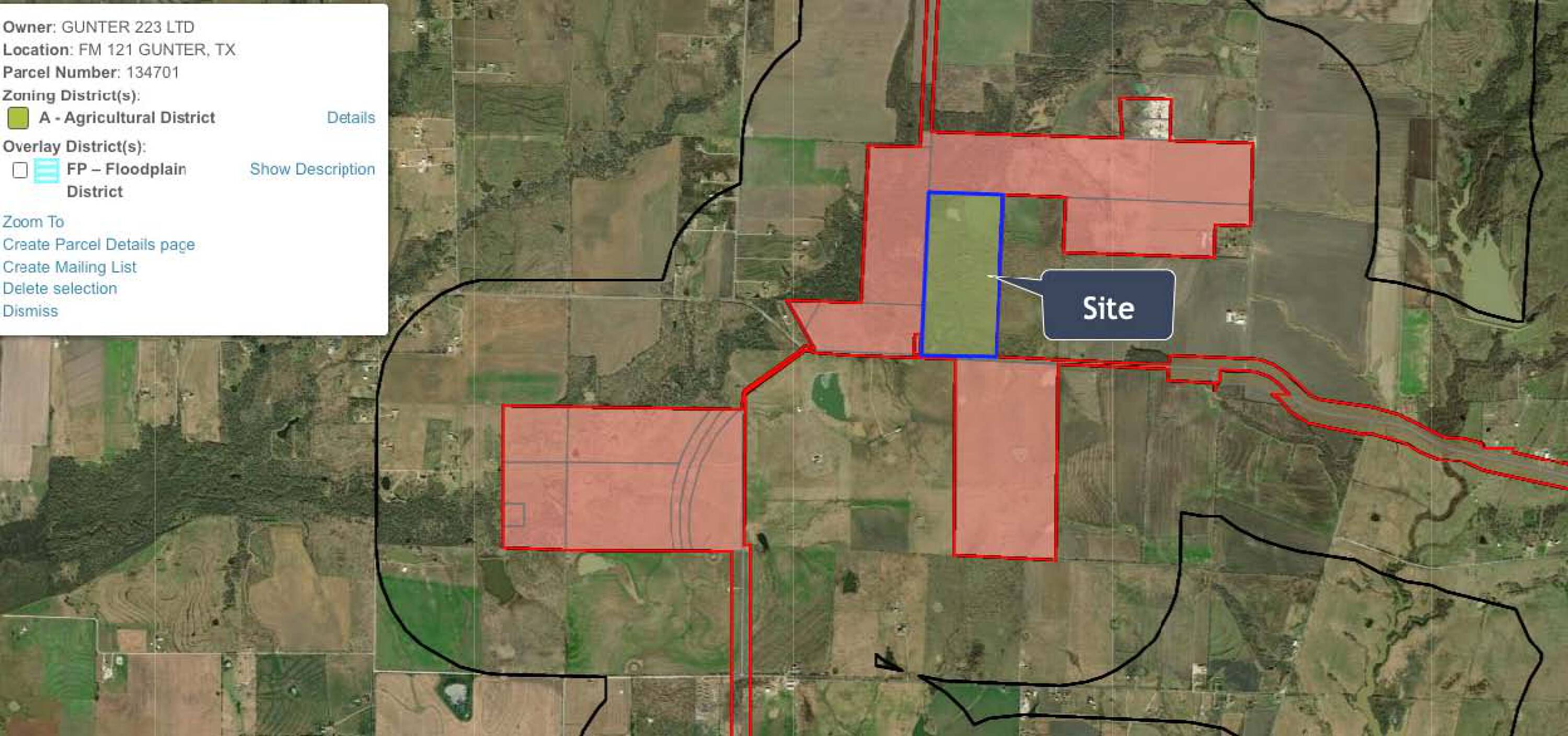 The property is located at F.M. 121 Gunter, TX.