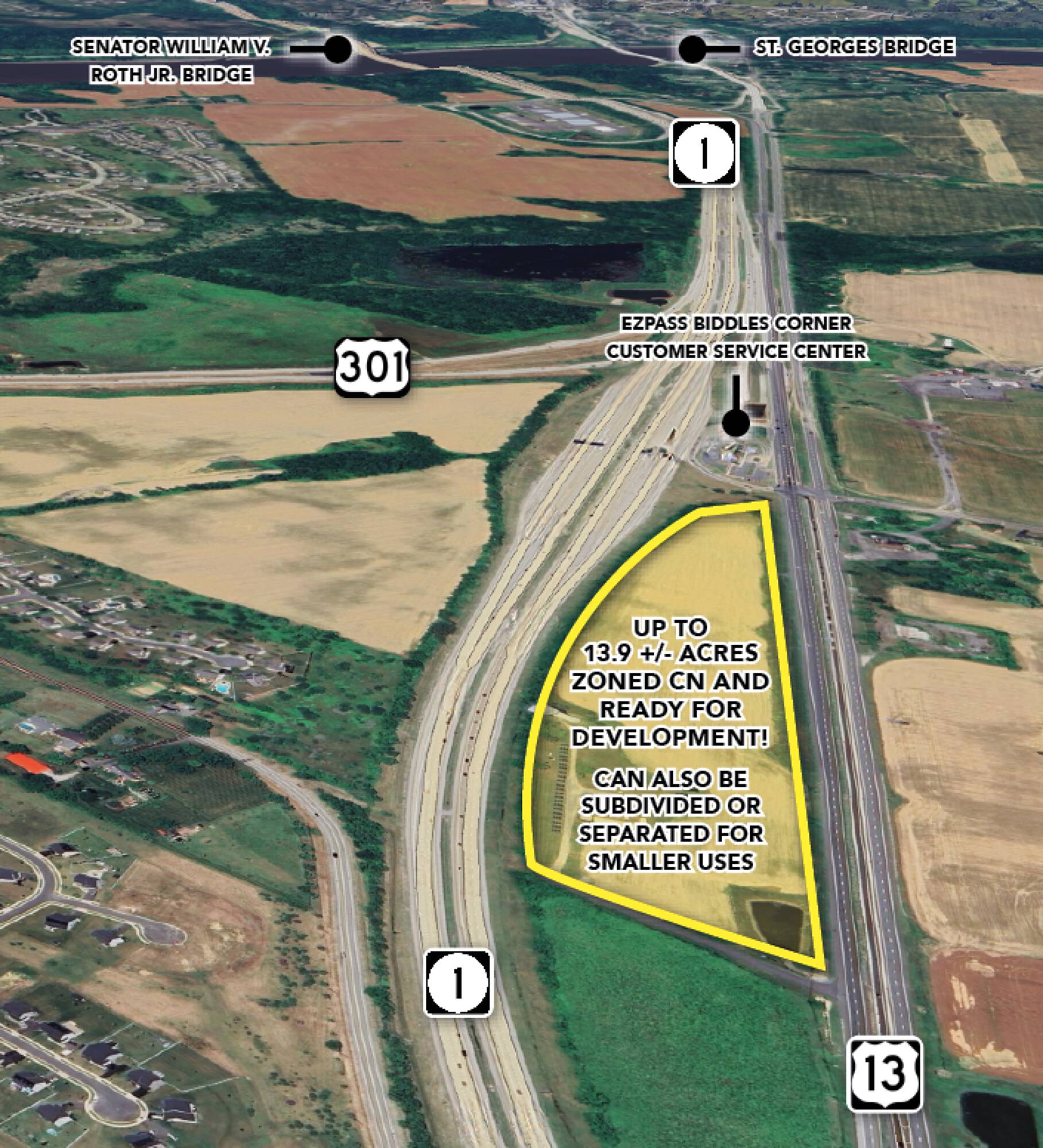 13.90 +/- acres for retail or commercial ventures.