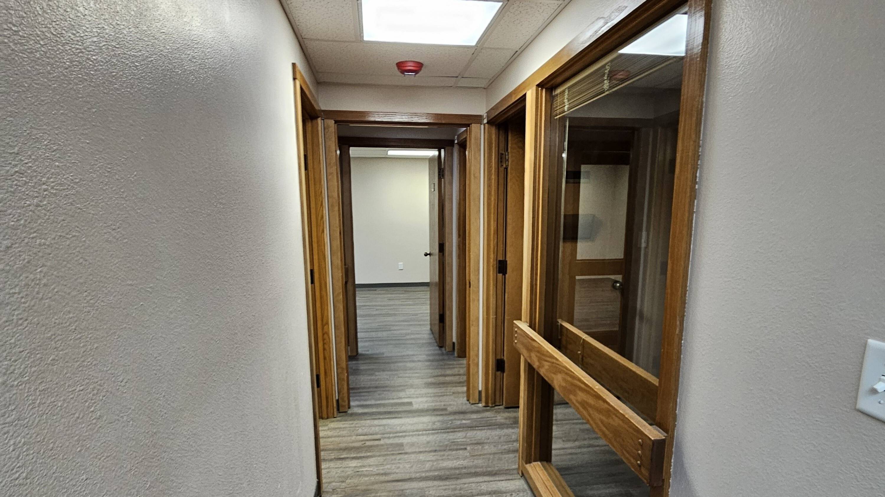 Located in Longview's business district, the lower level of this office complex offers leasing opportunities. Available spaces range from 127 to 325 square feet. Multiple spaces can be leased. The property features two entrance points, private offices of varying sizes, a shared restroom, and a breakroom. Parking and signage are available. Lease rates begin at $500 per month, with utilities and internet included.