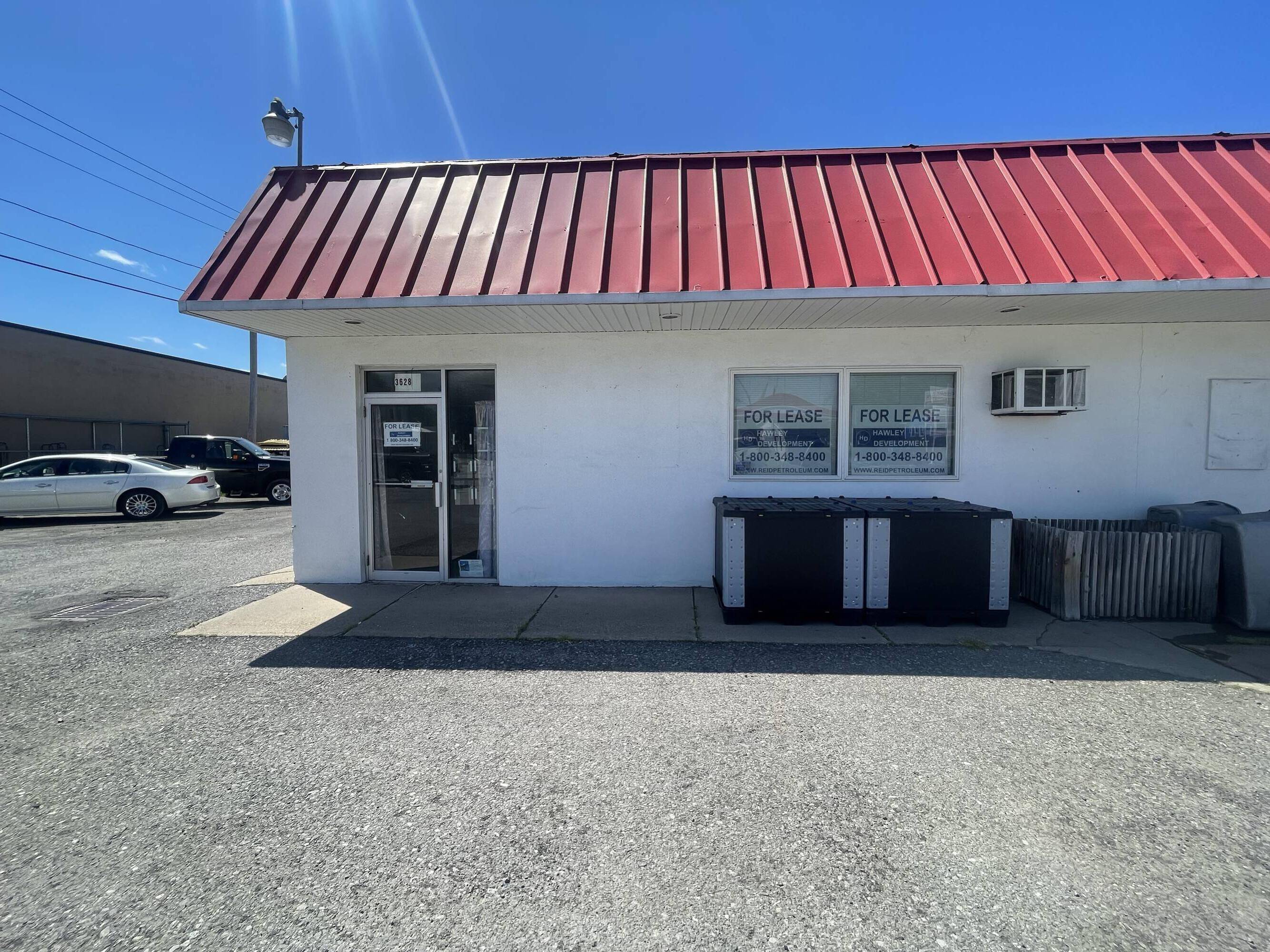 Office/retail space with parking and high traffic volume.