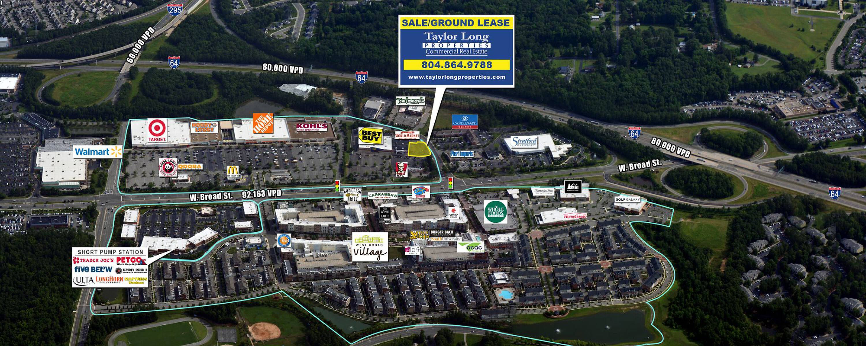 The property offers 2,000 to 9,000 square feet available for ground lease or build-to-suit opportunities. It is strategically positioned in a prime retail location, adjacent to World Market and Best Buy, and directly across from West Broad Village. The location benefits from proximity to a variety of established retailers, including Target, Home Depot, Kroger, Whole Foods, and Kohl's.
