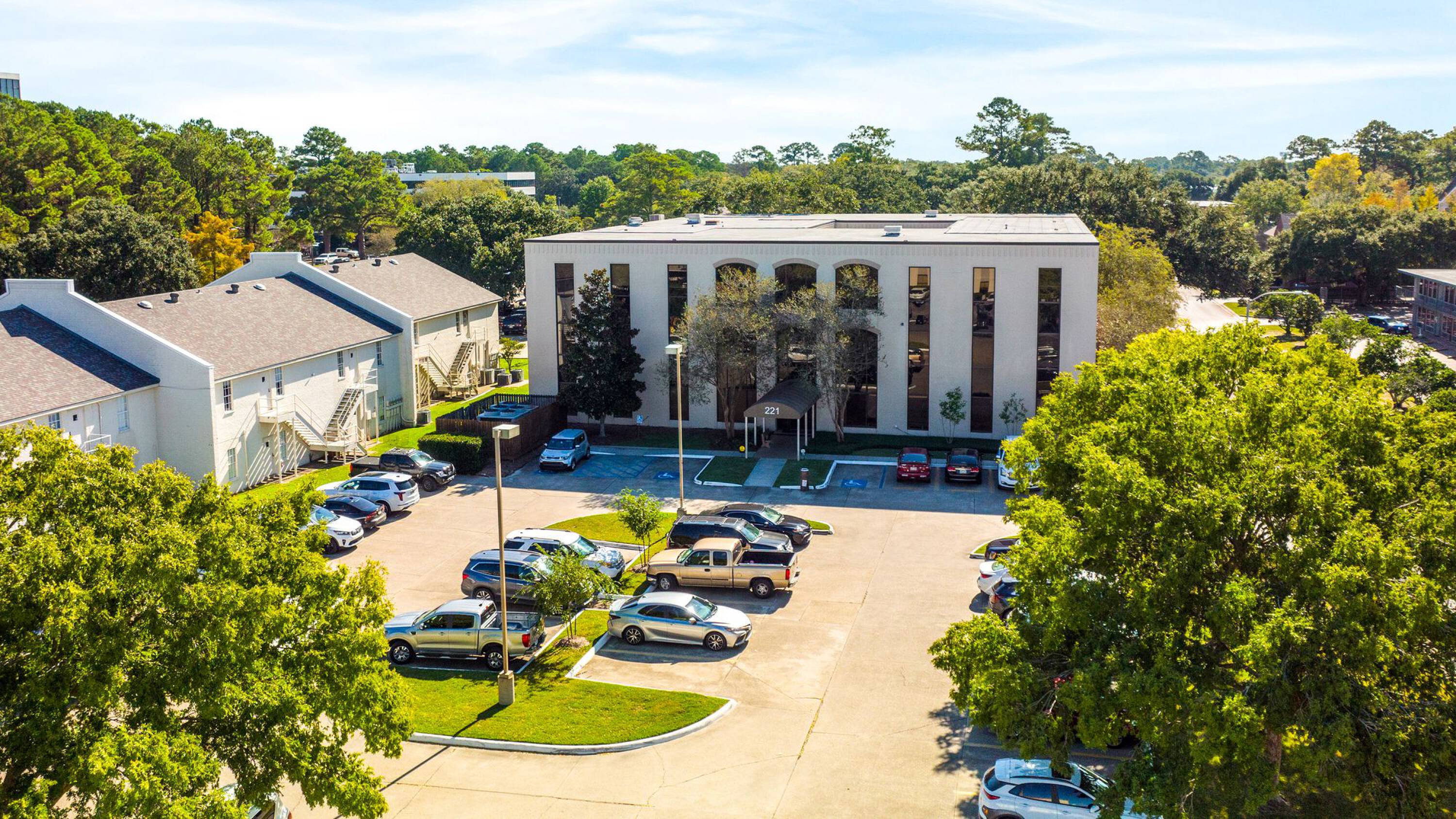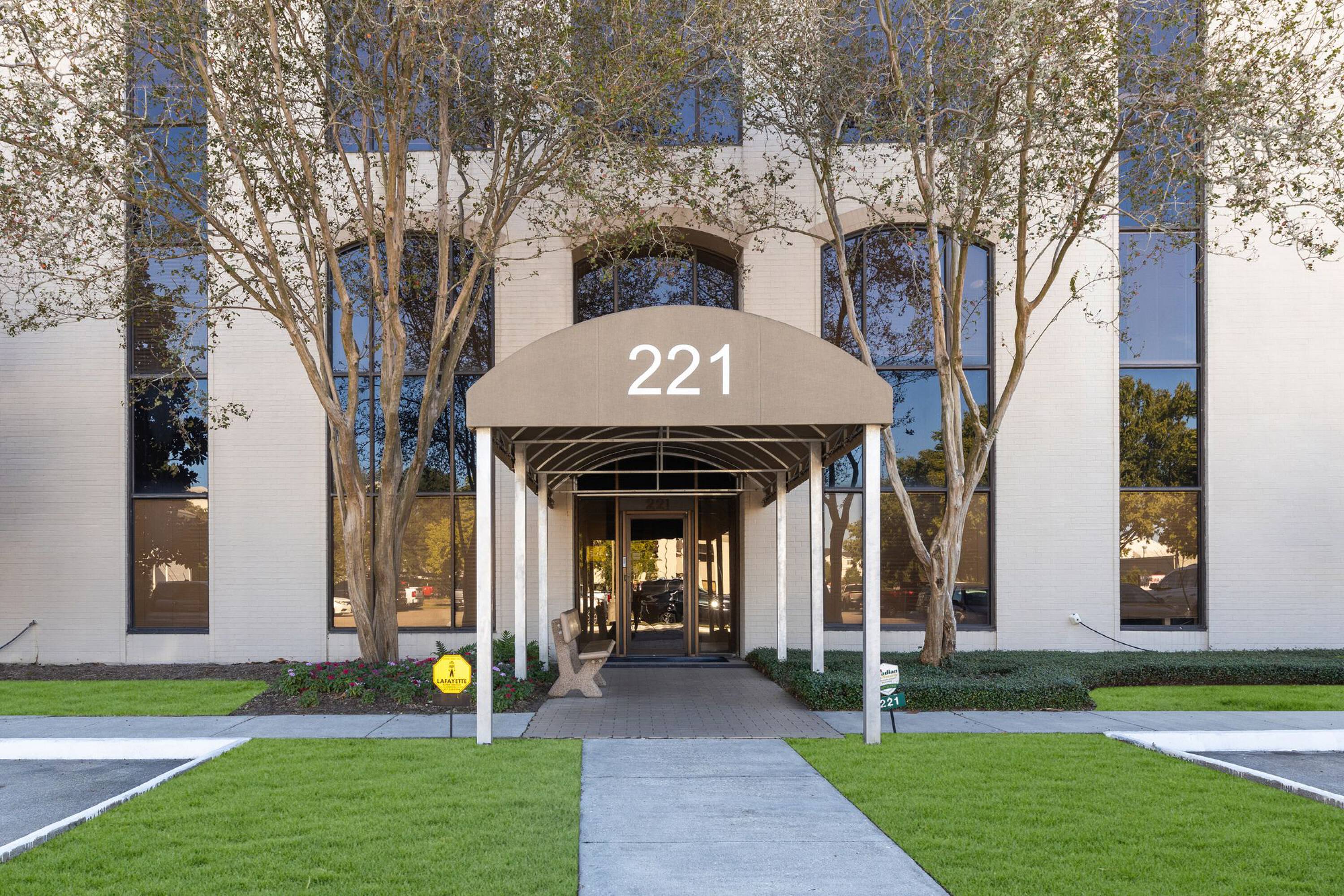 The property at 221 Rue De Jean is a full-service office building. It features ample parking on both sides of the building and an interior courtyard. The courtyard provides tenants with a relaxing break area and views from the interior office suites. Available suites vary in size and can be reworked to accommodate a variety of users. The building is located right off Kaliste Saloom Road, providing easy access to Highway 90 and River Ranch via Kaliste Saloom Road, and downtown via Pinhook Road just 0.3 miles south.