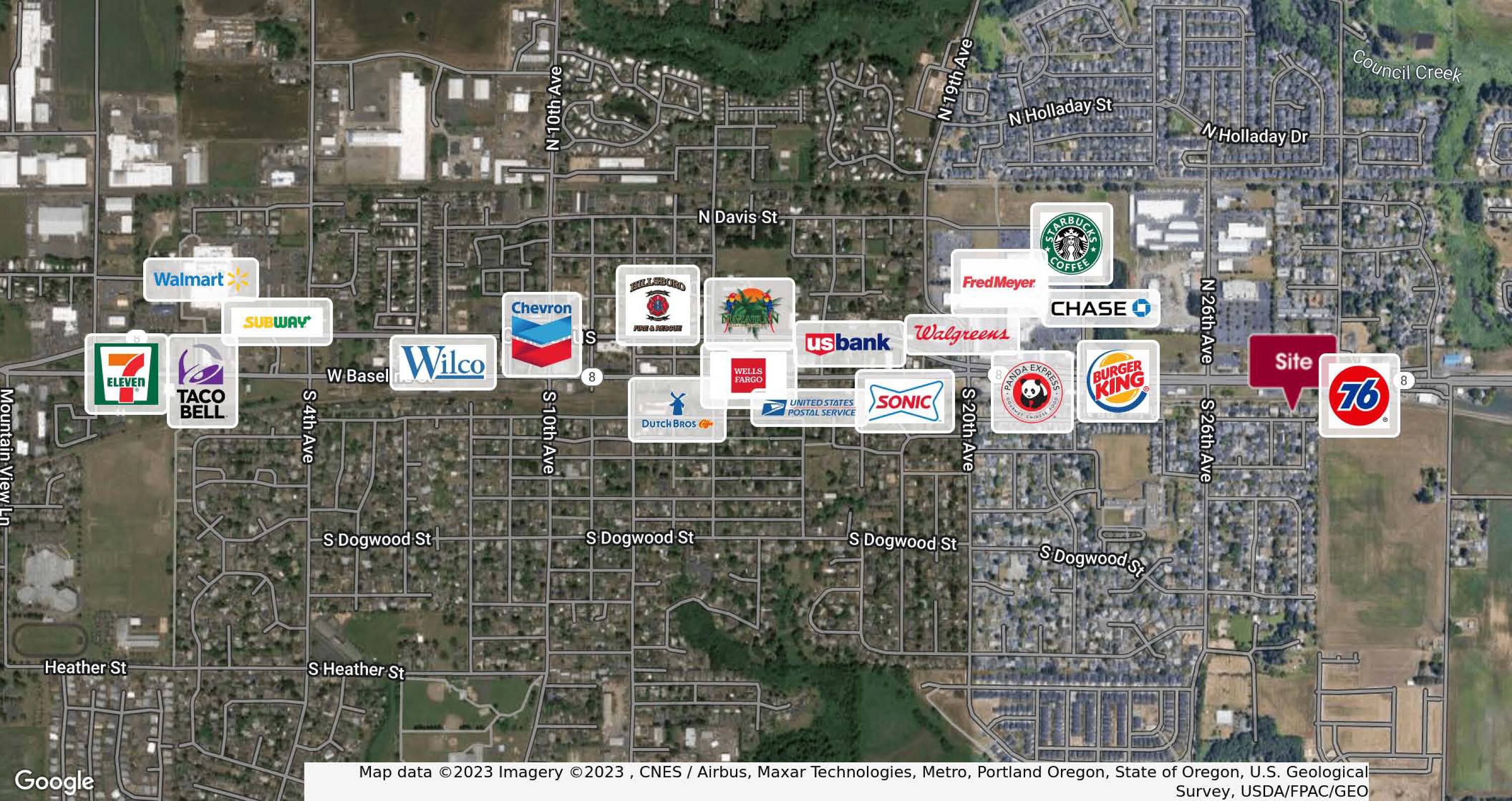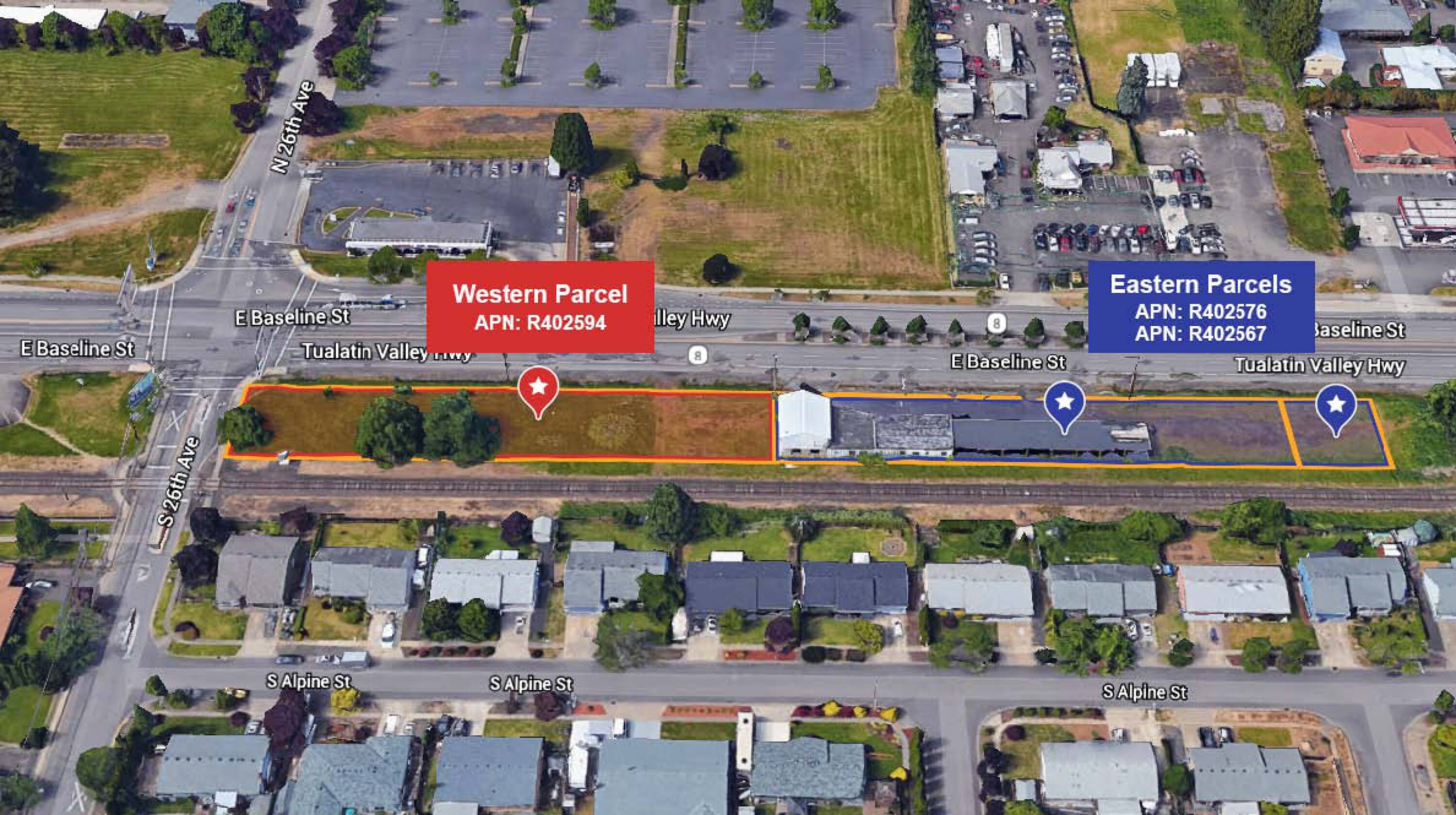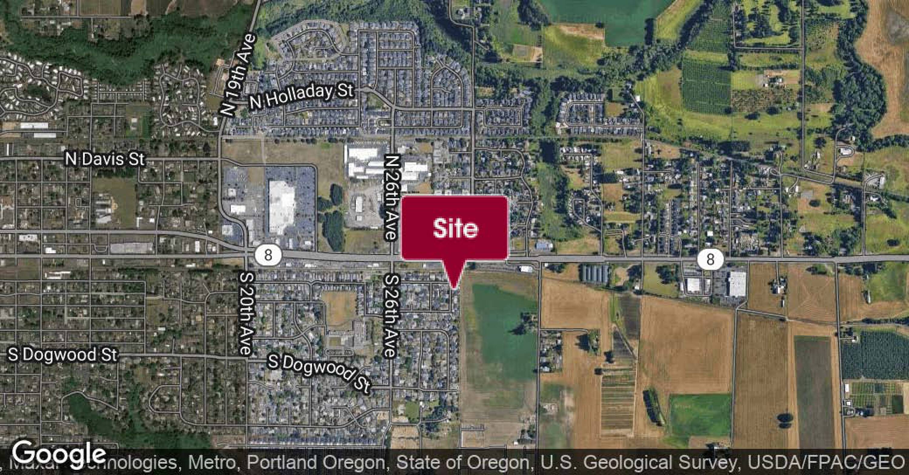 High-exposure retail land with redevelopment potential in Cornelius, Oregon.