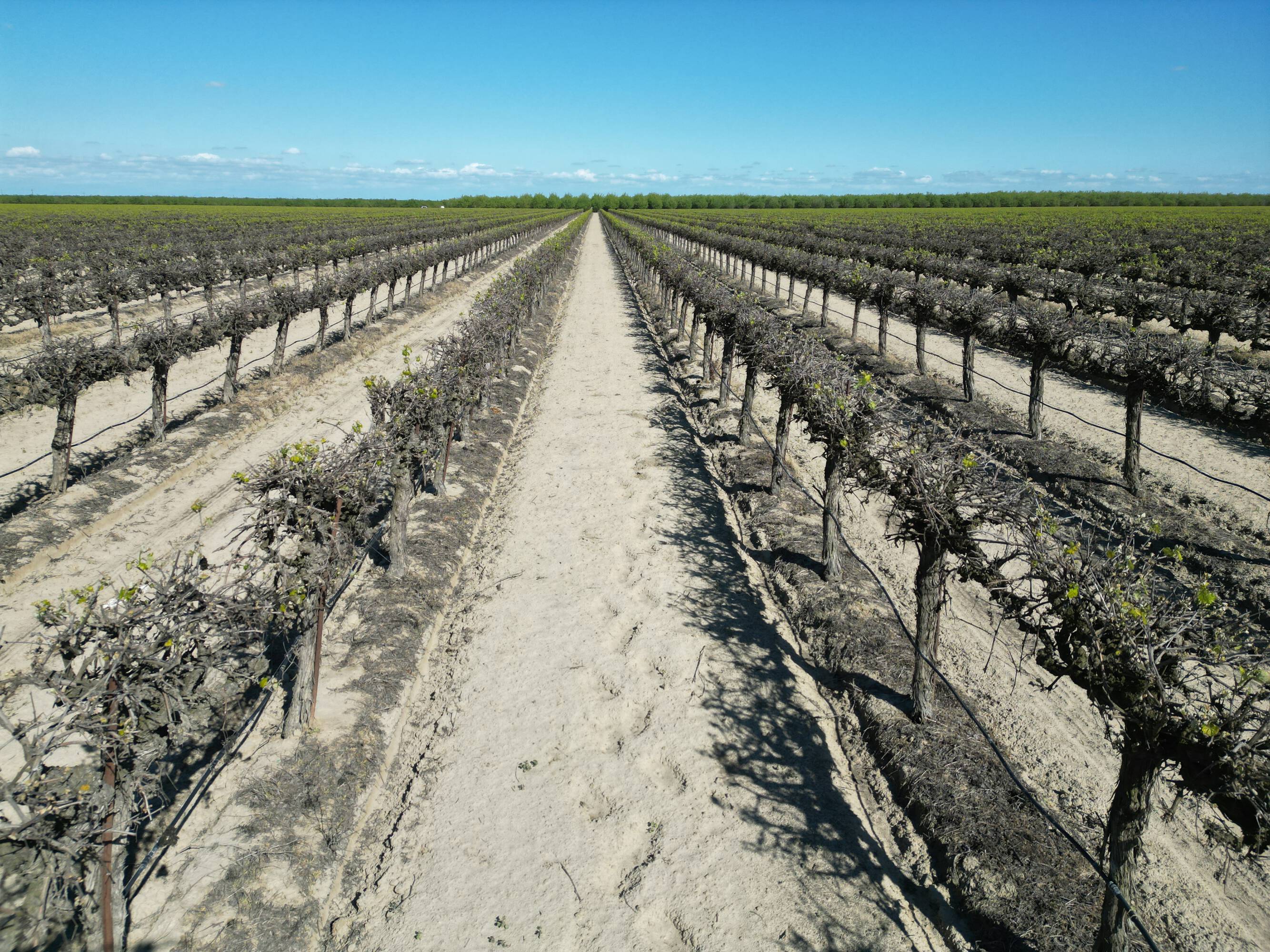 Producing almond and vineyard ranch near Fresno.