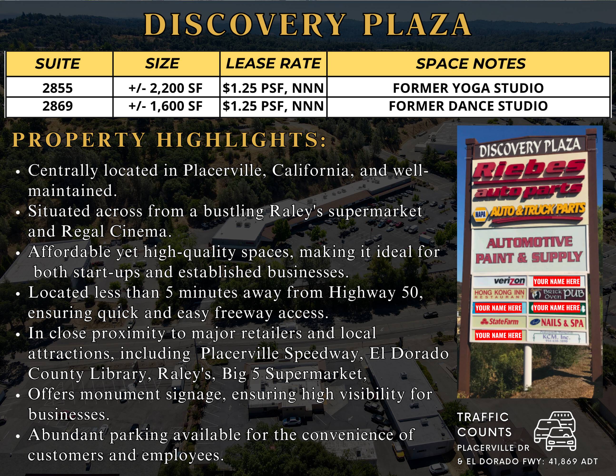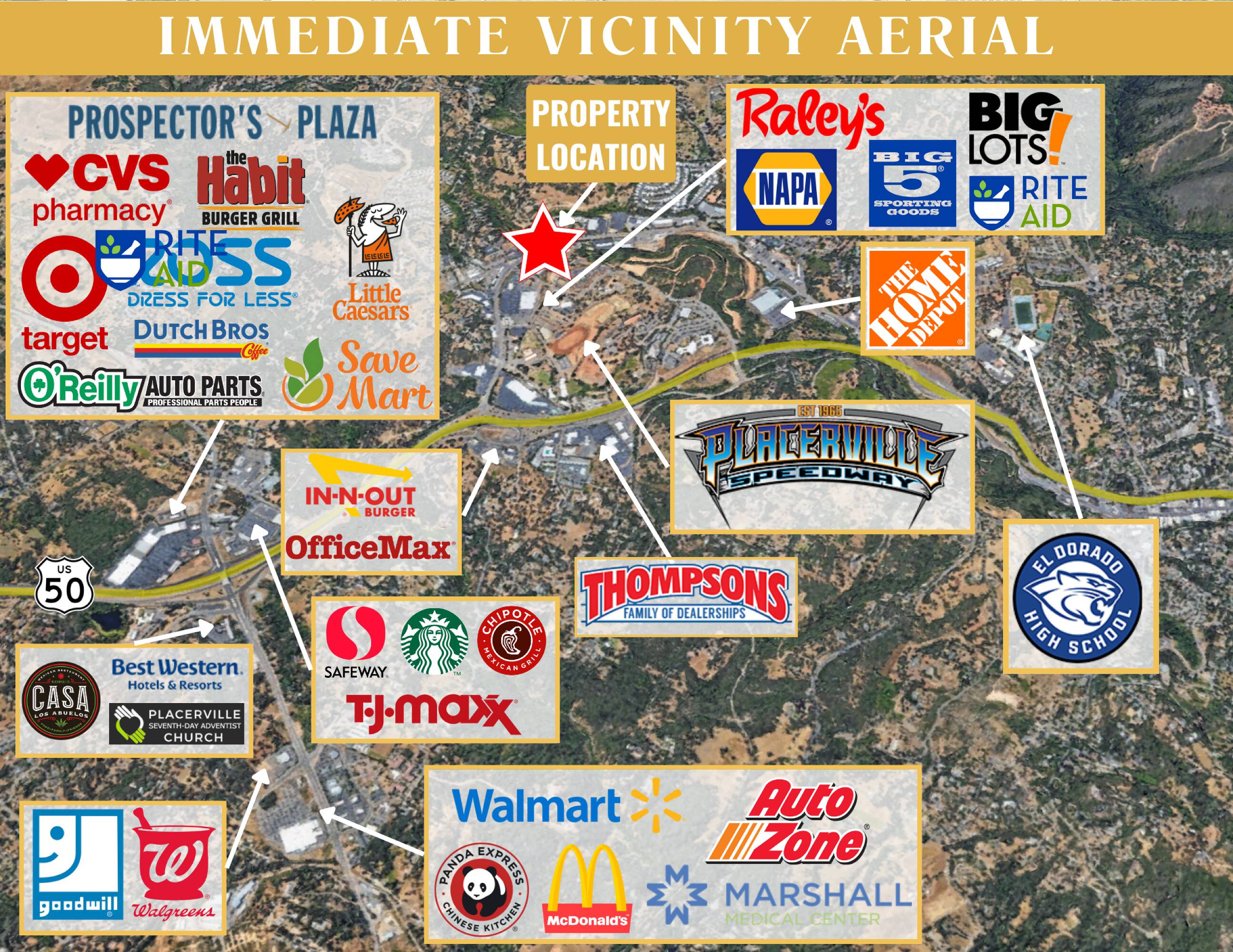 High-traffic retail space near Highway 50 and major retailers.