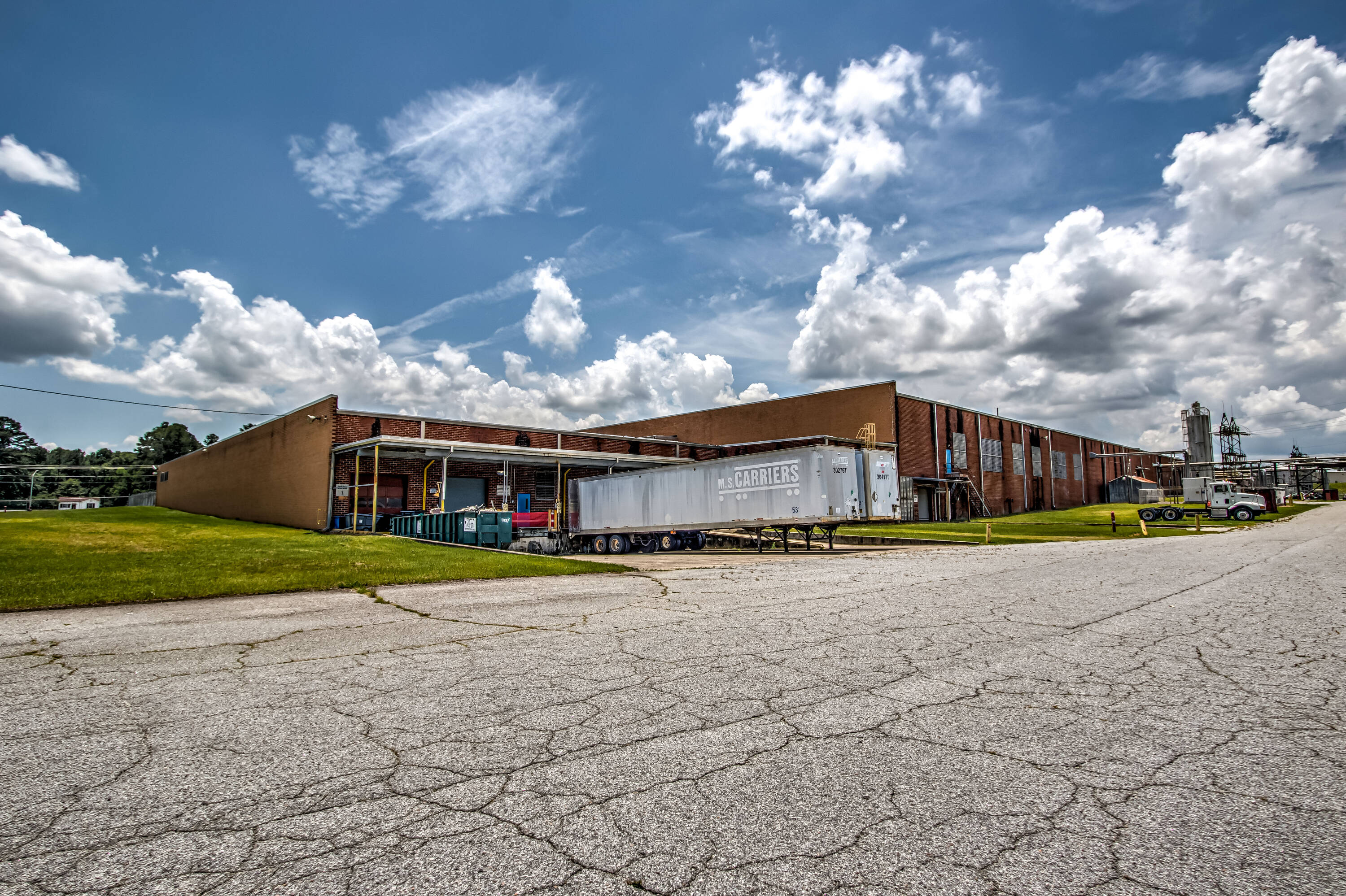 Located at 418 Ascauga Lake Rd in Graniteville, SC, this property offers two industrial spaces for lease. Space A, situated on the western end of the building, provides approximately 85,017 square feet, including 3,000 square feet of office space. Space B, on the eastern side, features approximately 80,379 square feet of industrial space. The property is located 2.4 miles south of I-20 at Exit 11. The location provides access to major transportation routes, with Augusta 17 miles away, Columbia 61 miles away, Charleston (Port) 152 miles away, Savannah (Port) 130 miles away, Atlanta 156 miles away, Greenville 113 miles away, and Charlotte 150 miles away. The property is zoned for heavy industrial use. High-capacity power is available, with 575 volts/high-wattage provided via an onsite substation. Water, sewer, and internet services are also available. The property includes a security system, 350 vehicle parking spaces, and advanced fire protection with wet sprinklers. The facility is lit with a combination of T8 lighting and some LED fixtures. The surrounding area is experiencing significant growth, and a strong workforce is available in the area.