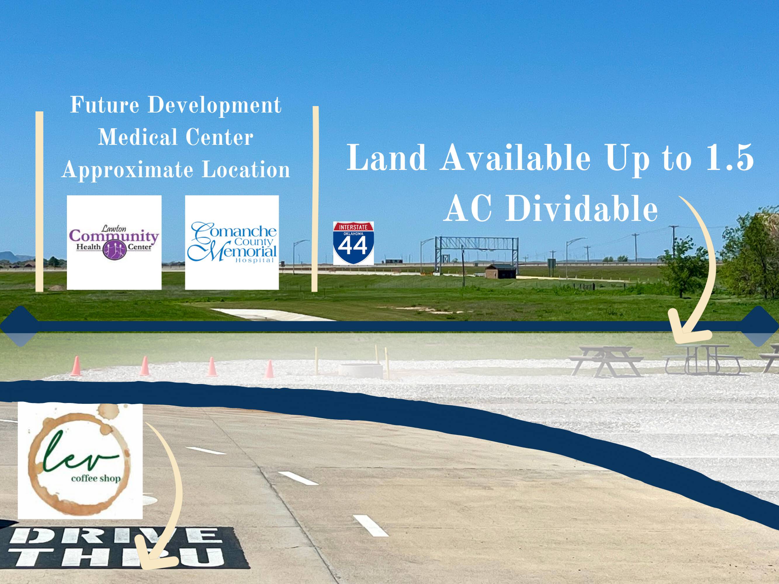 1.5 acres of land suitable for retail, restaurant, or office.