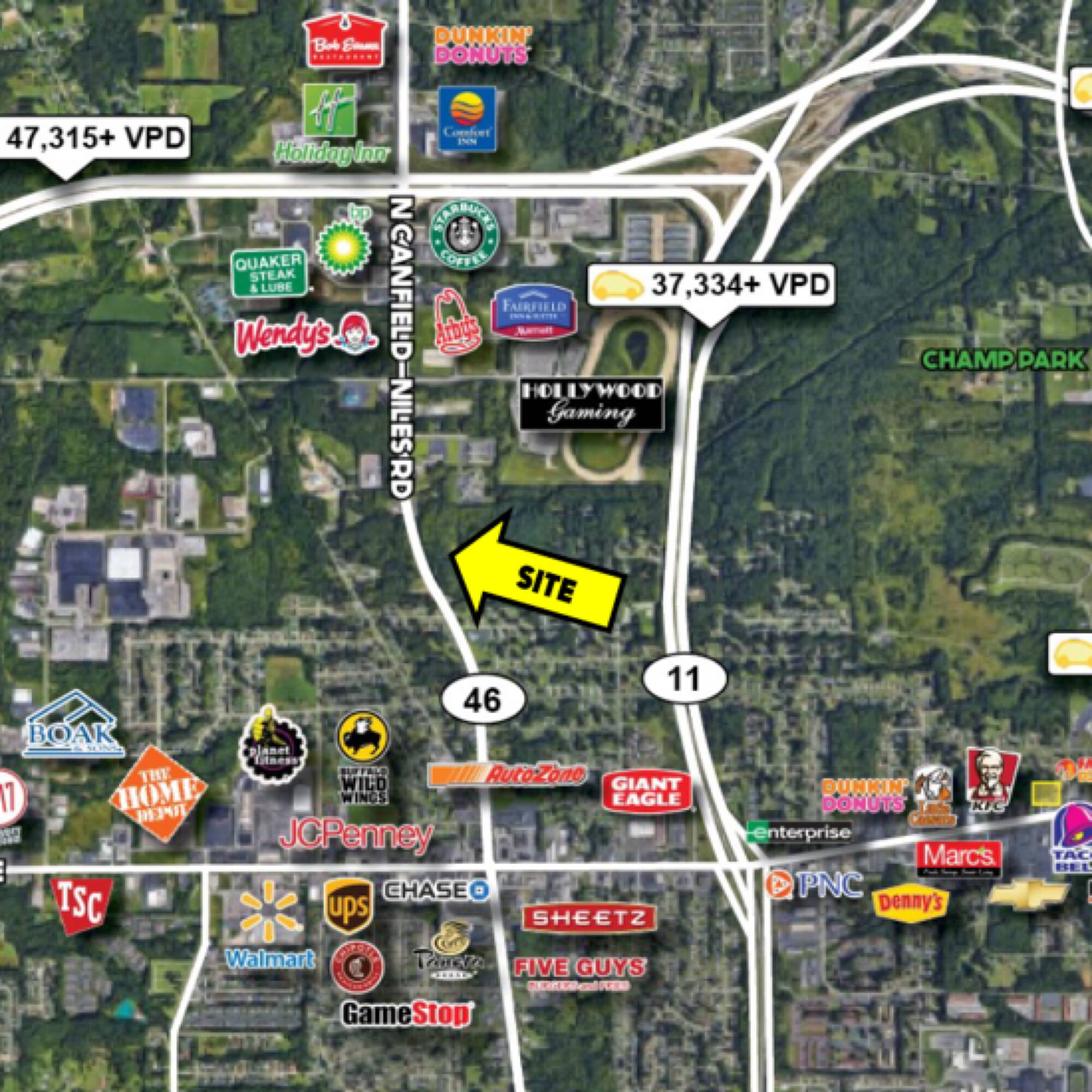 This land is available for lease and is located on N Canfield Niles Rd in Youngstown, Ohio.