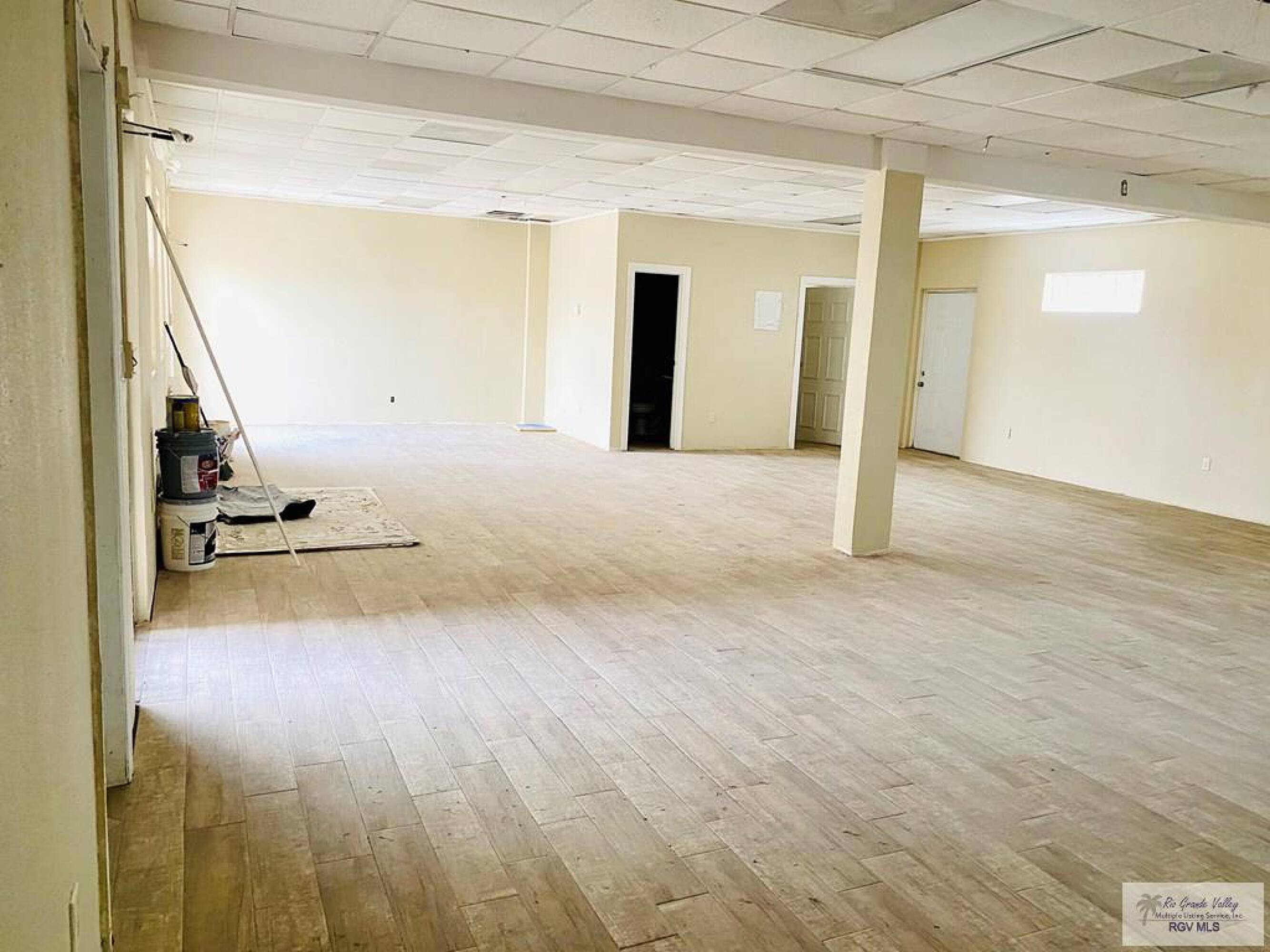 This income investment plaza, previously used as a day care center, features three large areas and six bathrooms, including one full bathroom with a shower room. The flooring consists of wood-look tile throughout. The property includes 18 parking spaces. The plaza is suitable for multiple uses, including offices and retail stores.