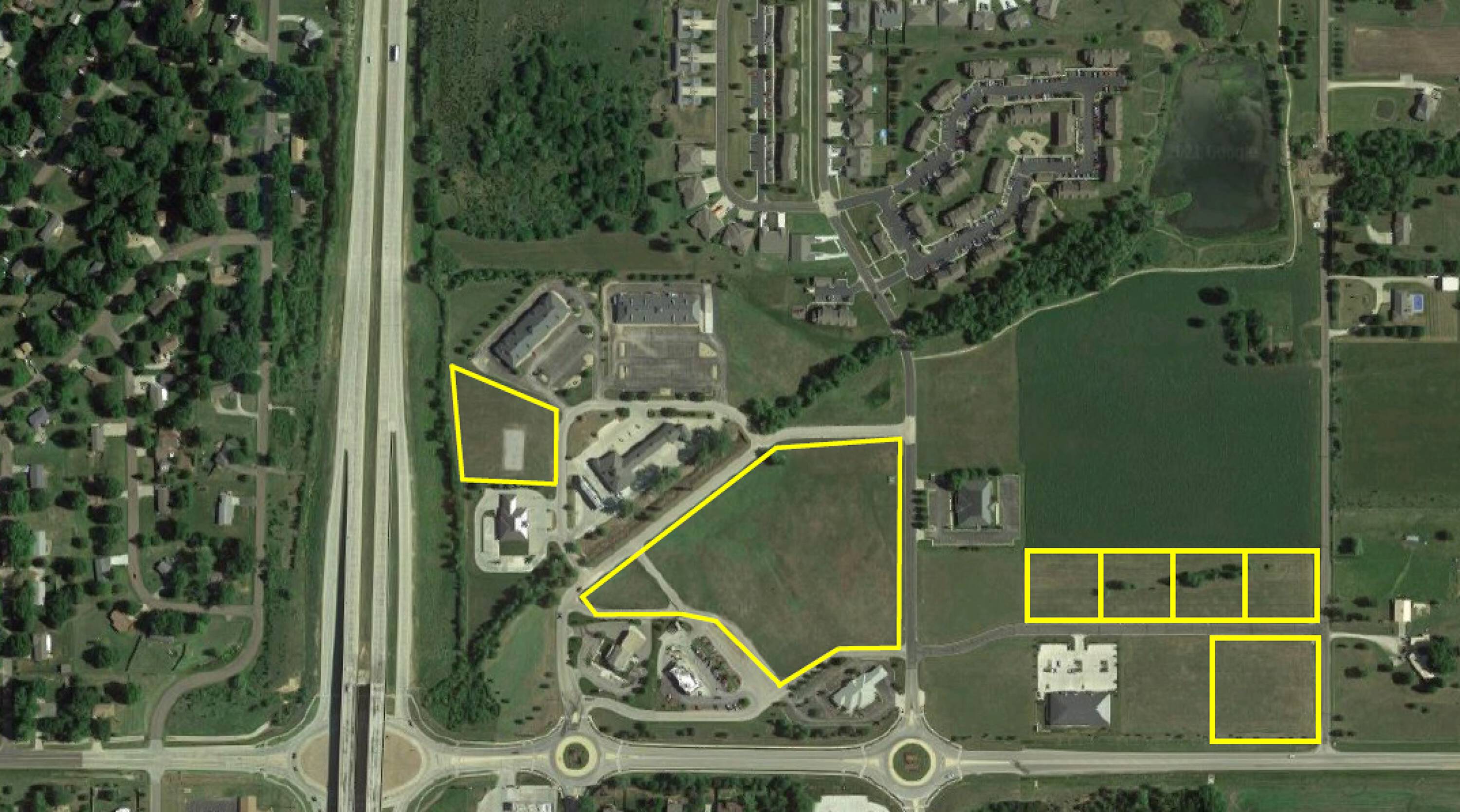 Commercial land with highway access and multiple entry points.