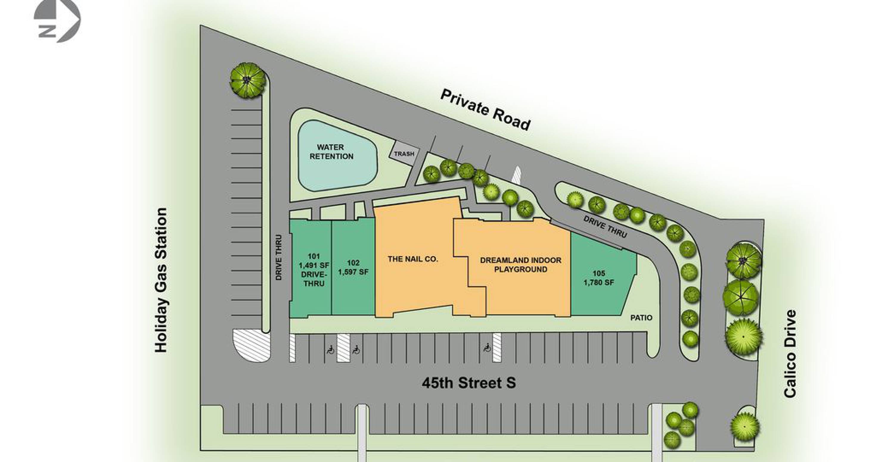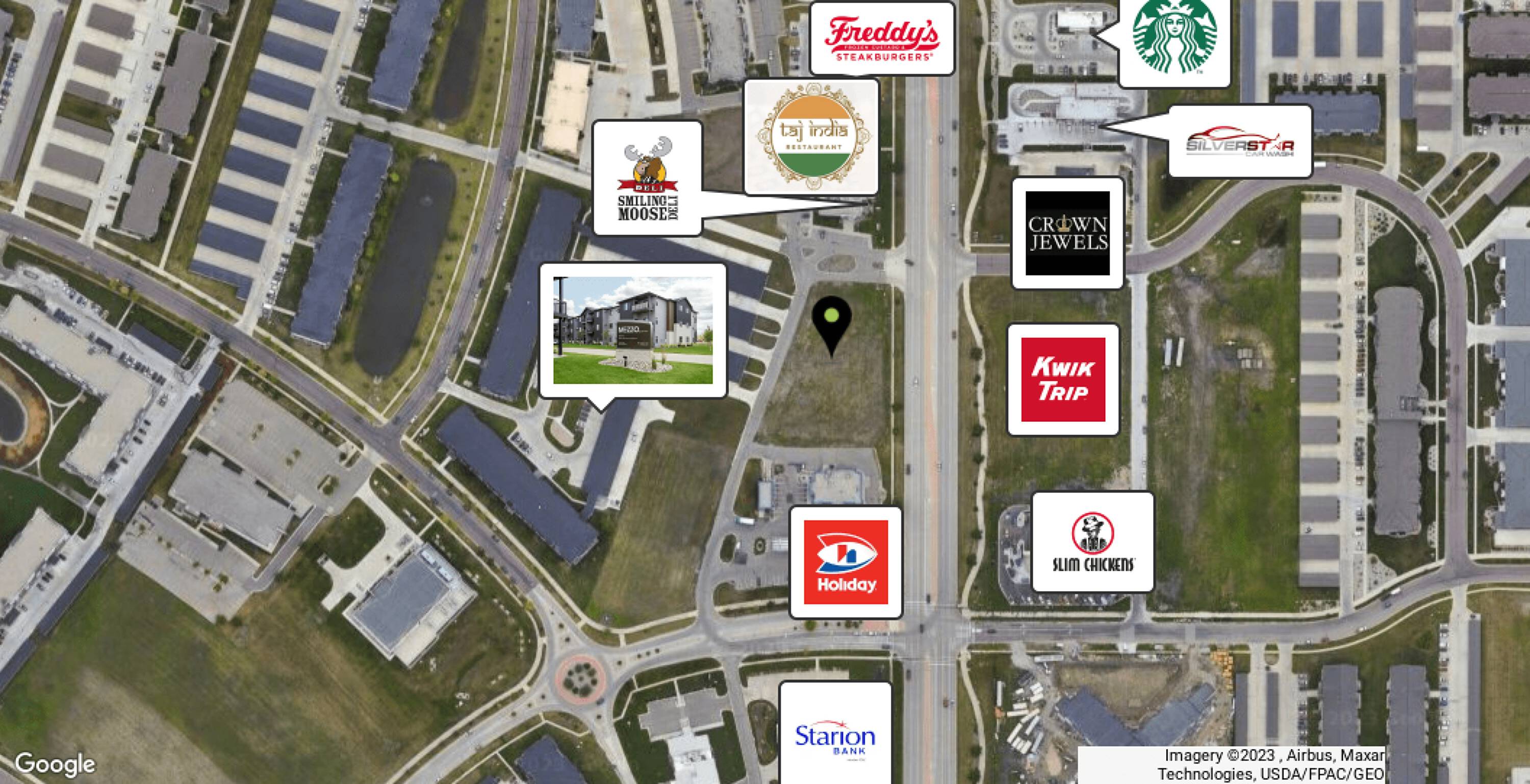This property features: Prime location in a top retail destination.; Adjacency to Mezzo Apartments, a 122‑unit residential community, providing a built‑in customer base.; Co‑tenancy with The Nail Bar, Dreamland Indoor Playground, and Happy Joes Pizza.