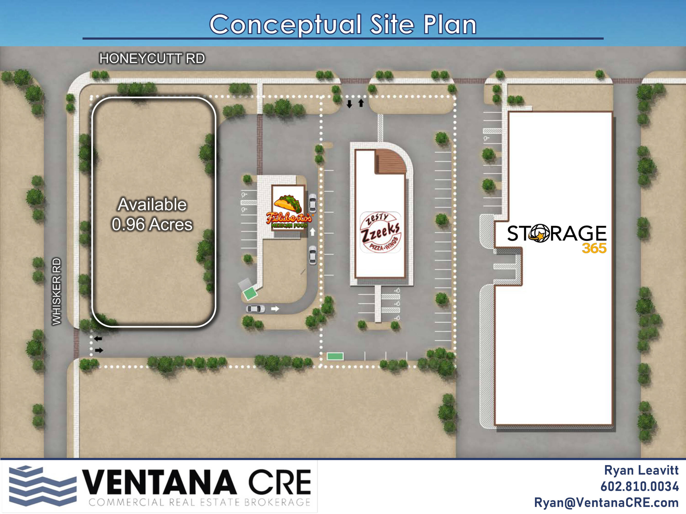 0.98-acre commercial land for ground lease or build-to-suit.