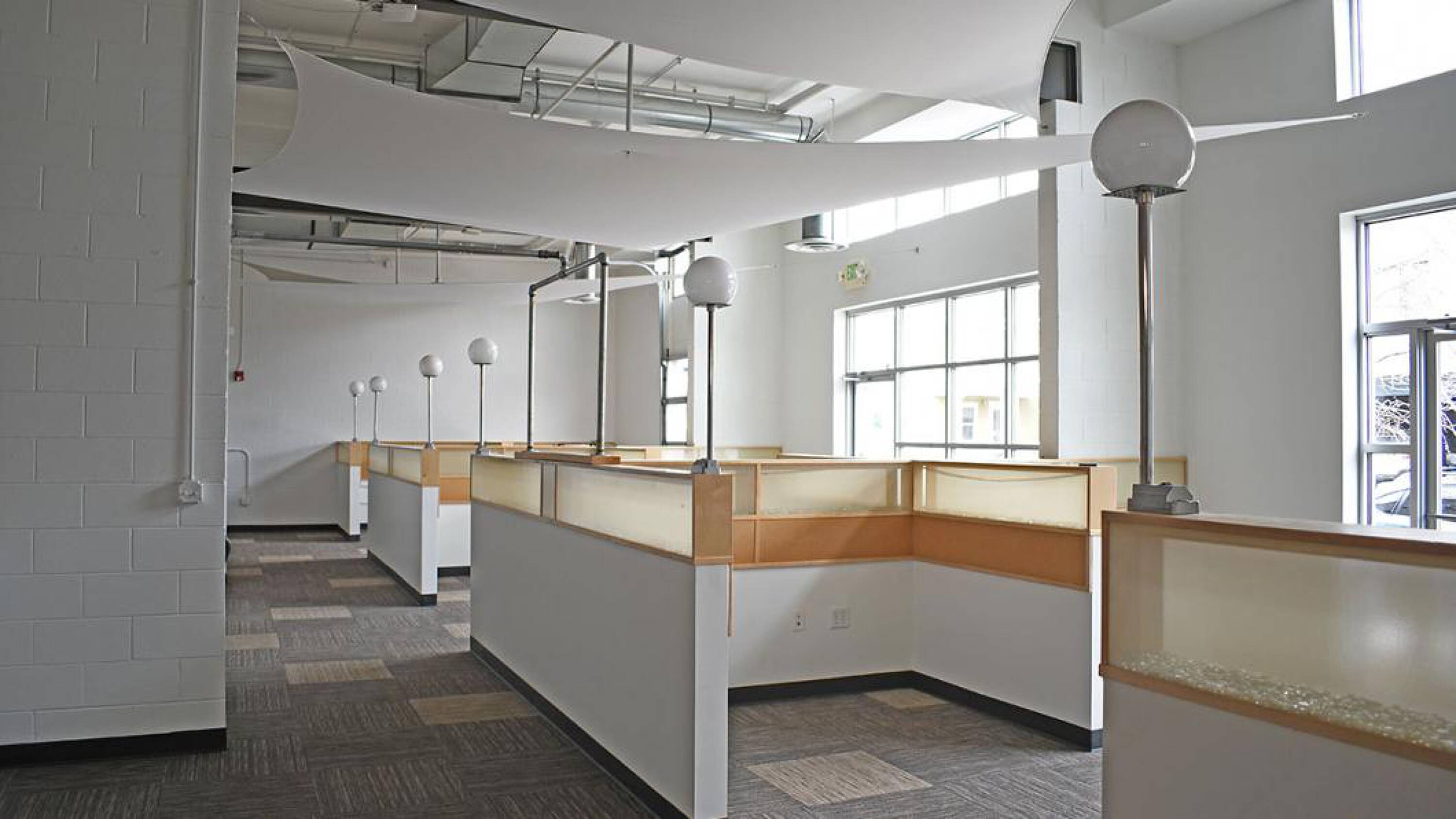 Creative office space with open layout, natural light, and amenities.