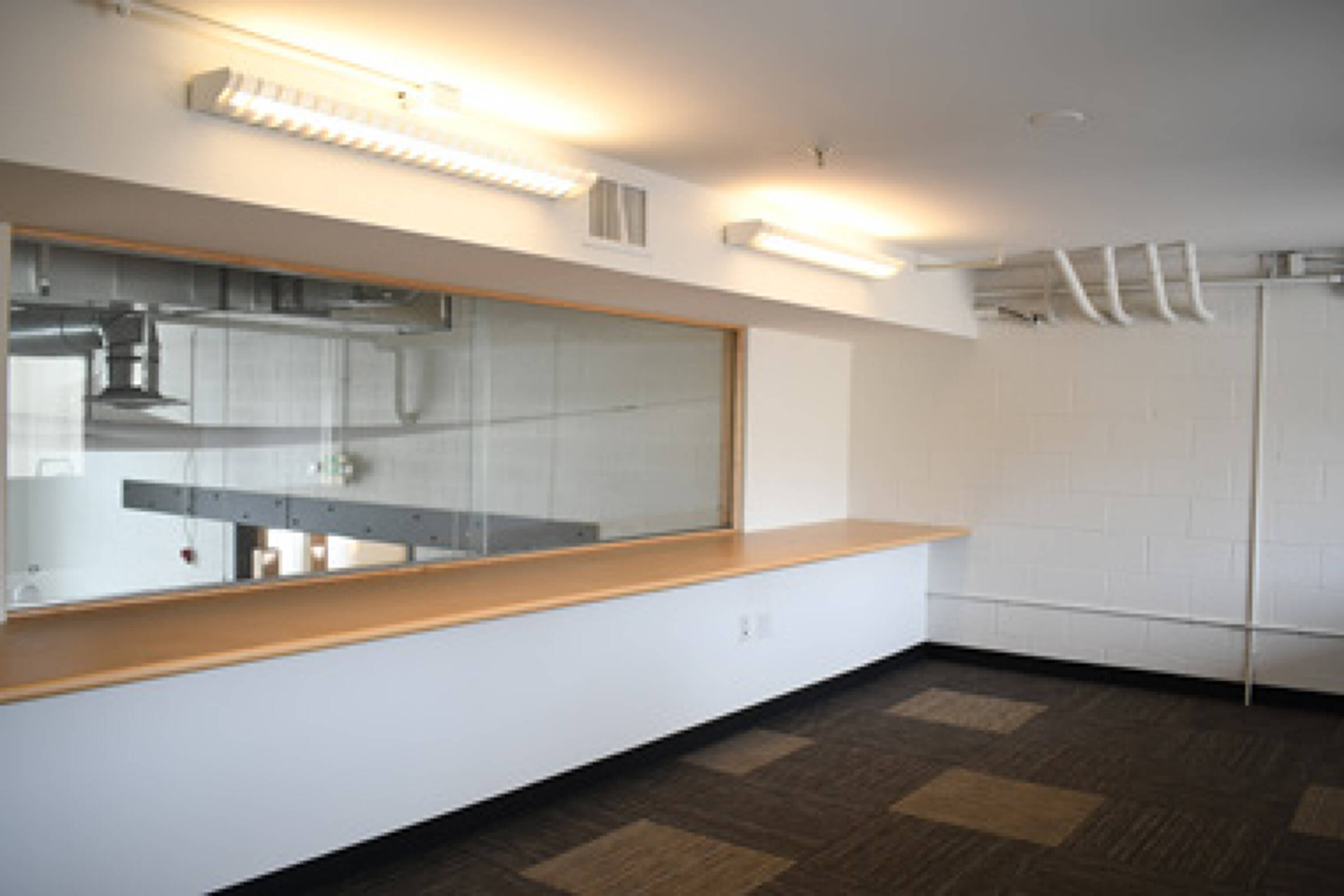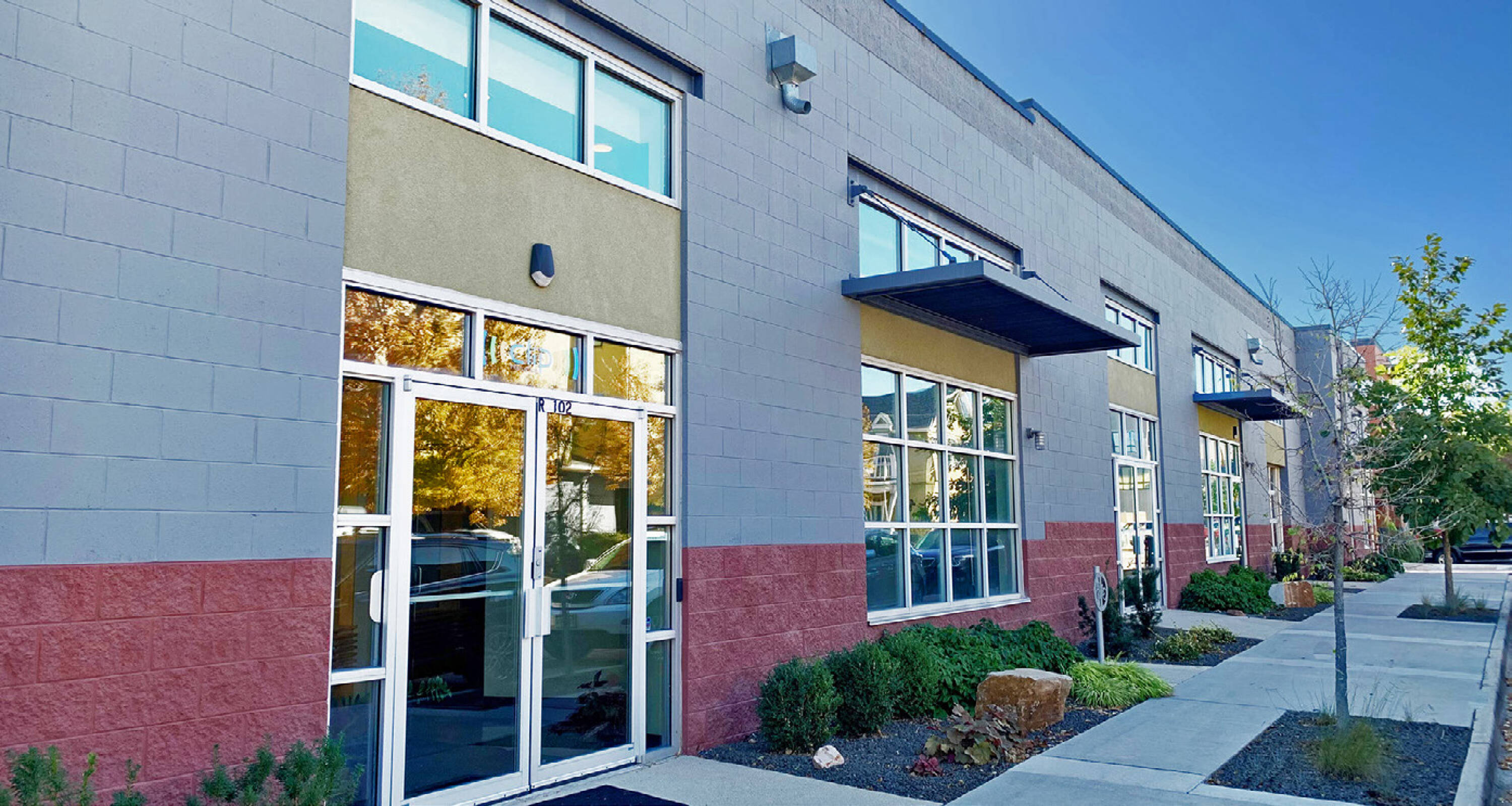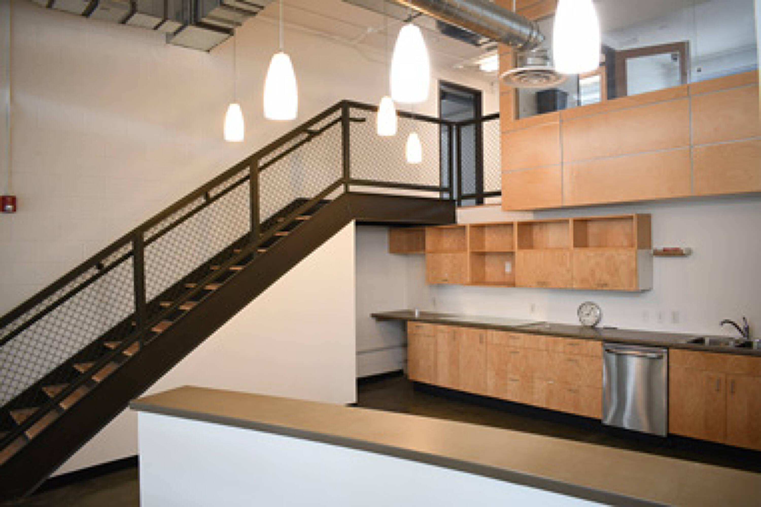 This property features: Spacious creative office space with open work areas and private offices.; Abundant natural light from large pane windows.; Unique indoor‑outdoor atmosphere created by an overhead garage door.