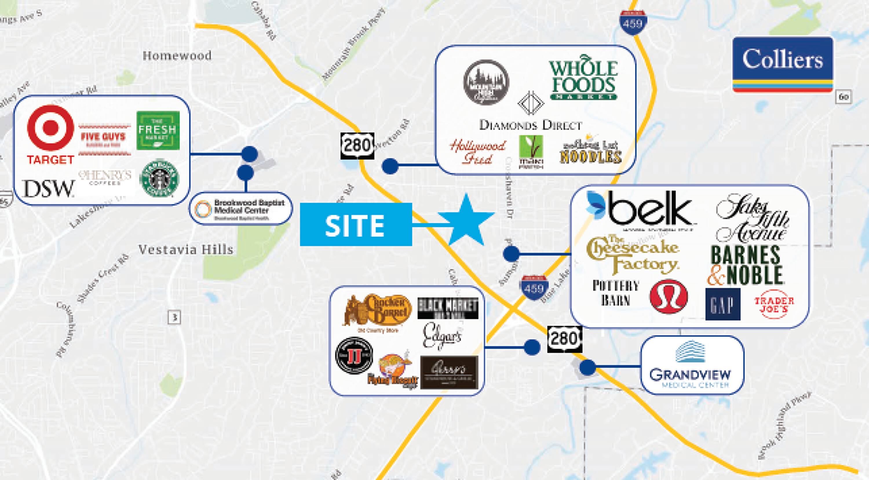All listing content including descriptions, pricing, images are the copyrighted material of Colliers - Birmingham, Alabama