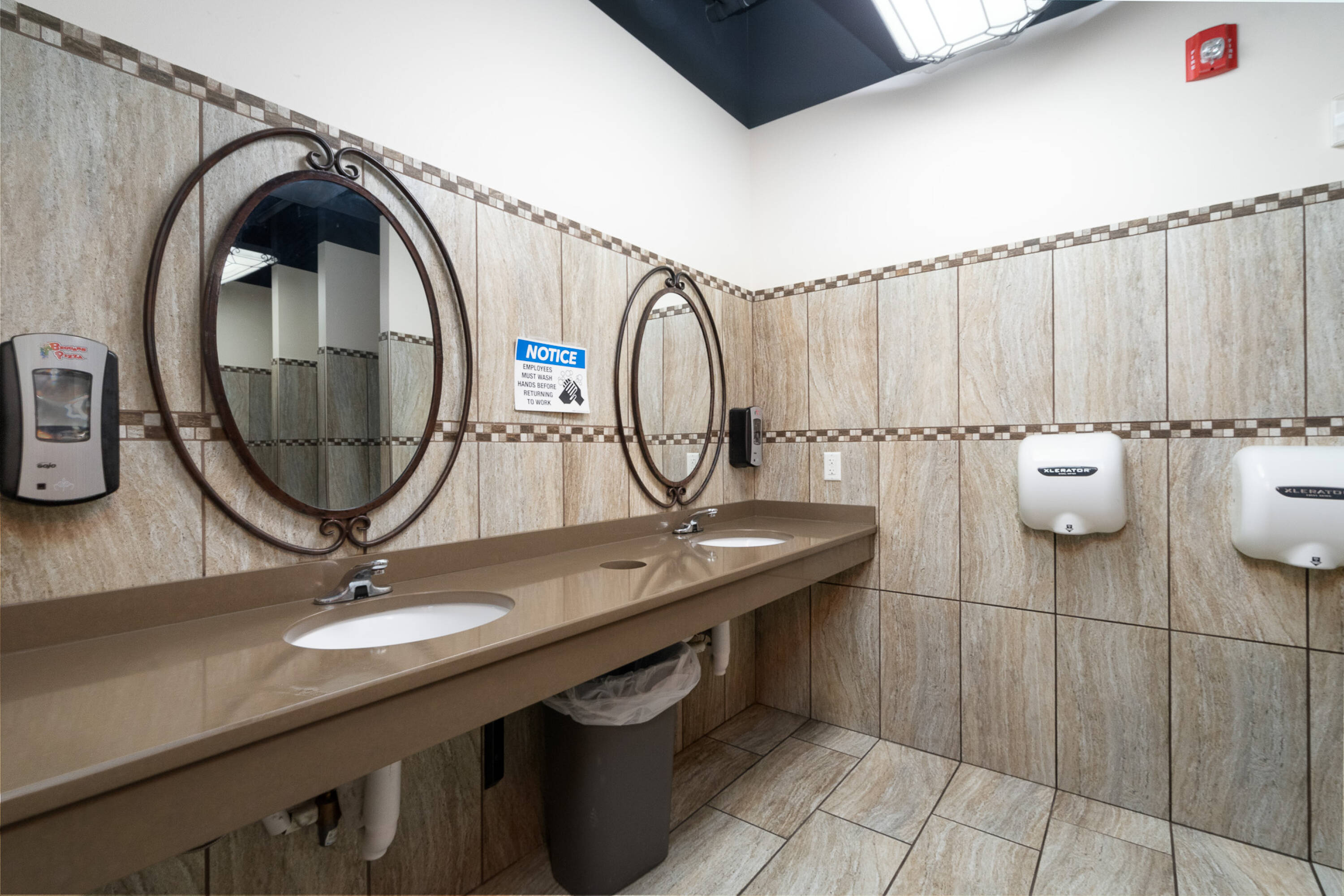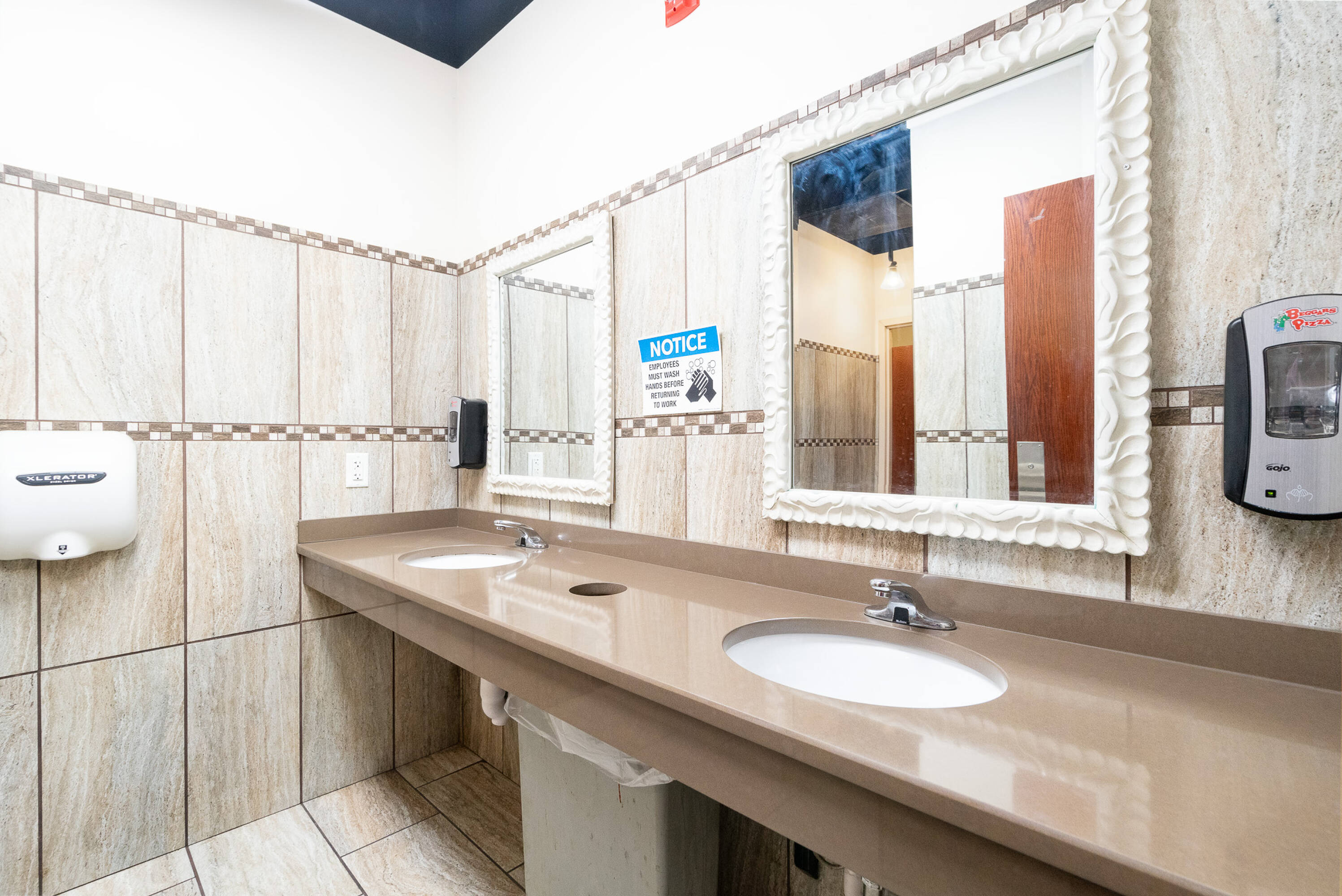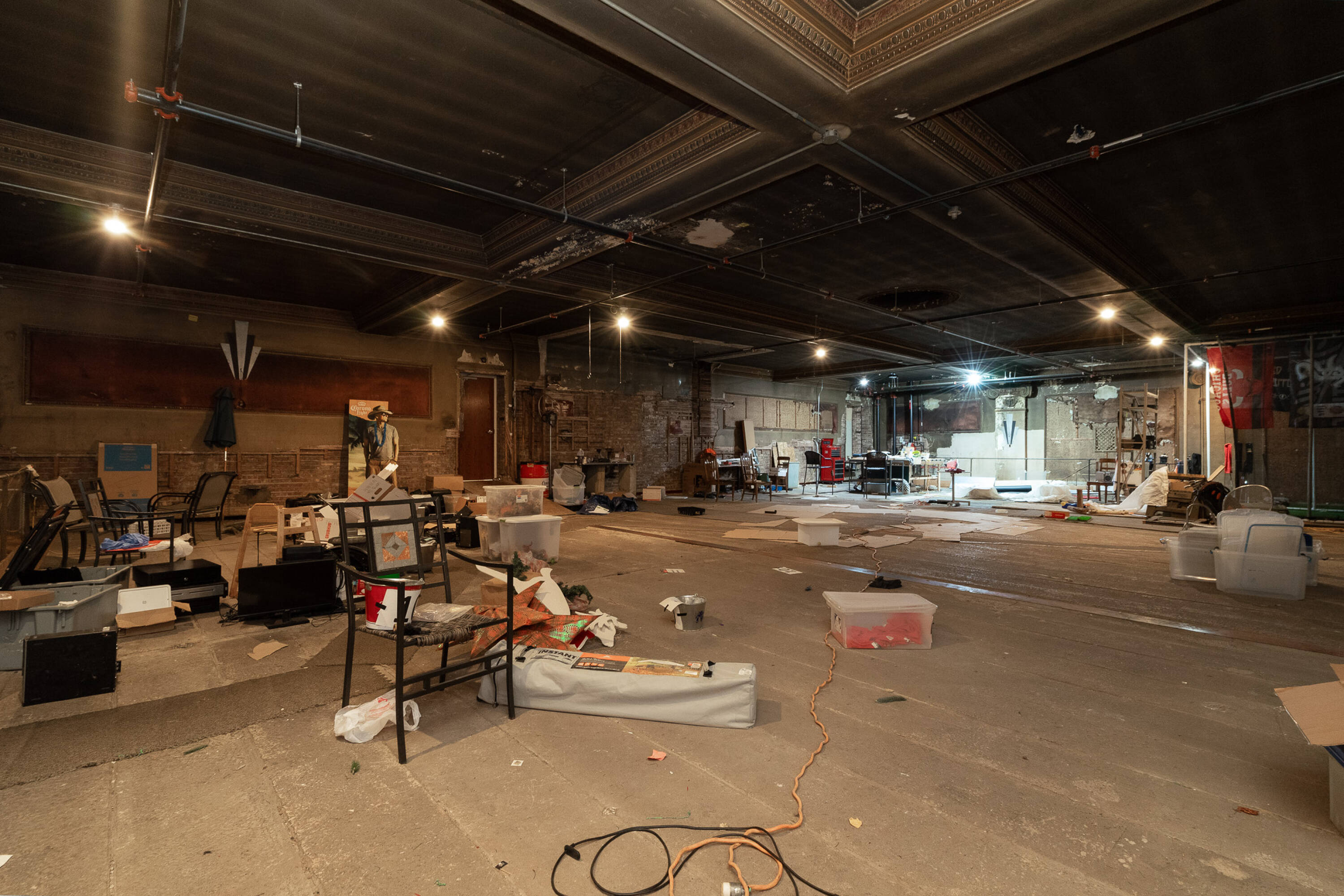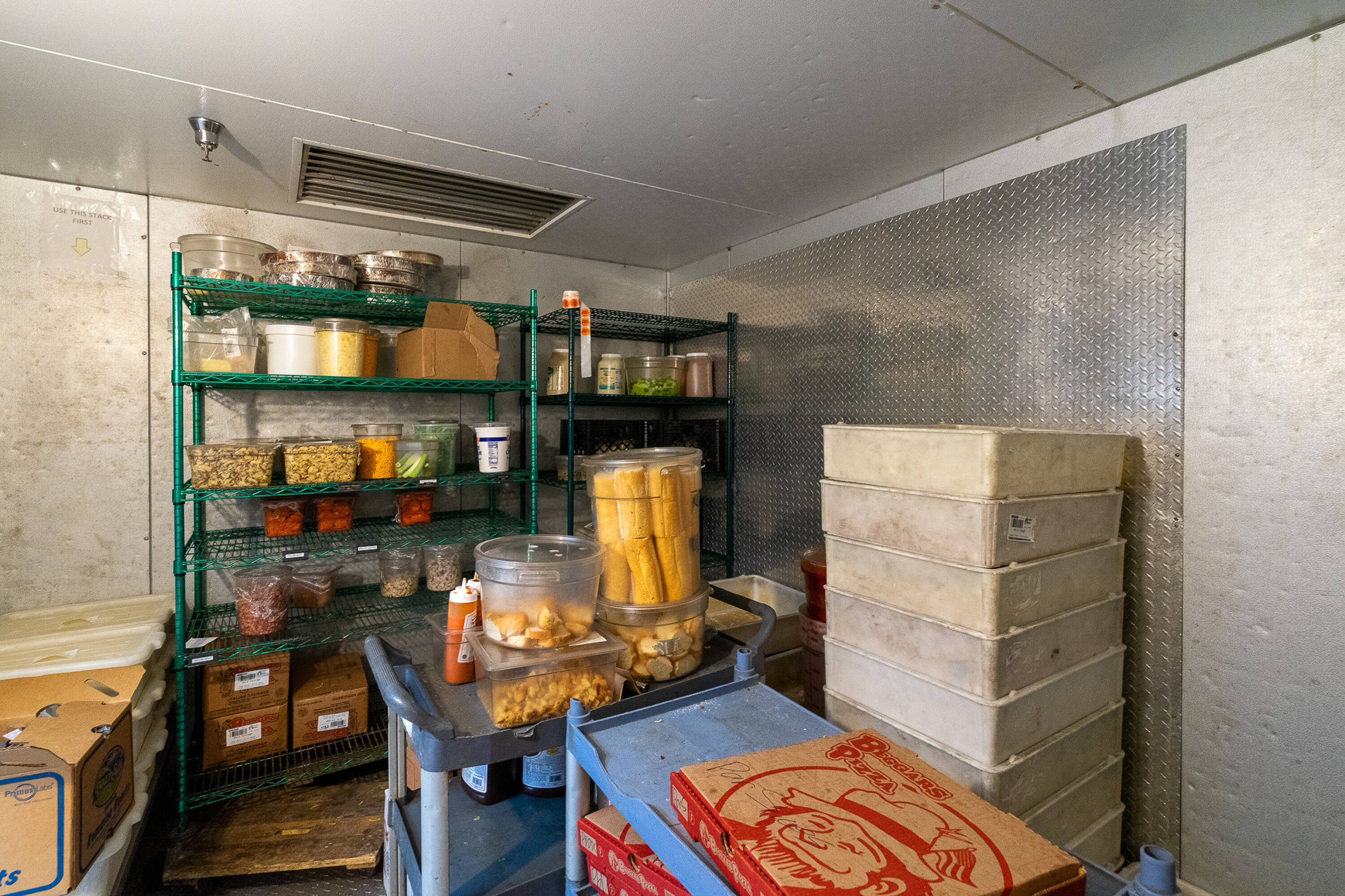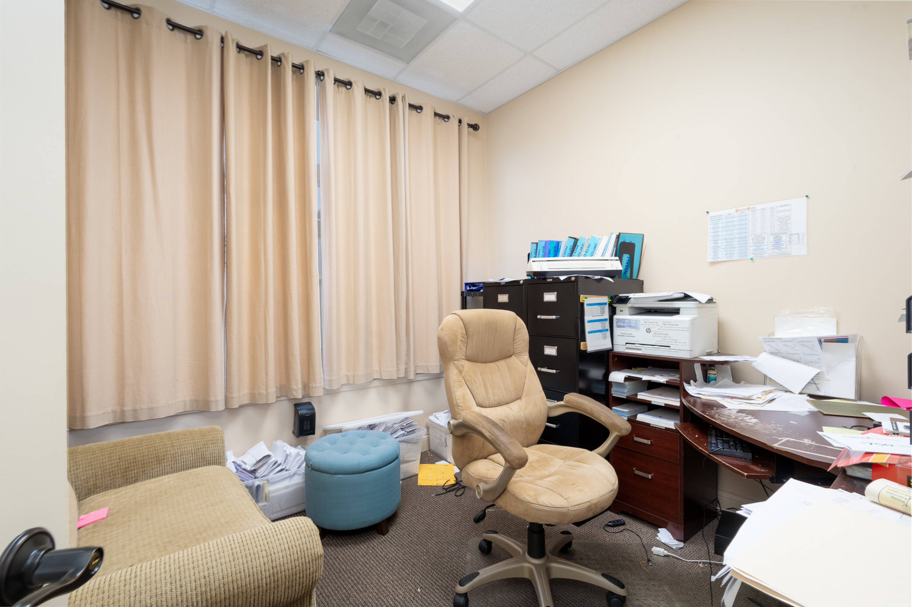 Spacious restaurant with party room, bar, and office space.