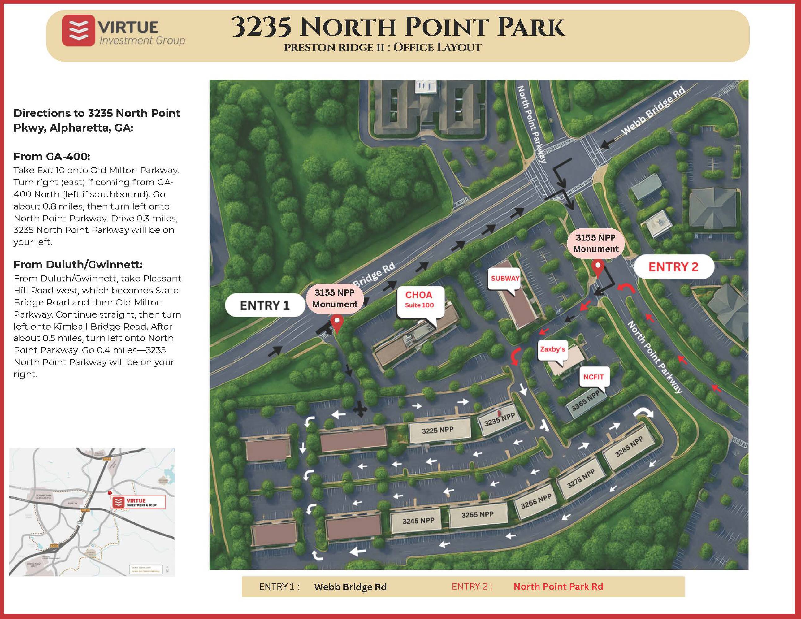 The property is located at 3235 North Point Pkwy Alpharetta, GA.