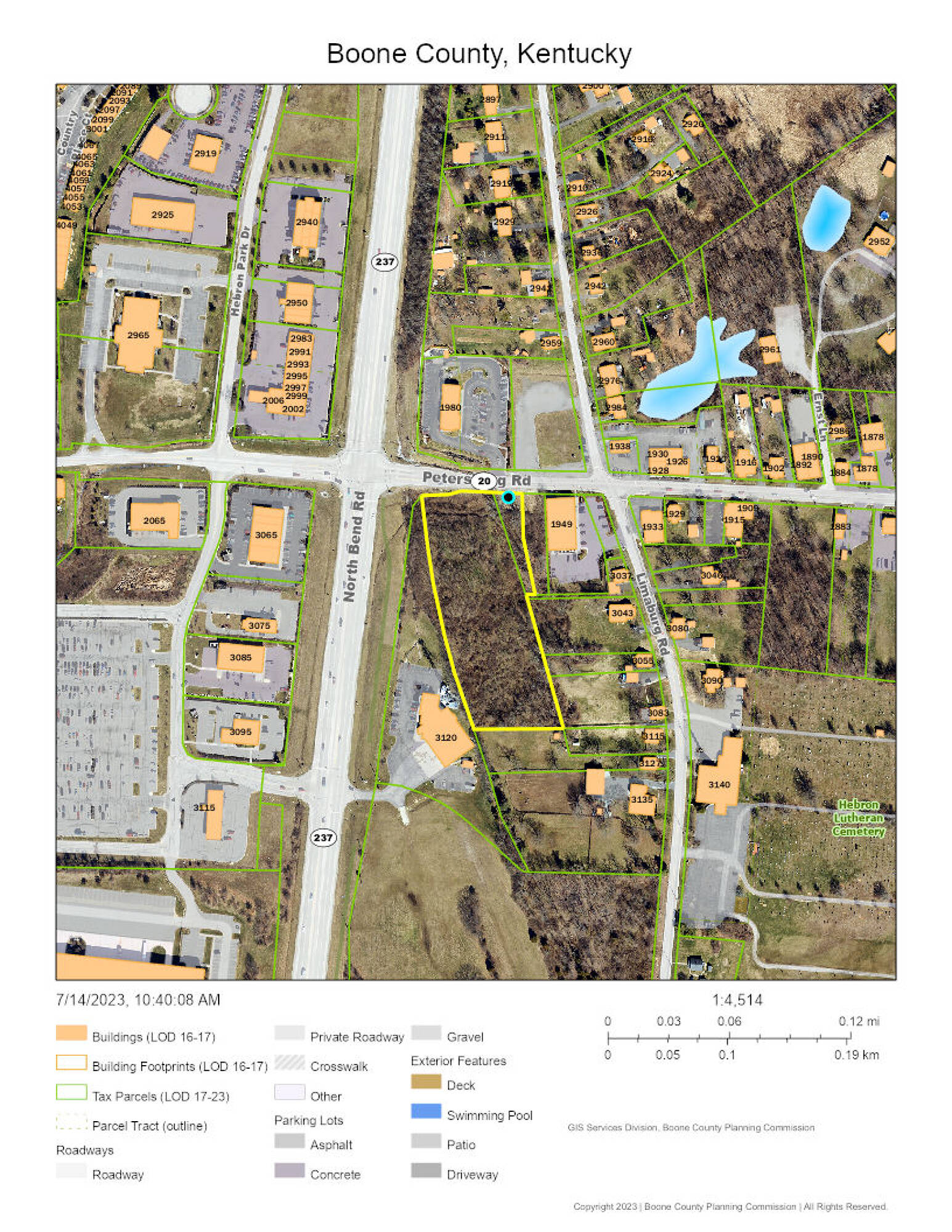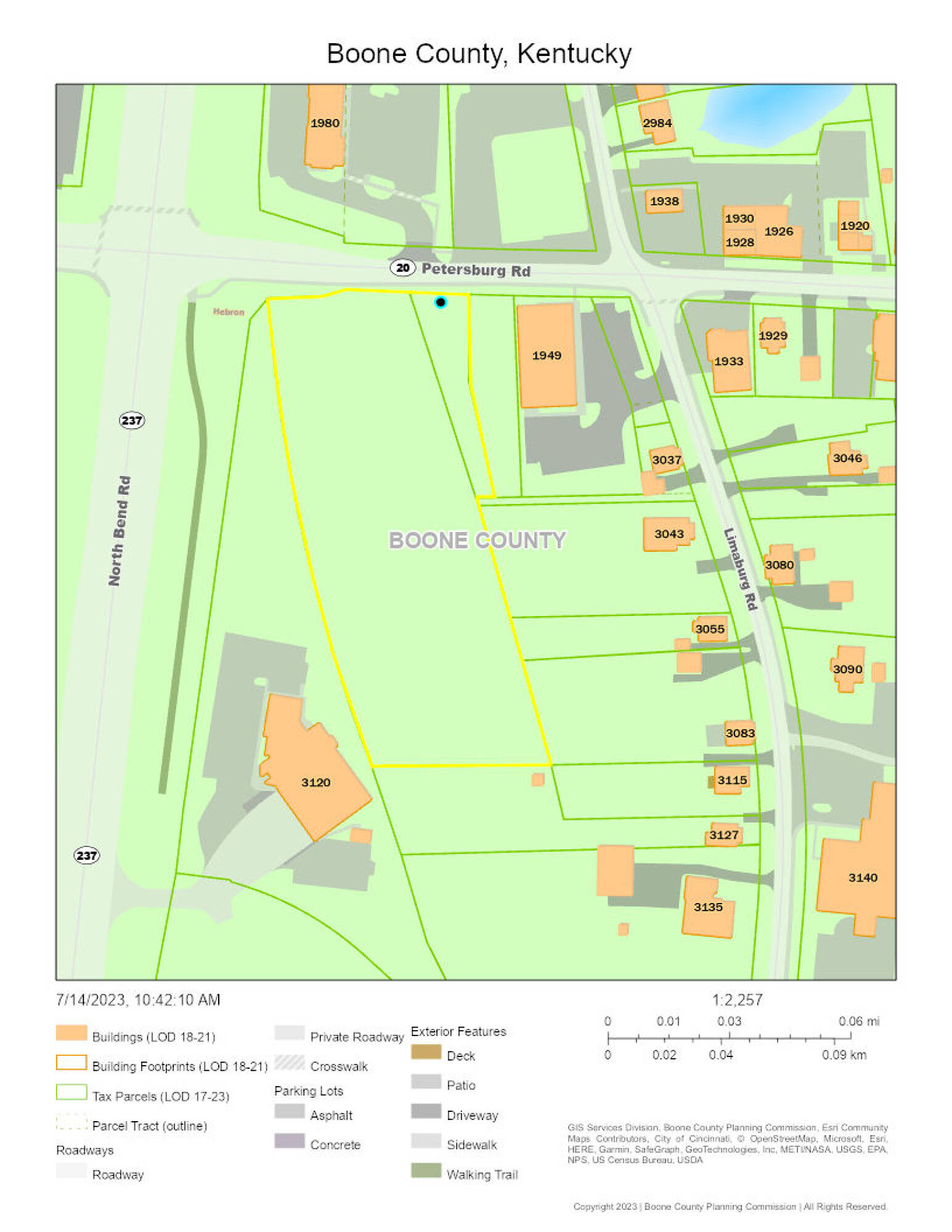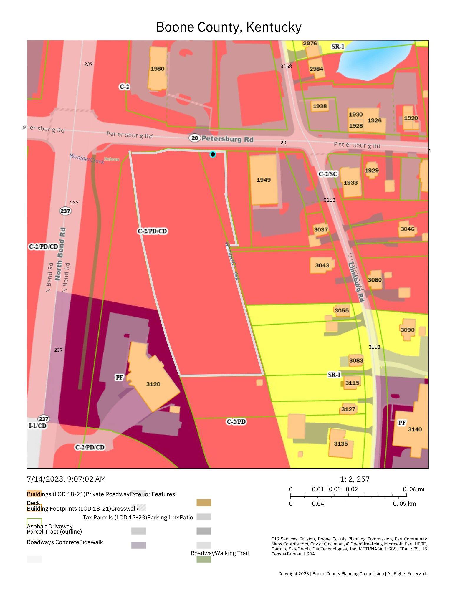This property features: Prime commercial location on Petersburg Road near North Bend Road.; 3.5 acres available for Build‑to‑Suit.; Zoned C‑2 with many permitted uses (eating/drinking, medical, office, retail, etc.).
