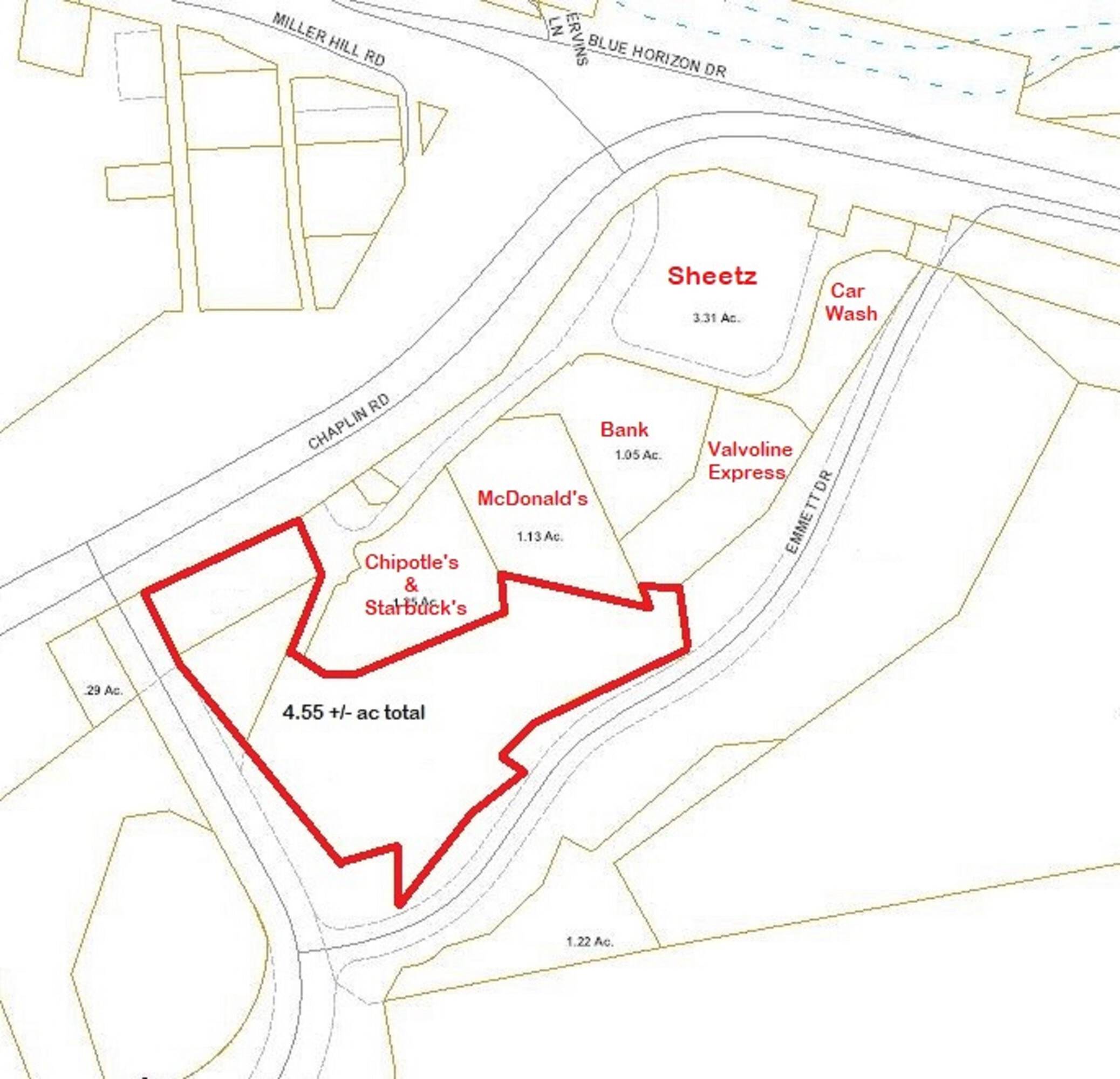 Commercial land - 4.55+/- AC commercial site with utilities, no zoning.