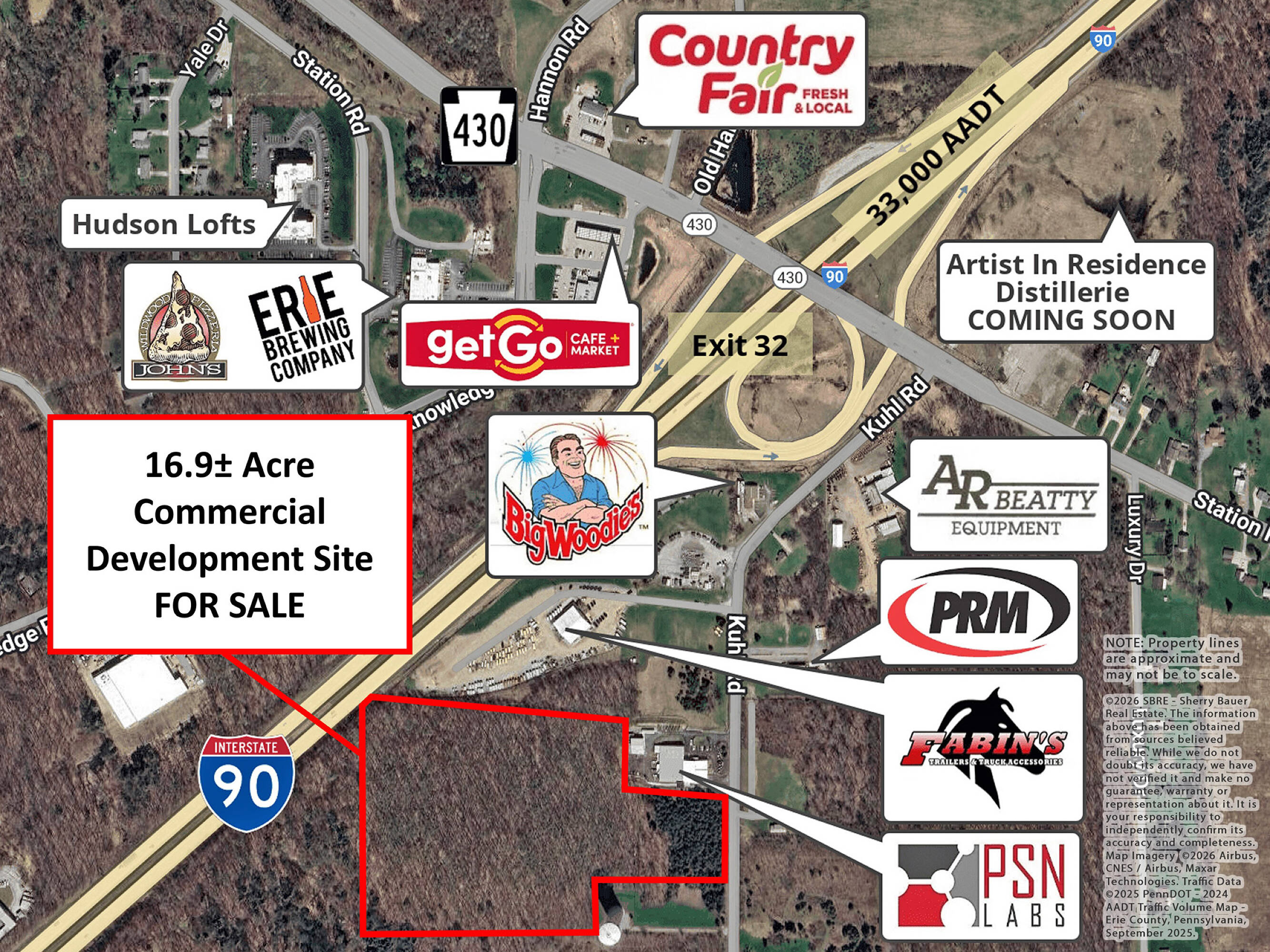 16.9 acre development site with highway visibility and public utilities.