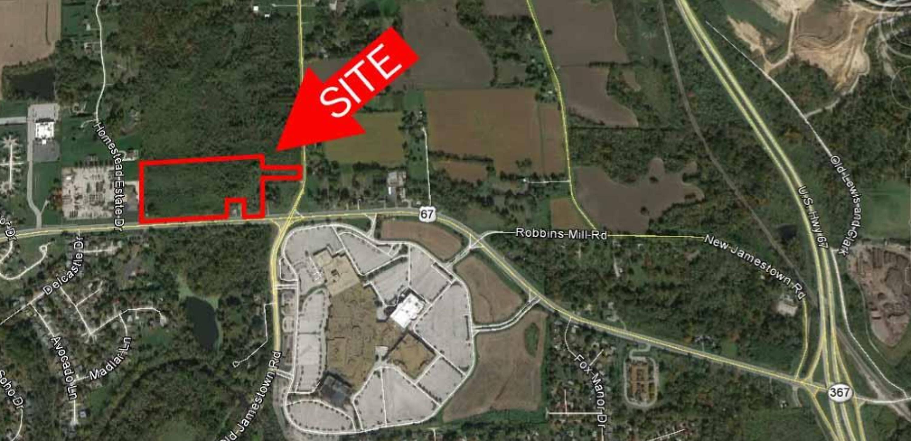 Commercial land near redeveloped Jamestown Mall with high traffic.