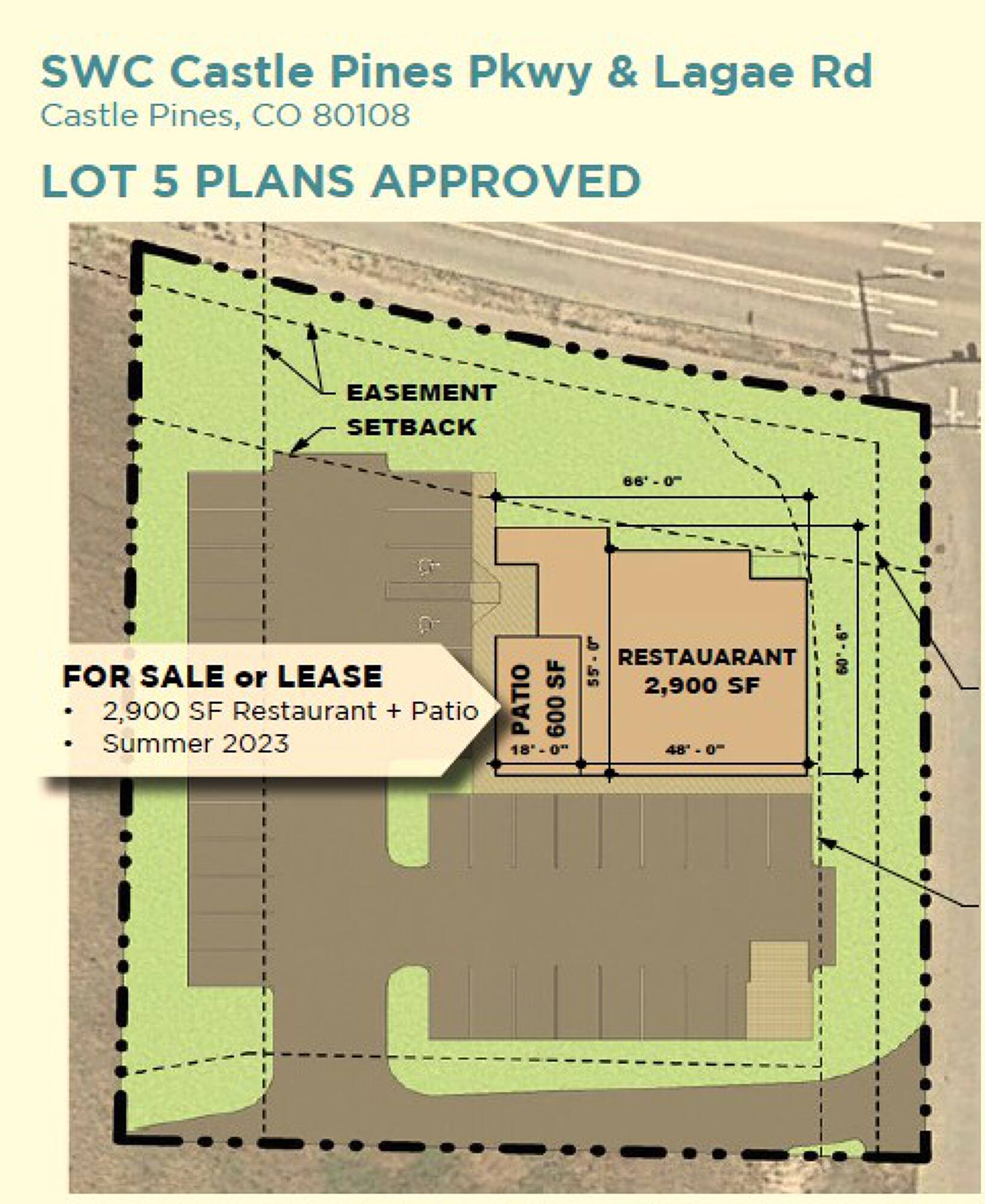 Commercial pads available in high-income area near residential development.