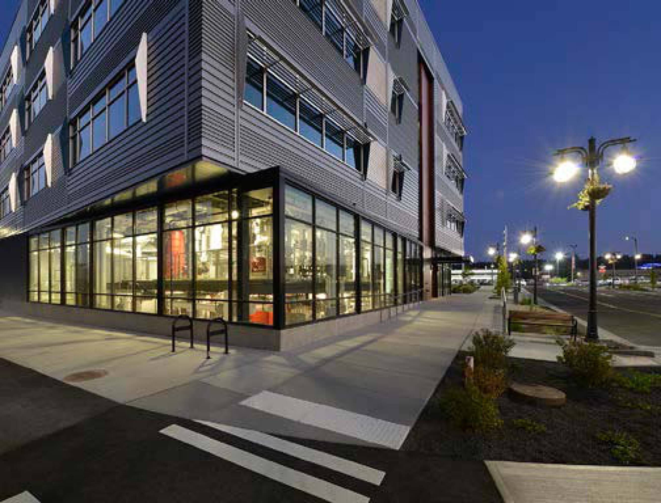 Located in Spokane’s University District, the Catalyst Building is a five-story, 159,000-square-foot structure designed to foster innovation and collaboration between industry and academia. The building features two wings surrounding a light-filled collaborative atrium. It is the anchor building in a planned innovation hub.
