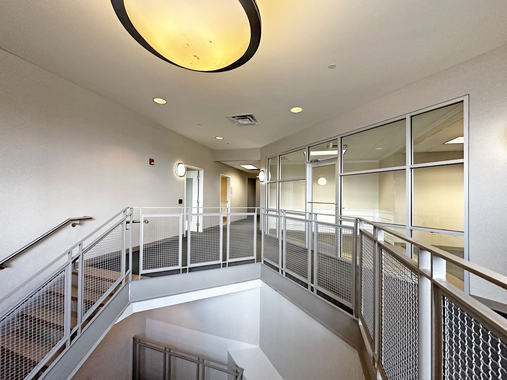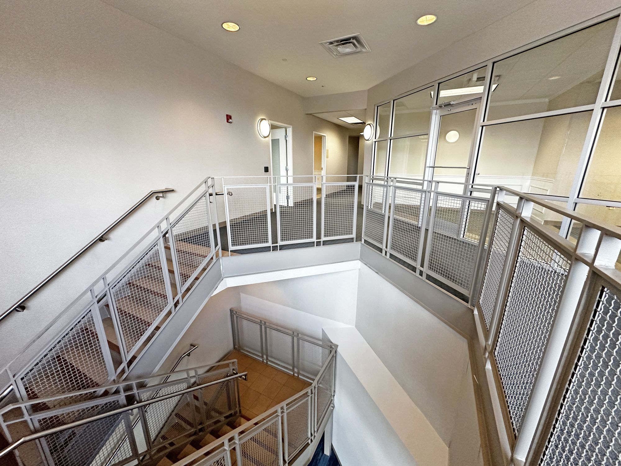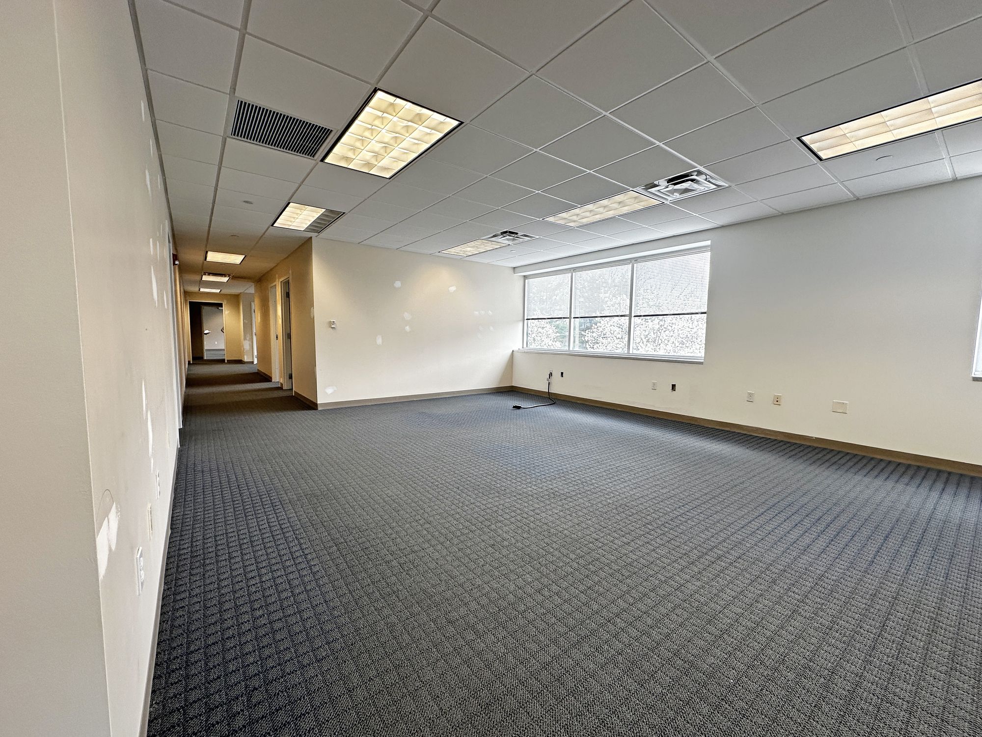 Second floor office space with natural light and on-site parking.