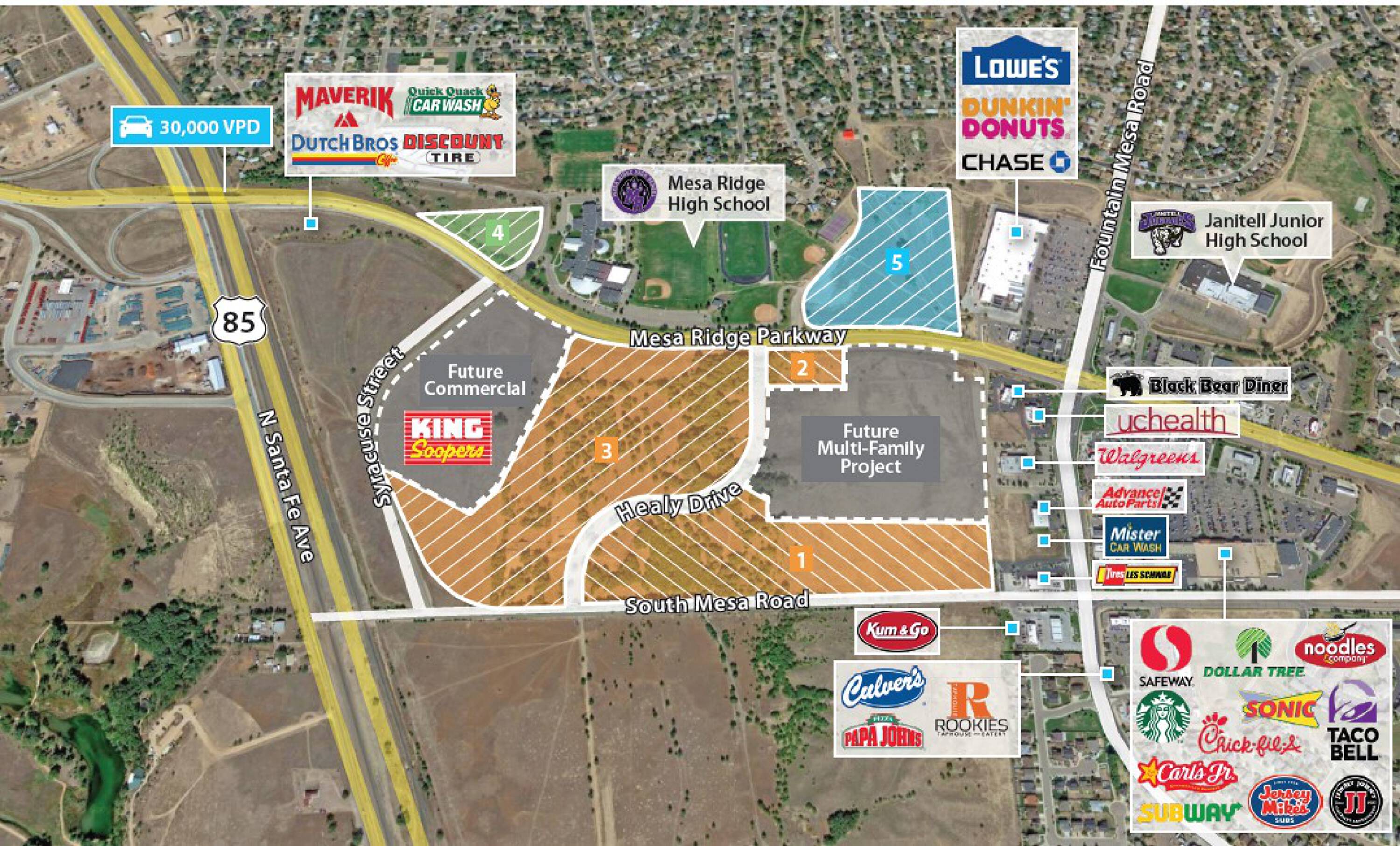 This property features: Excellent traffic counts make this a highly visible location.; Conveniently located less than one mile from Interstate 25, offering easy access.; Strong retail growth within the trade area.
