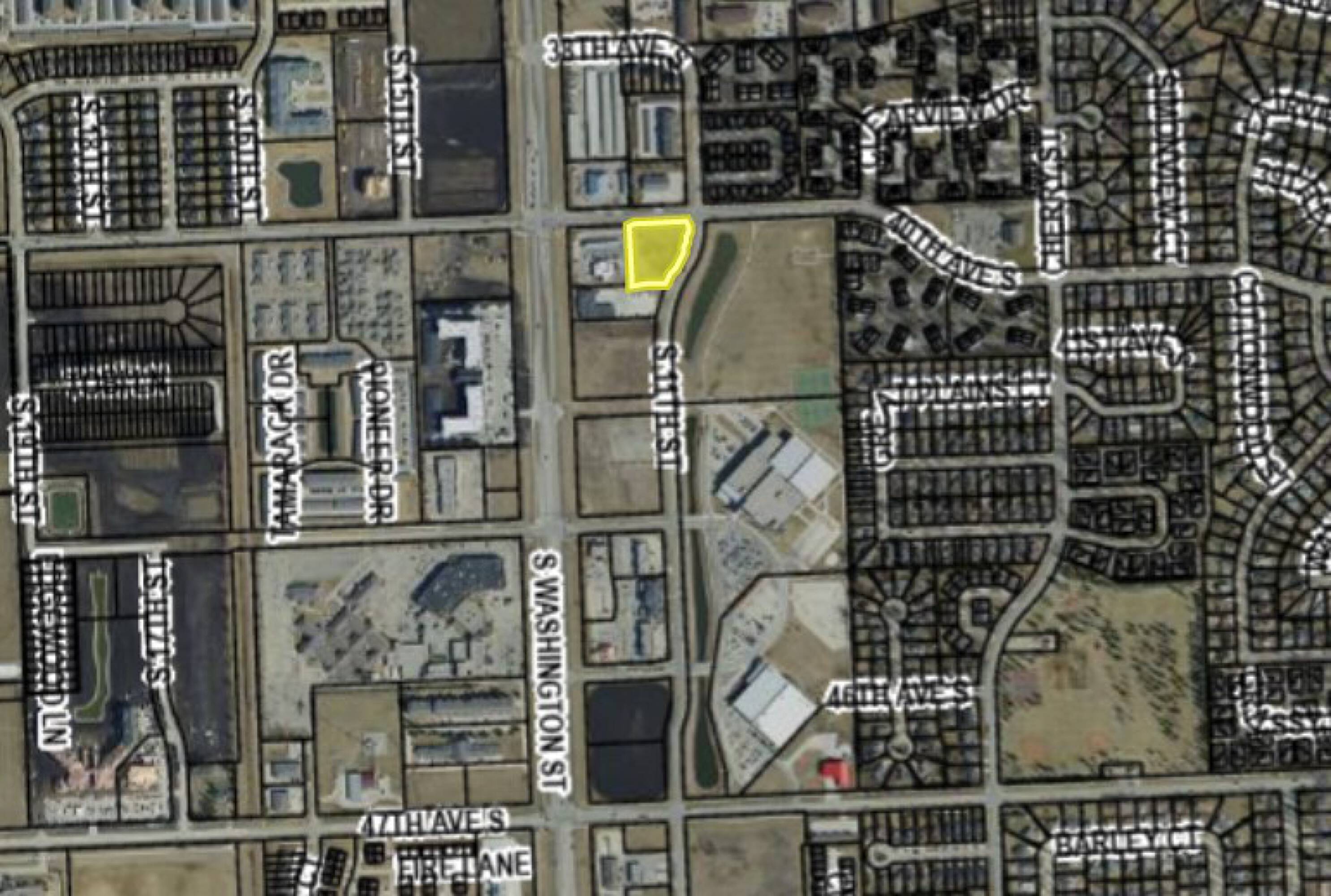 A commercial land parcel is available for sale. The lot, which is just over half an acre, is located to the east of a Holiday Station store on South Washington. The seller intends to develop the north half of the overall lot. The bottom portion, measuring 25,353 square feet, will be available for purchase and subdivided into its own parcel.