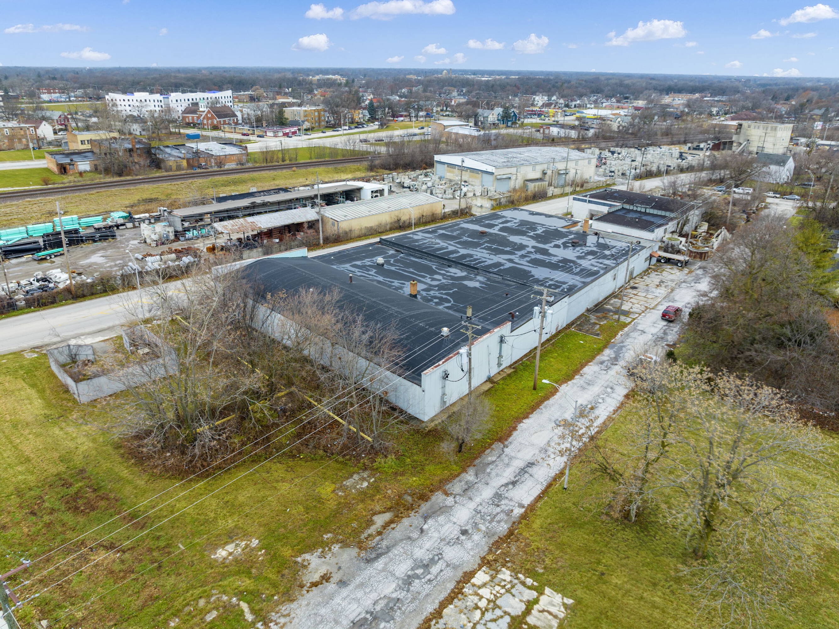 This is a vacant 26,000 square foot warehouse situated on one acre of land. The property features multiple overhead doors, warehouse spaces, and an office area with bathrooms. Zoned B-3, the location allows for multiple uses beyond warehousing. The property is located off the railroad tracks on a quiet street, providing ample space for semi-trucks. The zoning allows for multiple uses.