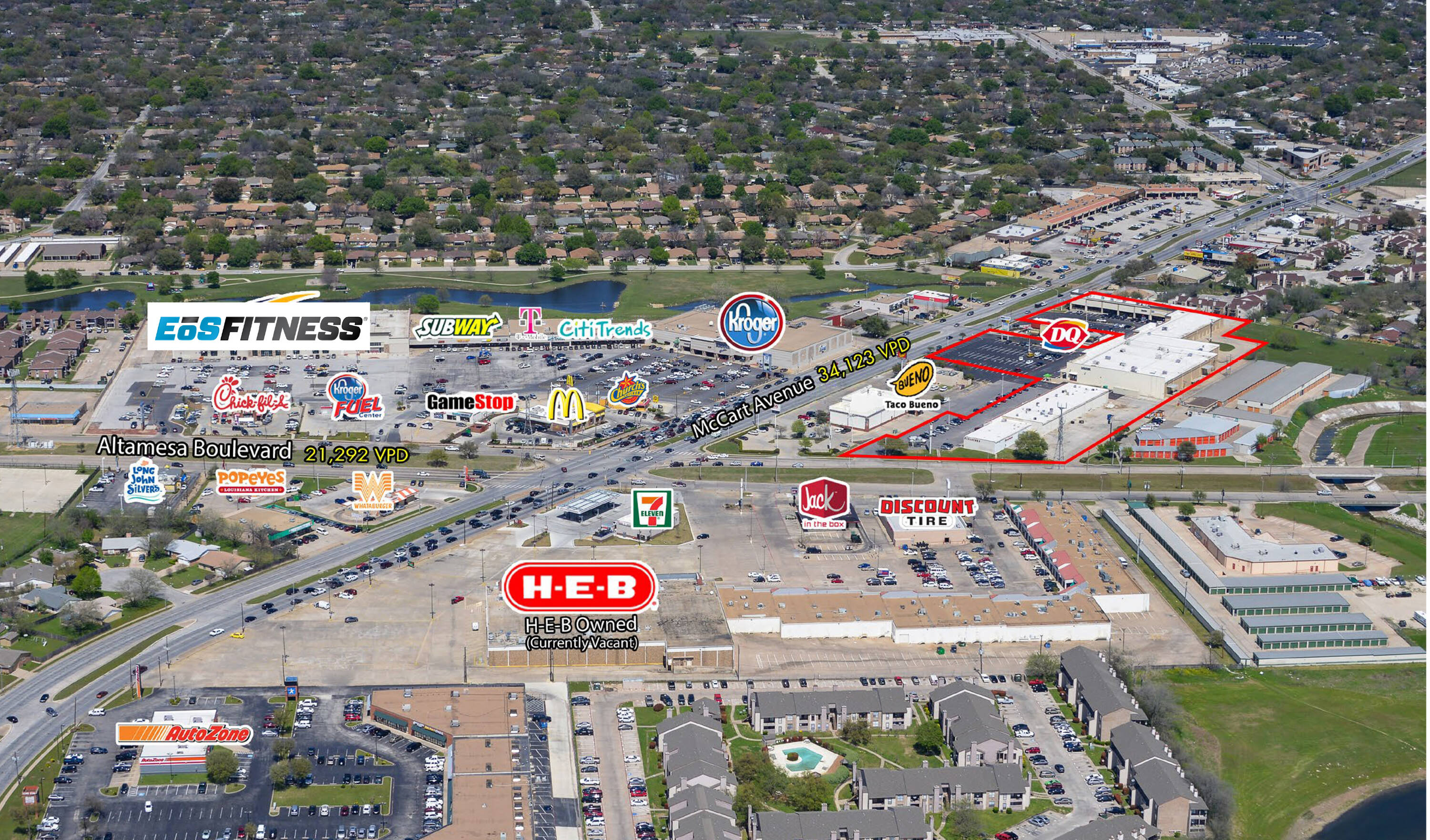 The property is located at 6401-6451 McCart Avenue Fort Worth, TX.