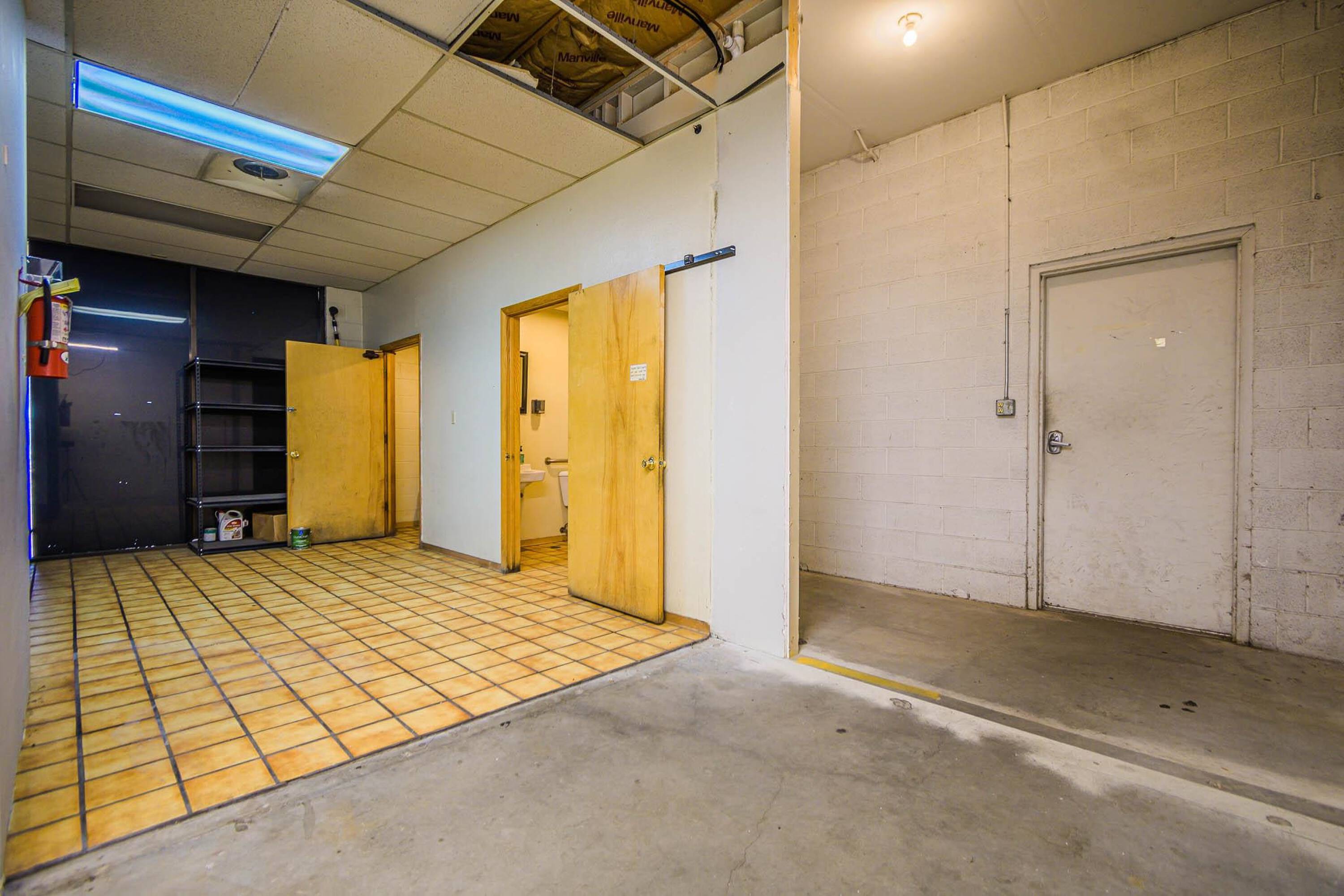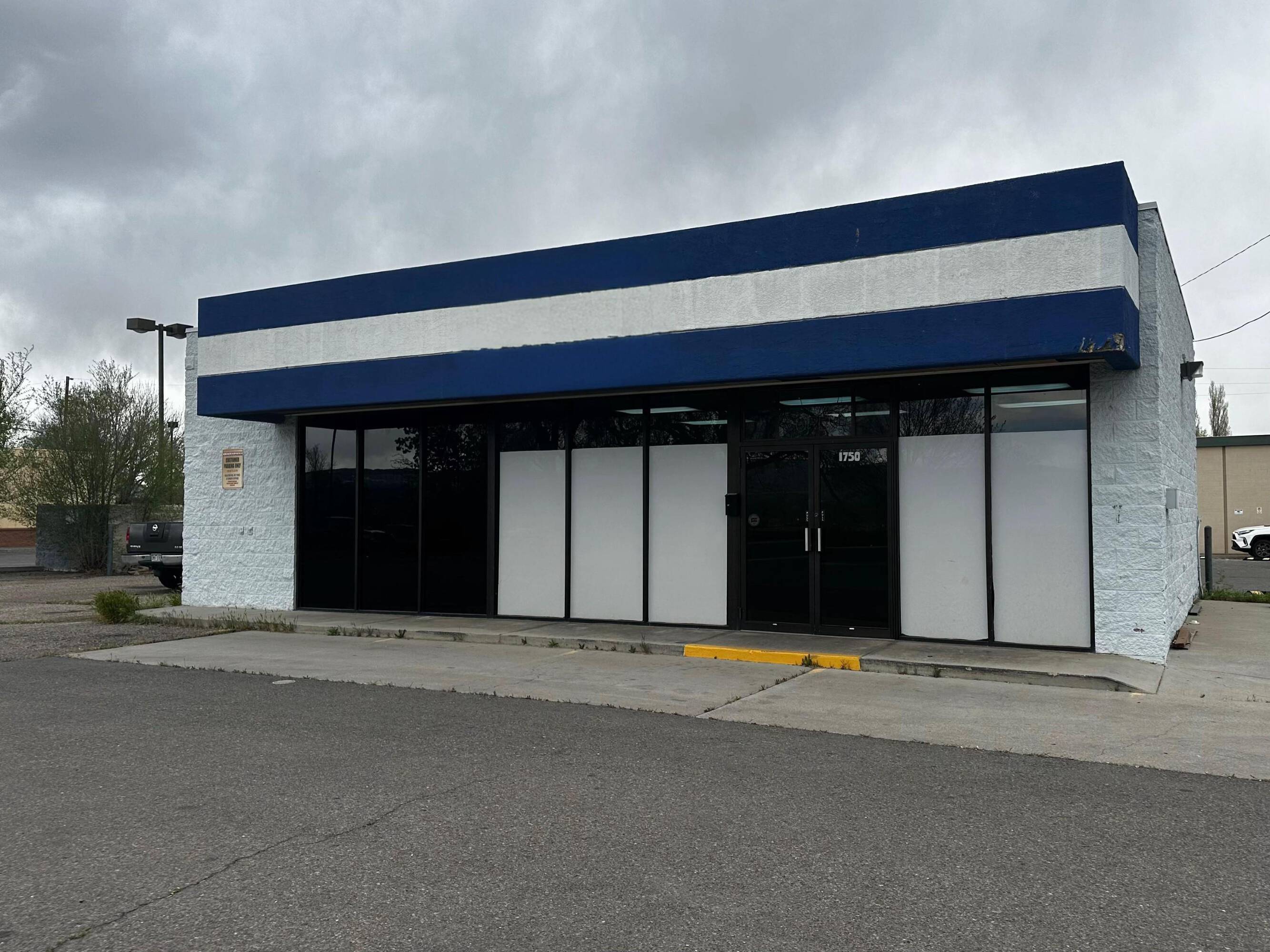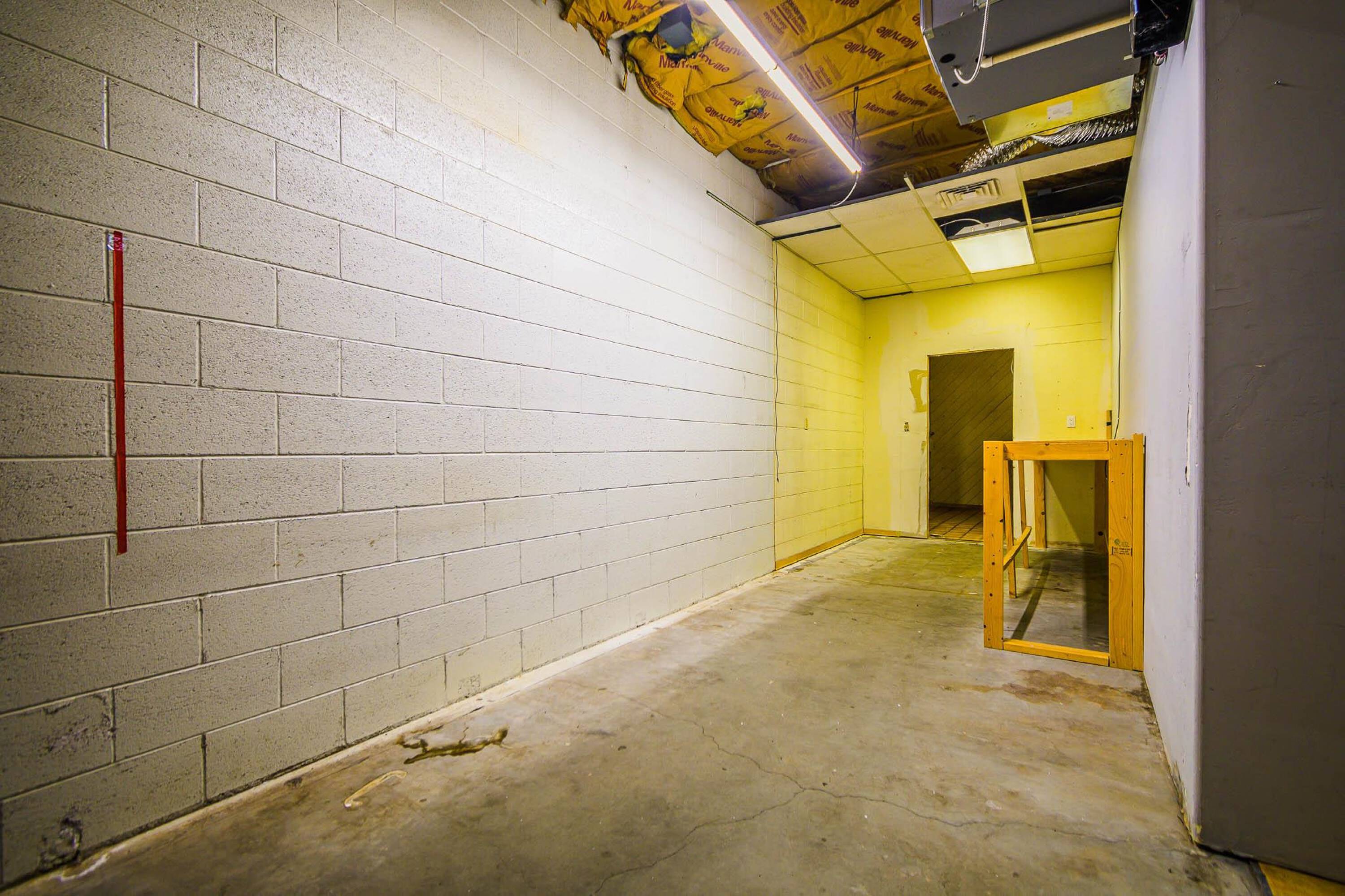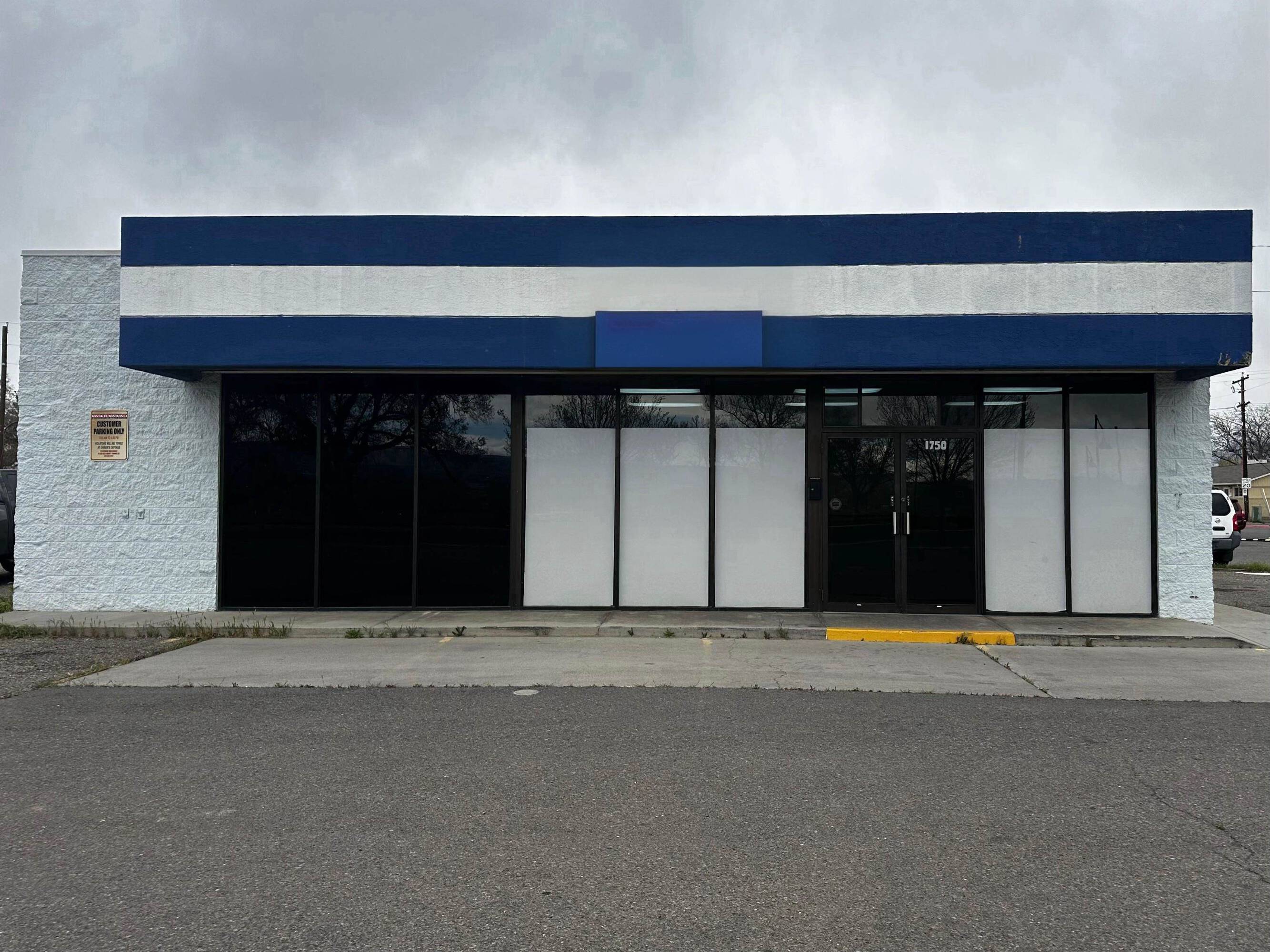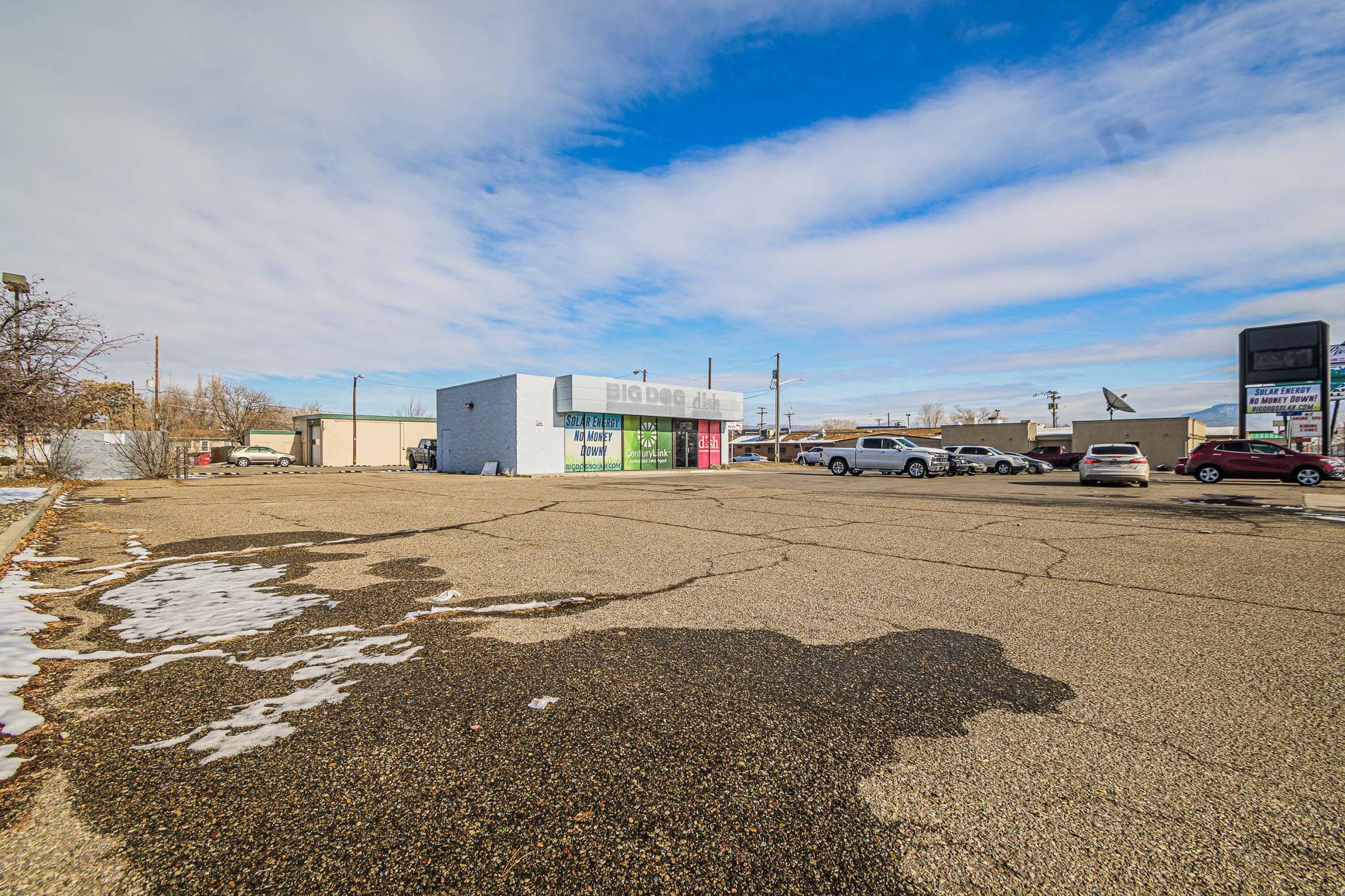 Retail space with parking, storage, and signage available for lease.