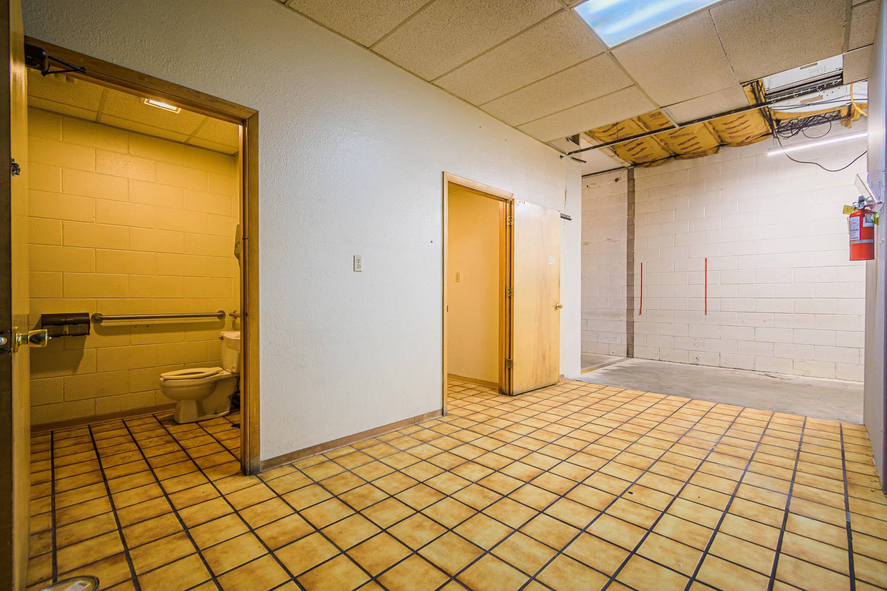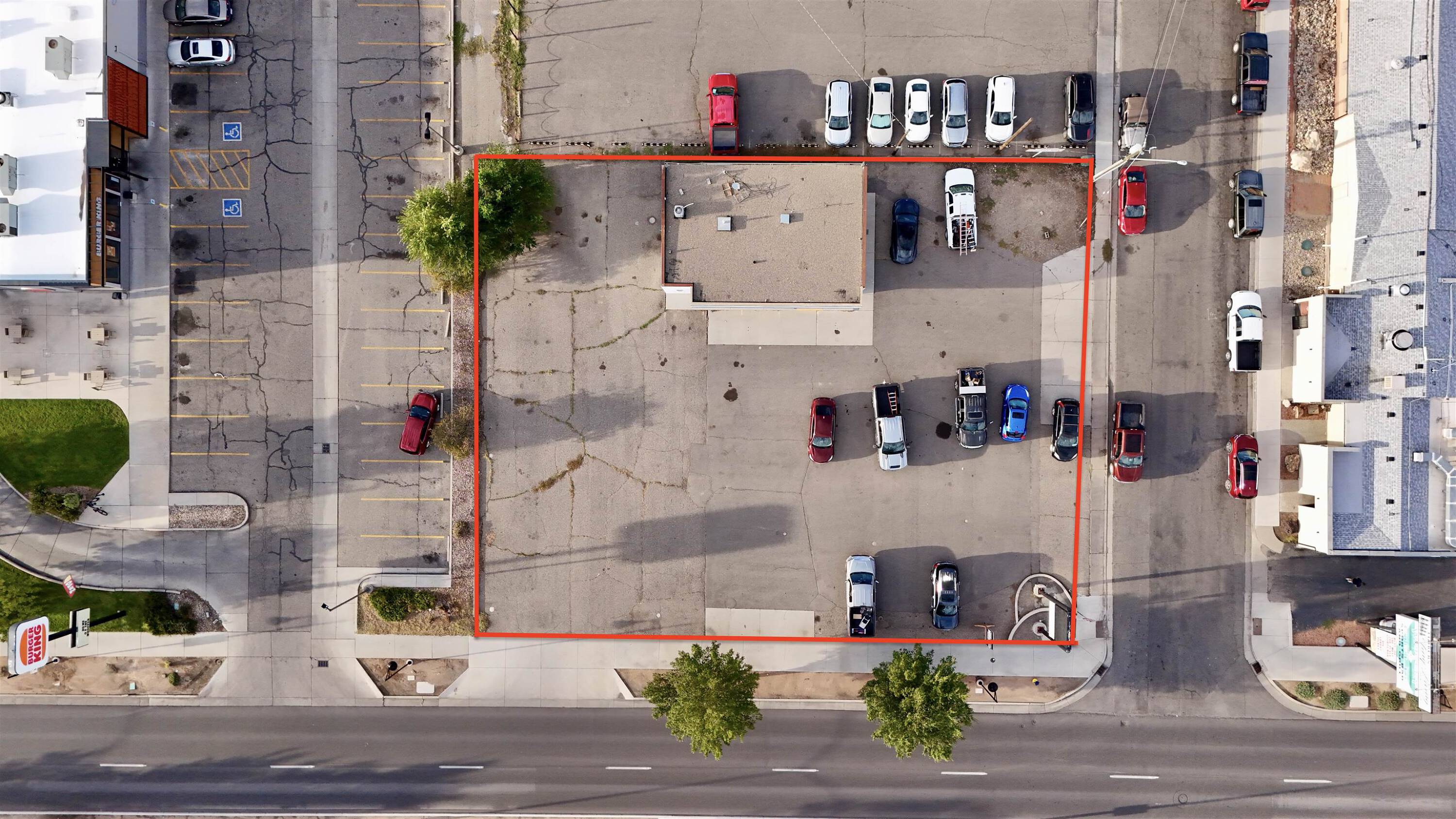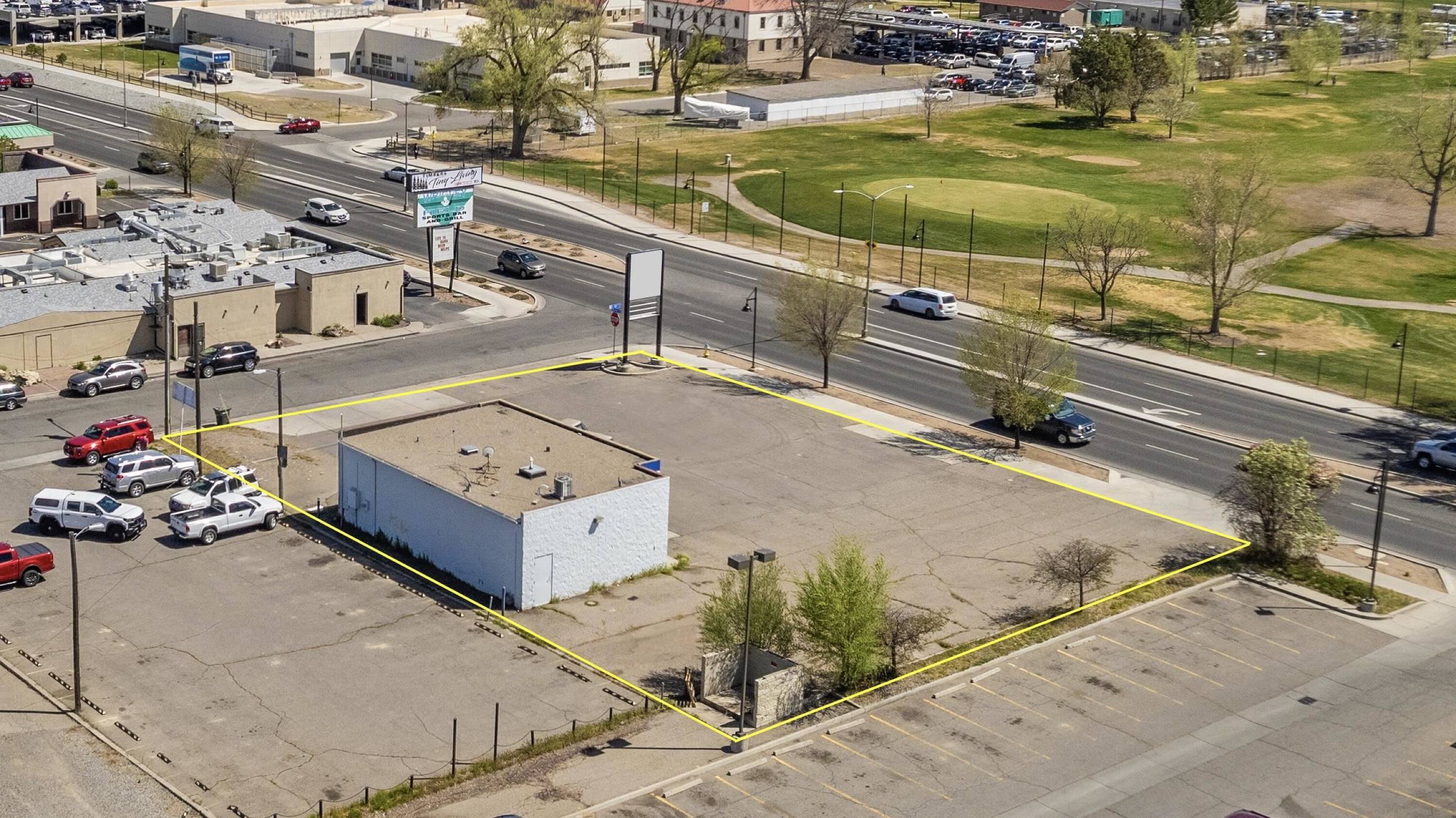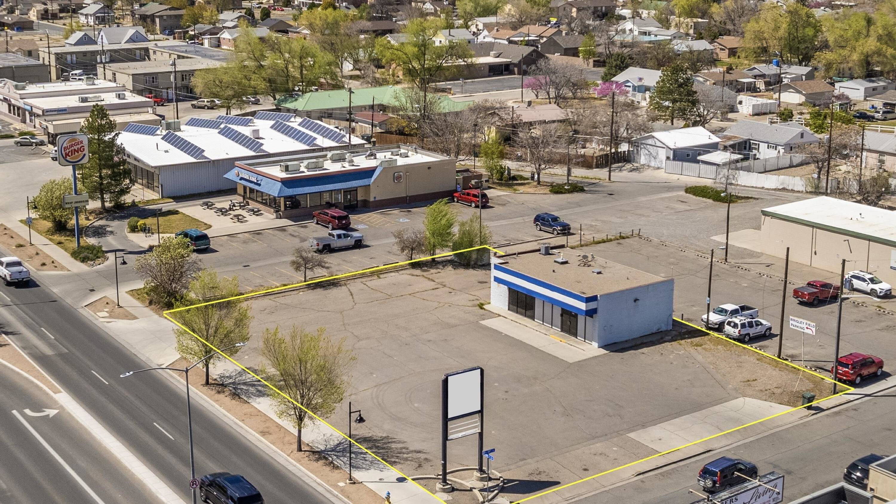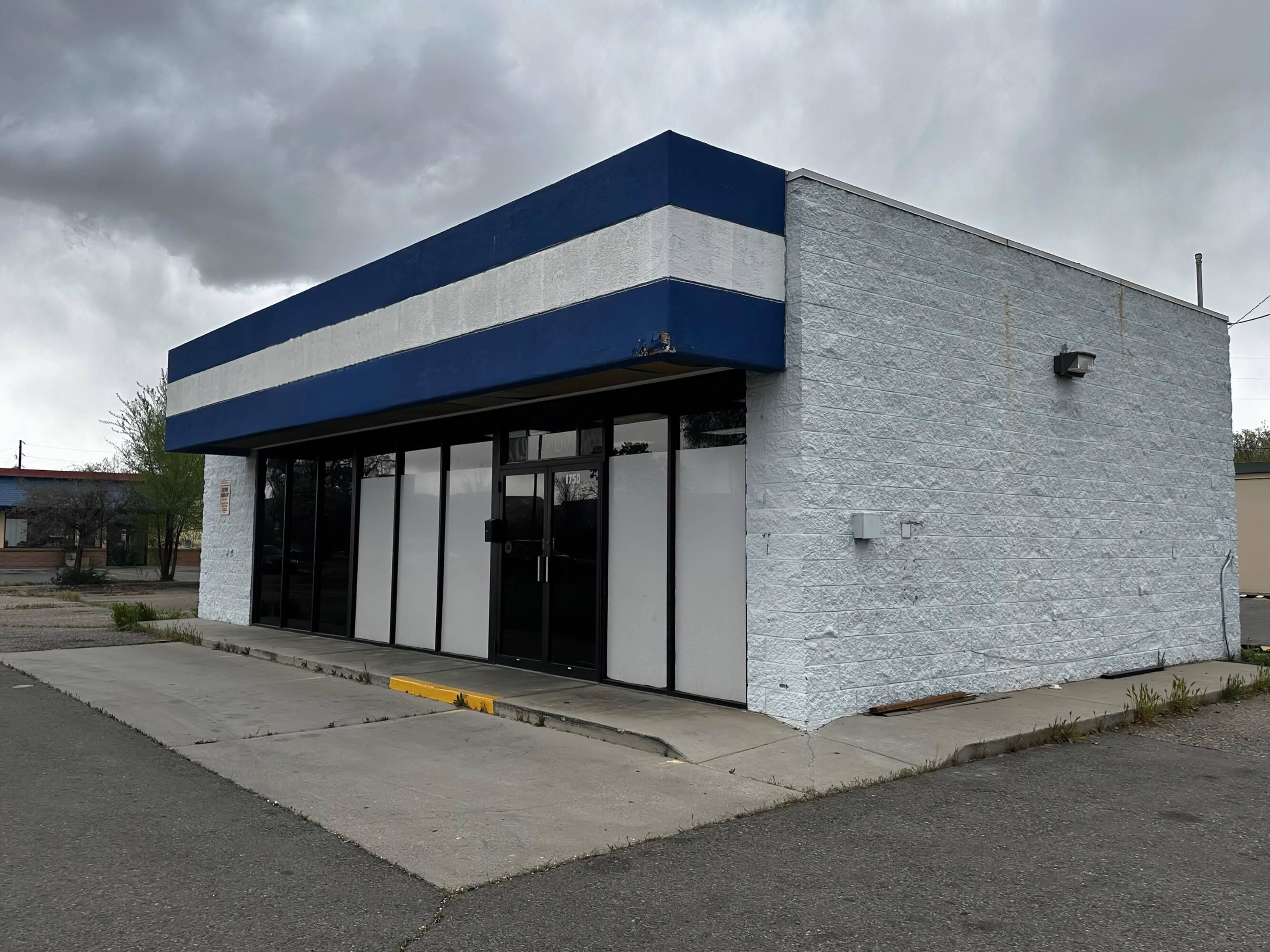 Retail space with parking, storage, and signage available for lease.