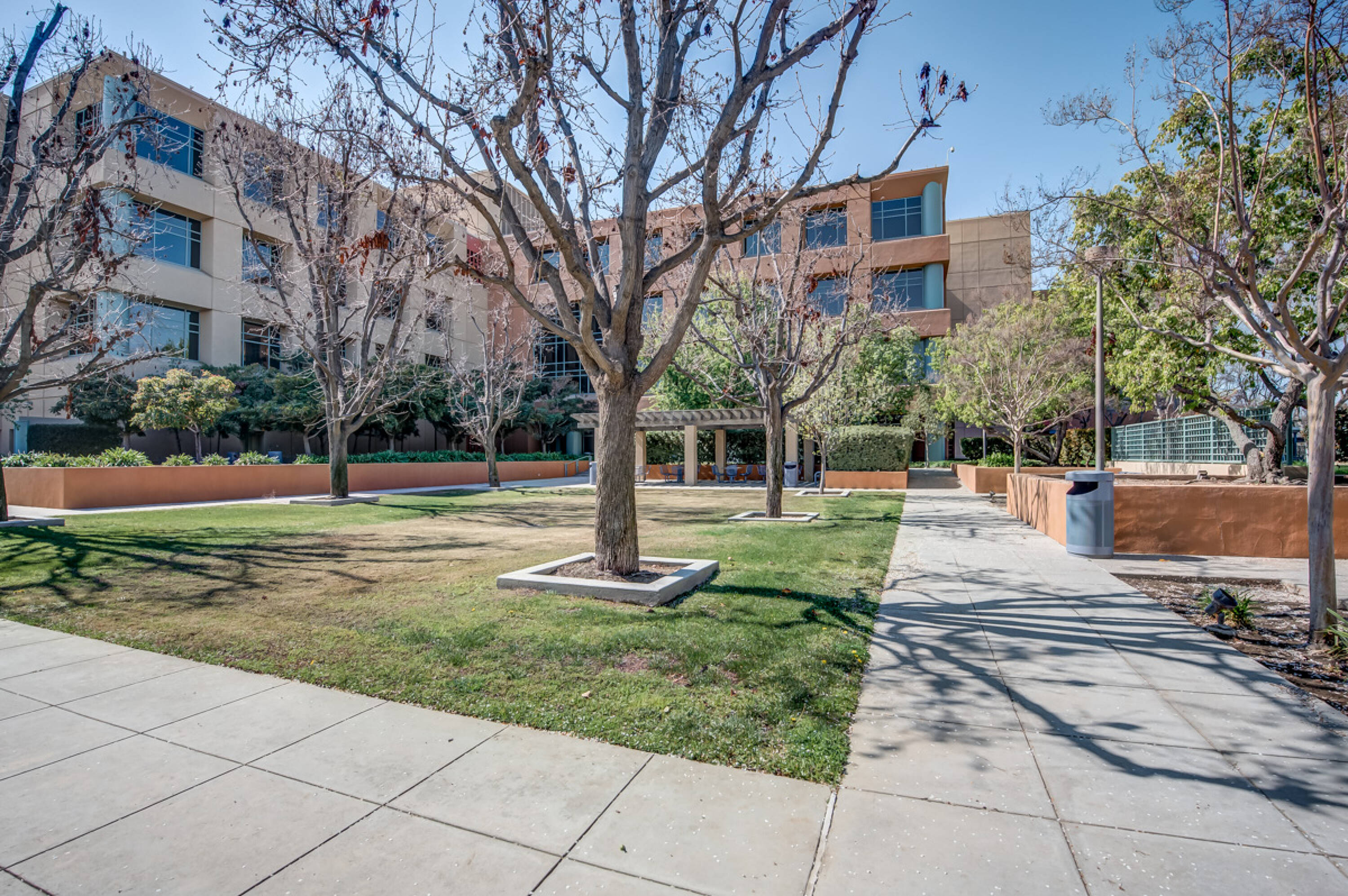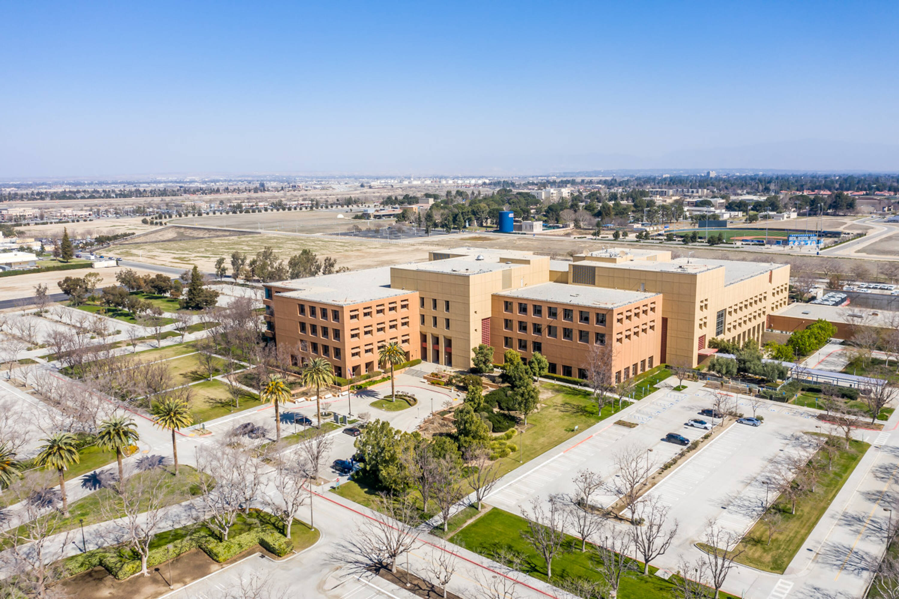 Four-story office building with a subterranean level in Bakersfield.