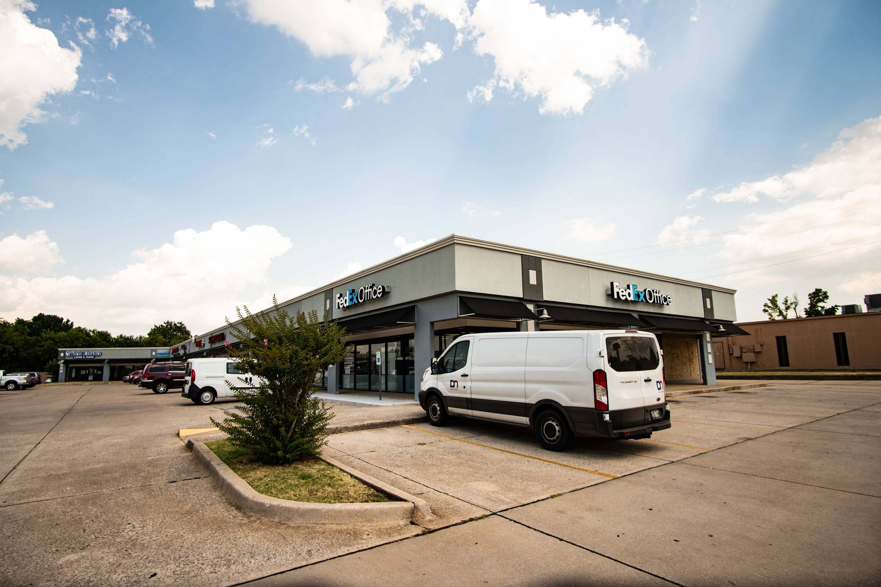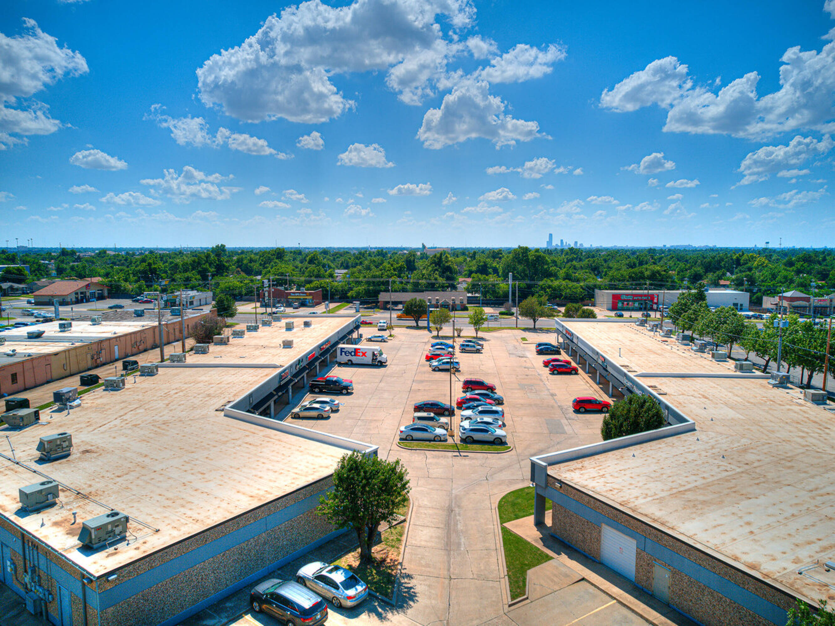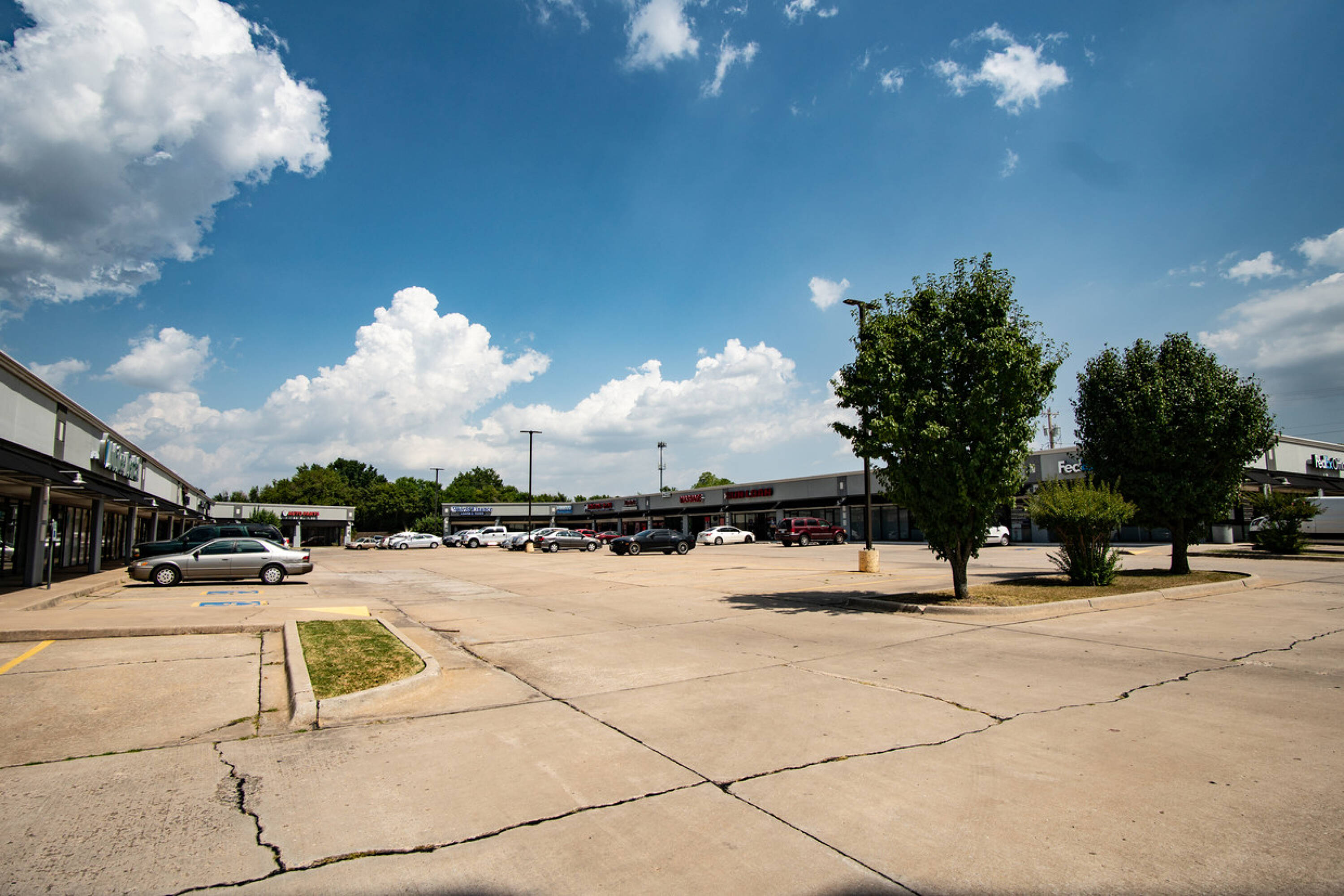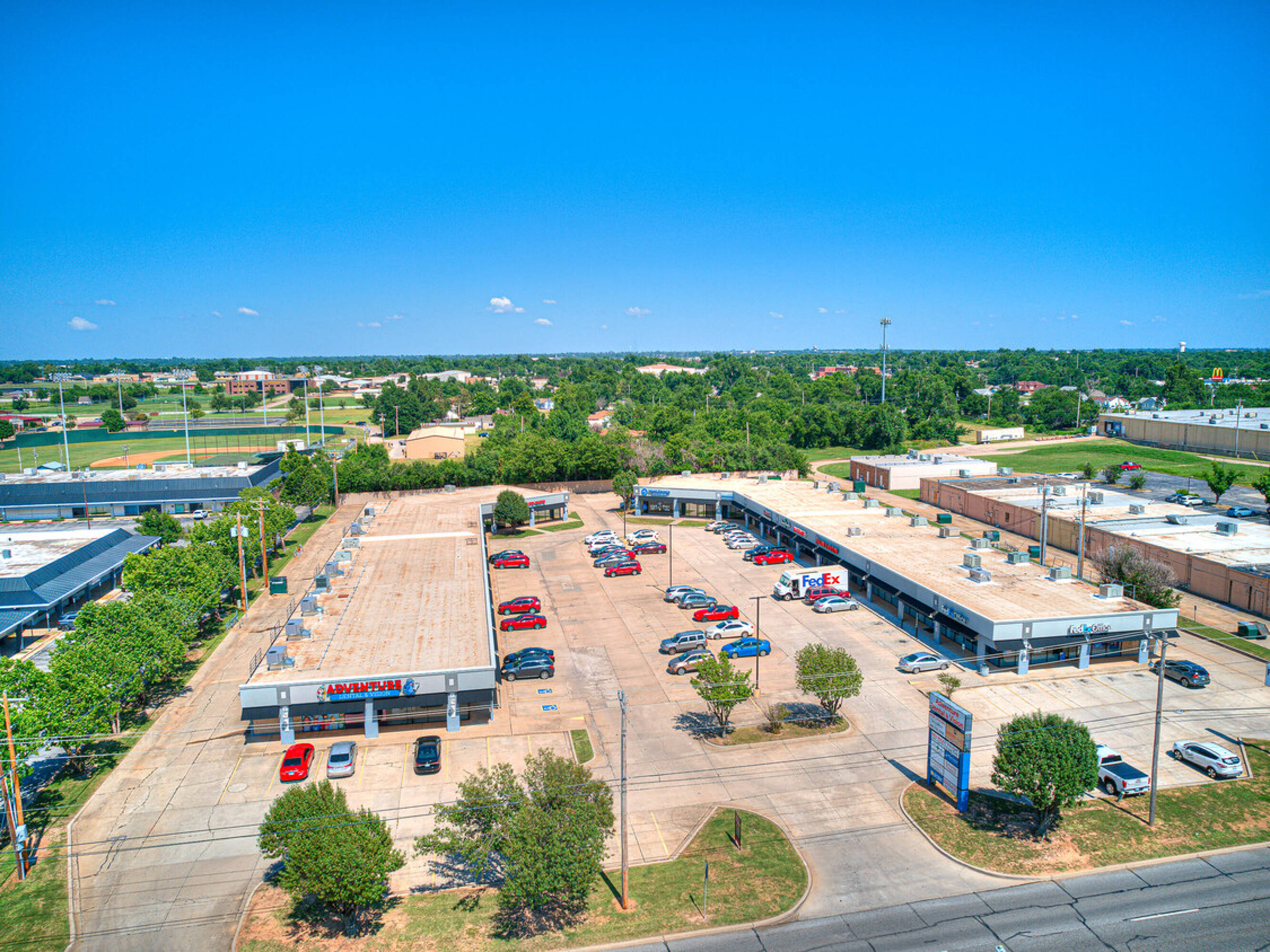 Retail and office spaces available in well-maintained Midwest City shopping center.