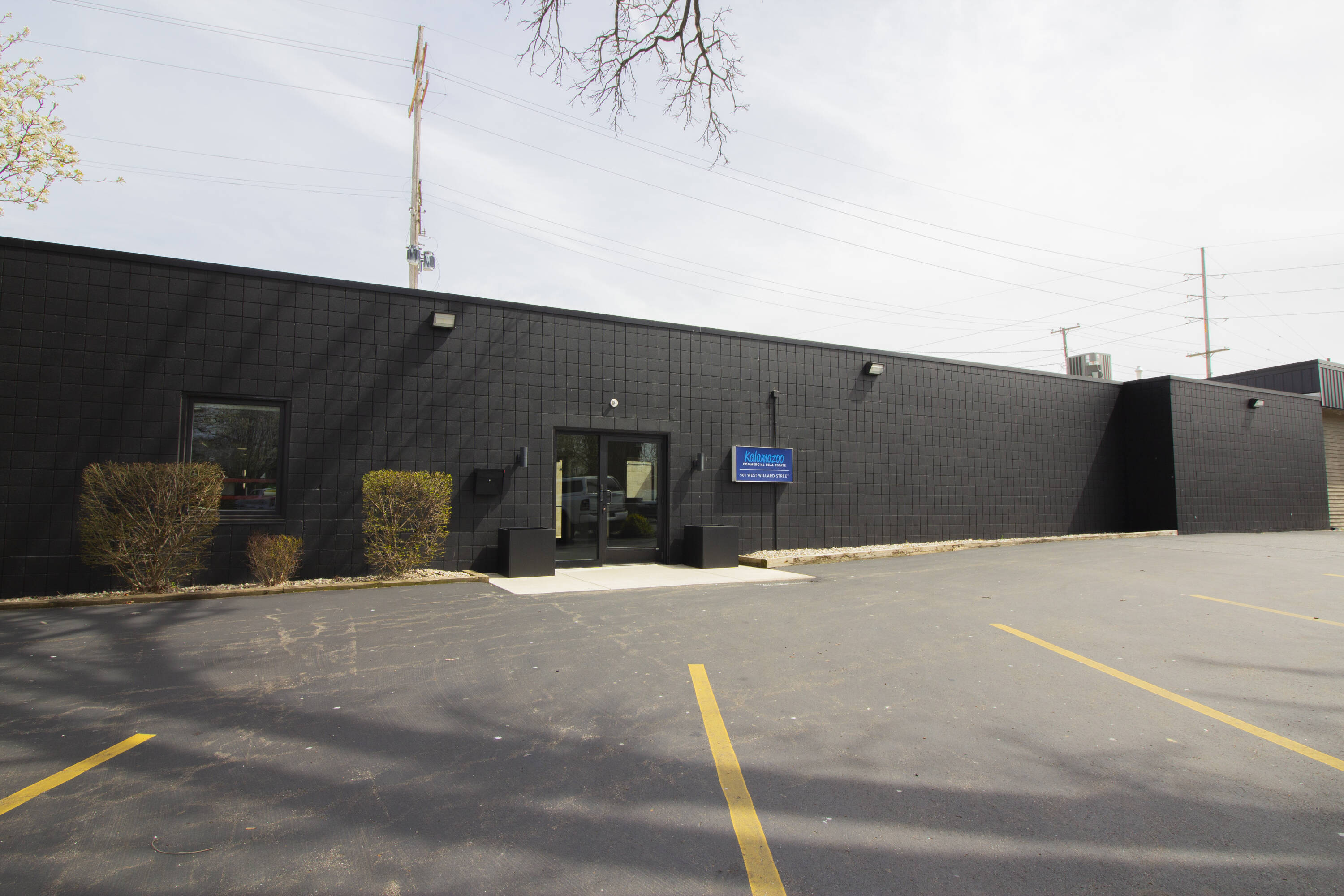 The property at 501 West Willard Street offers 2,500 square feet of modern office space, renovated in 2020. The space features an open-concept floorplan, including a large conference room with a coffee bar, a lobby area with a reception desk, five private offices, and a kitchenette. A glass overhead door opens to a private 1,300 square foot courtyard suitable for outdoor meetings or events. Located on the corner of Westnedge Avenue and Willard Street, the property provides signage opportunities and ample onsite parking. The location also offers convenient access to Downtown Kalamazoo.