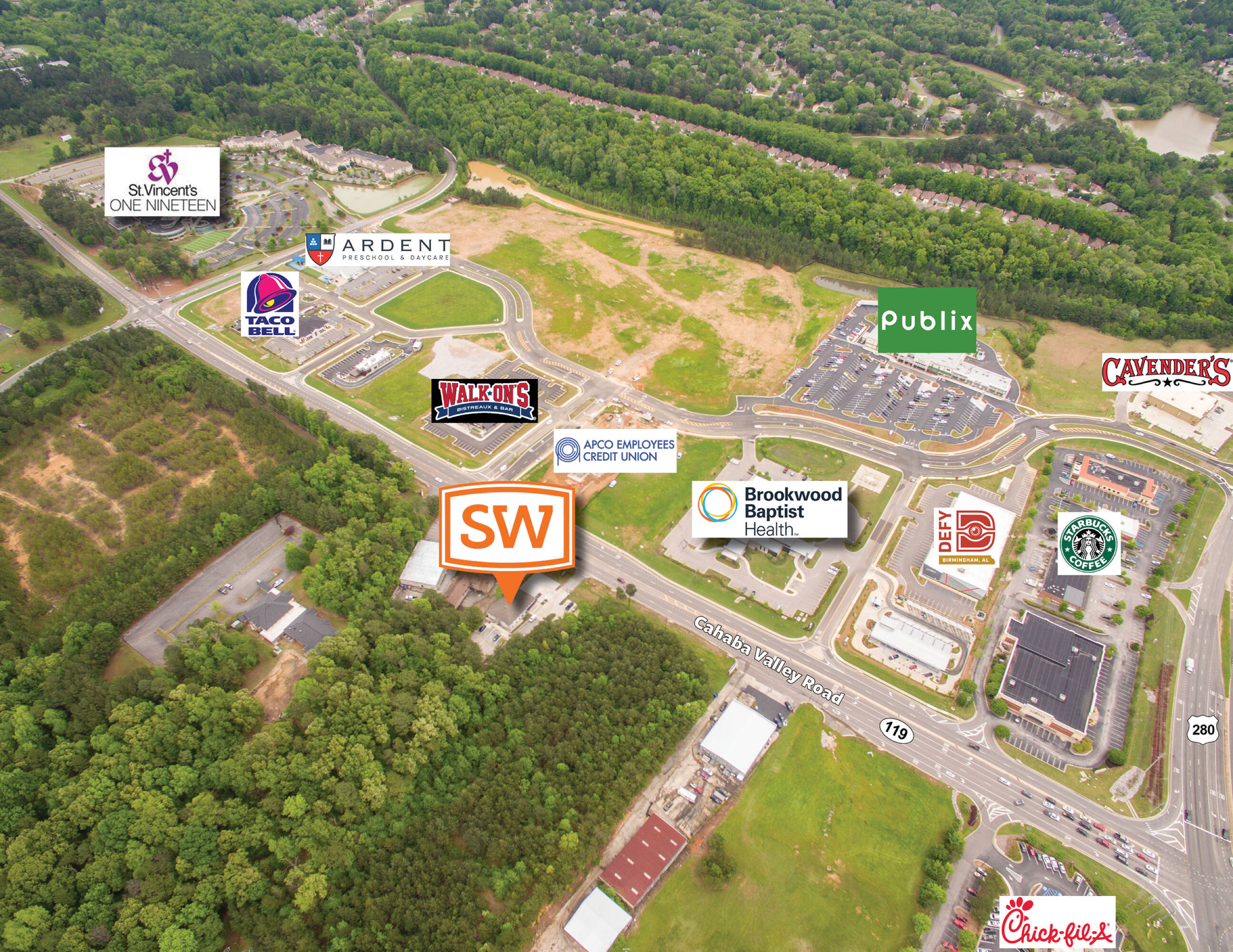 This office building, available for sale, was fully renovated in 2018. It is located at the intersection of Highway 280 and Highway 119, across from the Brookwood Freestanding Emergency Room and one minute from St. Vincent’s 119. The property is approximately 3 miles from Grandview Medical Center and offers ample parking. The building has a size of 7,200 square feet.