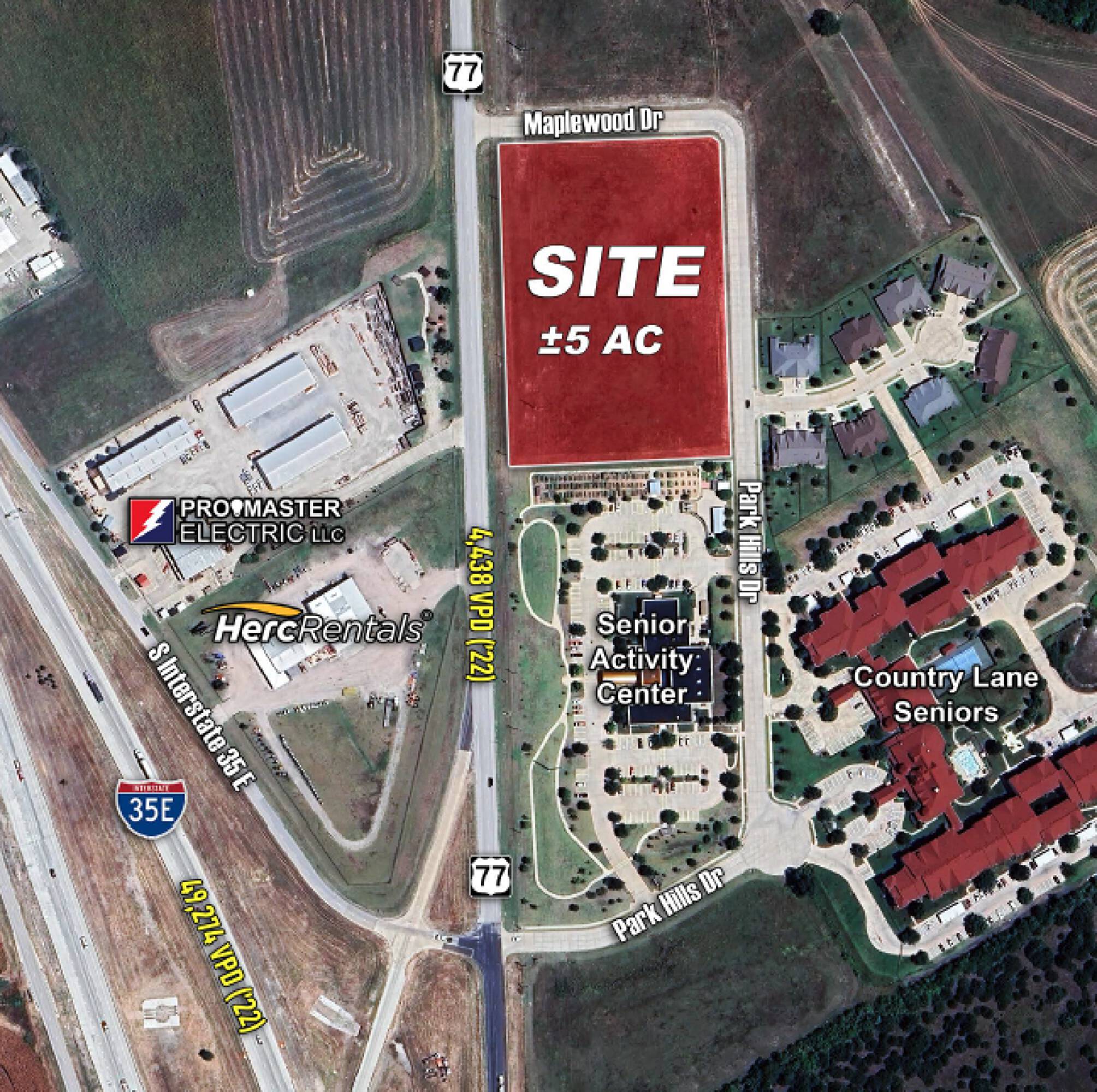 5 acres available with frontage on US Hwy 77.