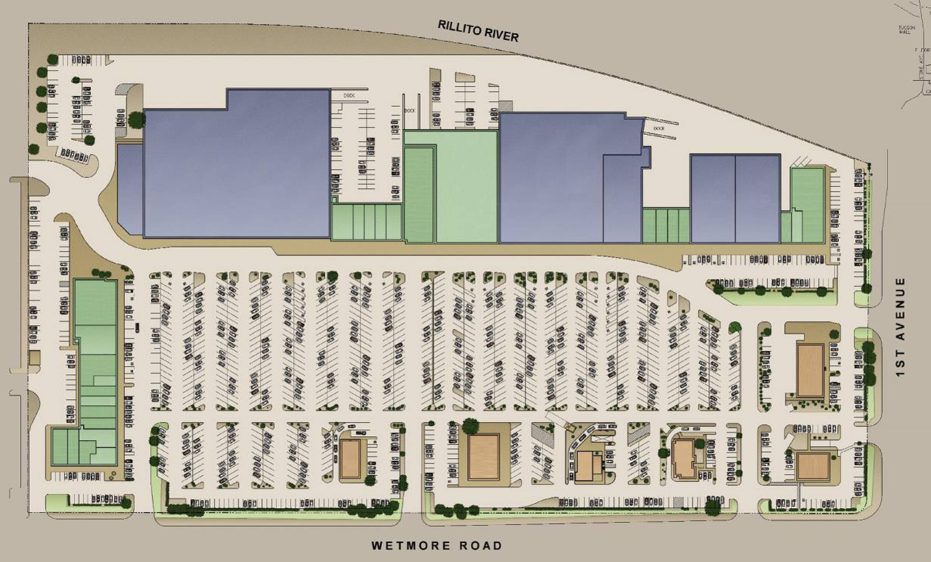 Power center anchored by major retailers near Tucson Mall.
