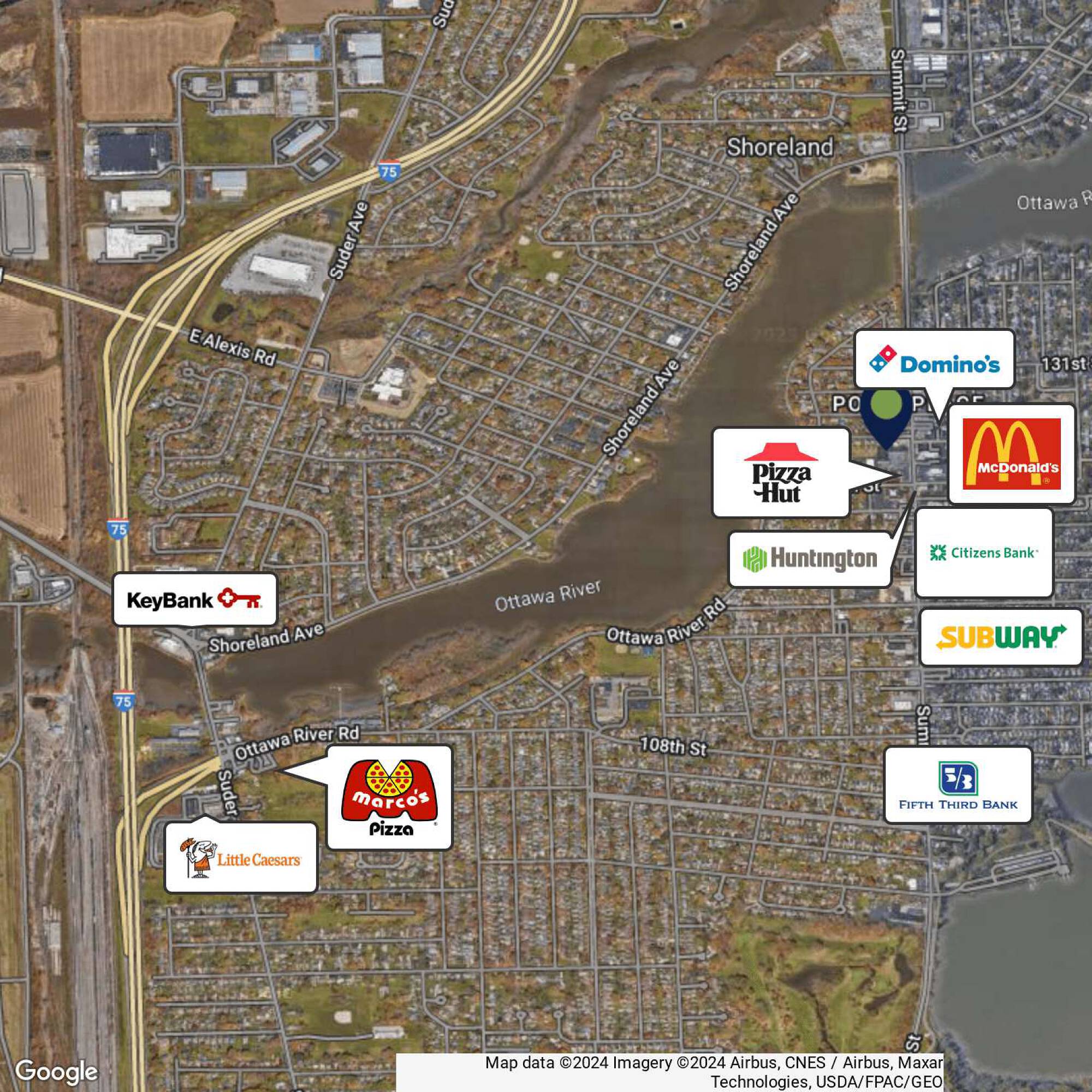 Located in Toledo, the property at 5235 N. Summit St. is situated within a retail hub that offers shopping and dining options. The location is near Franklin Park Mall, which features retailers and eateries. The Toledo Speedway, which hosts racing events and entertainment, is also nearby. This location is suitable for retail and strip center tenants.