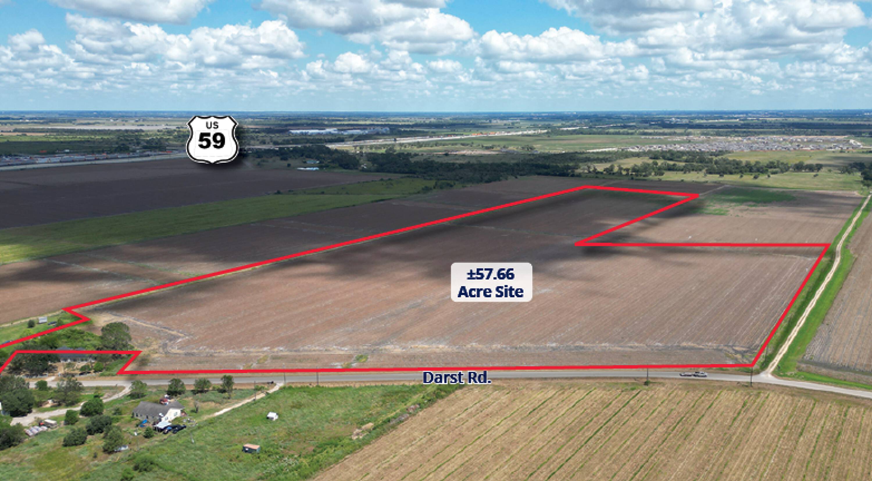 This property features: ±57.66 Acres; Fort Bend County Location; US‑59 Access