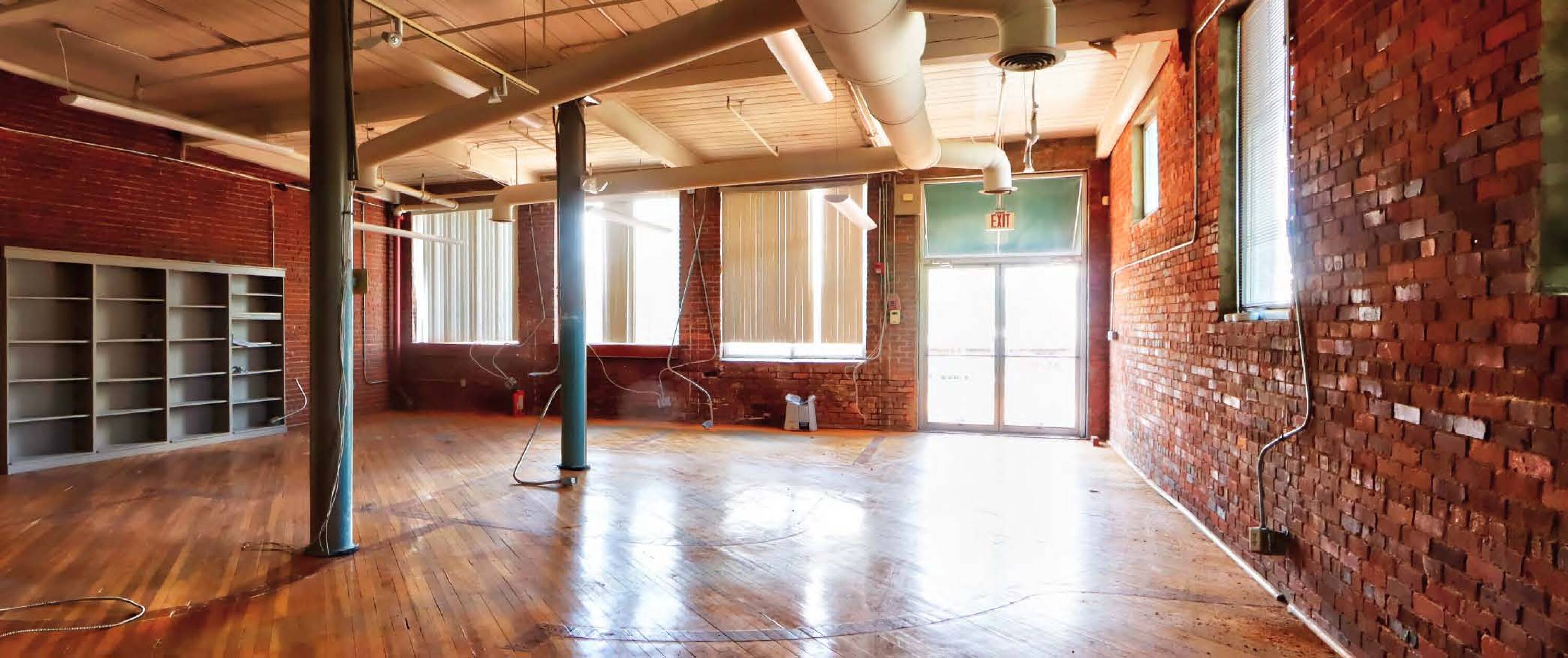 Historic building with parking lot suitable for mixed-use development.