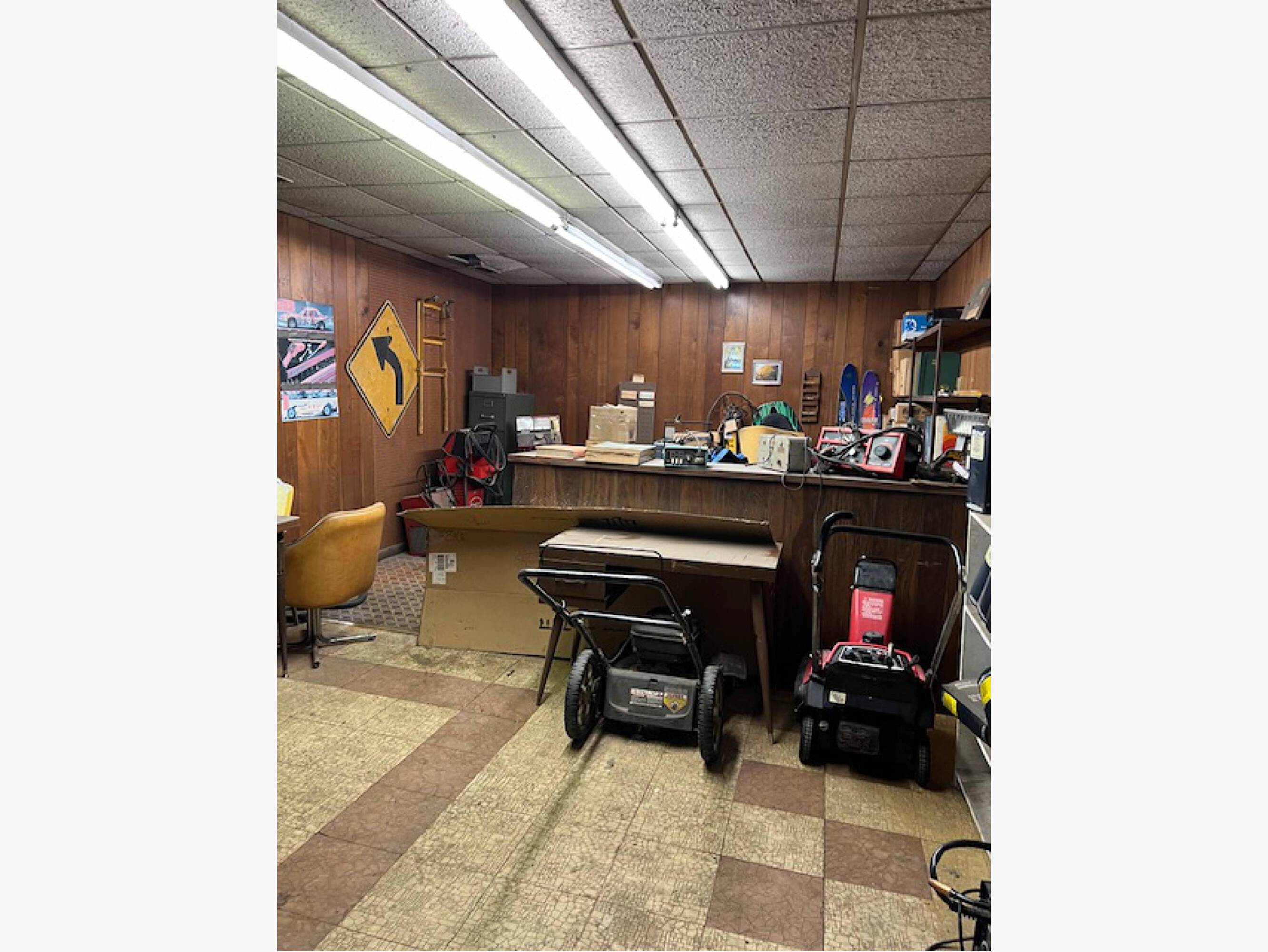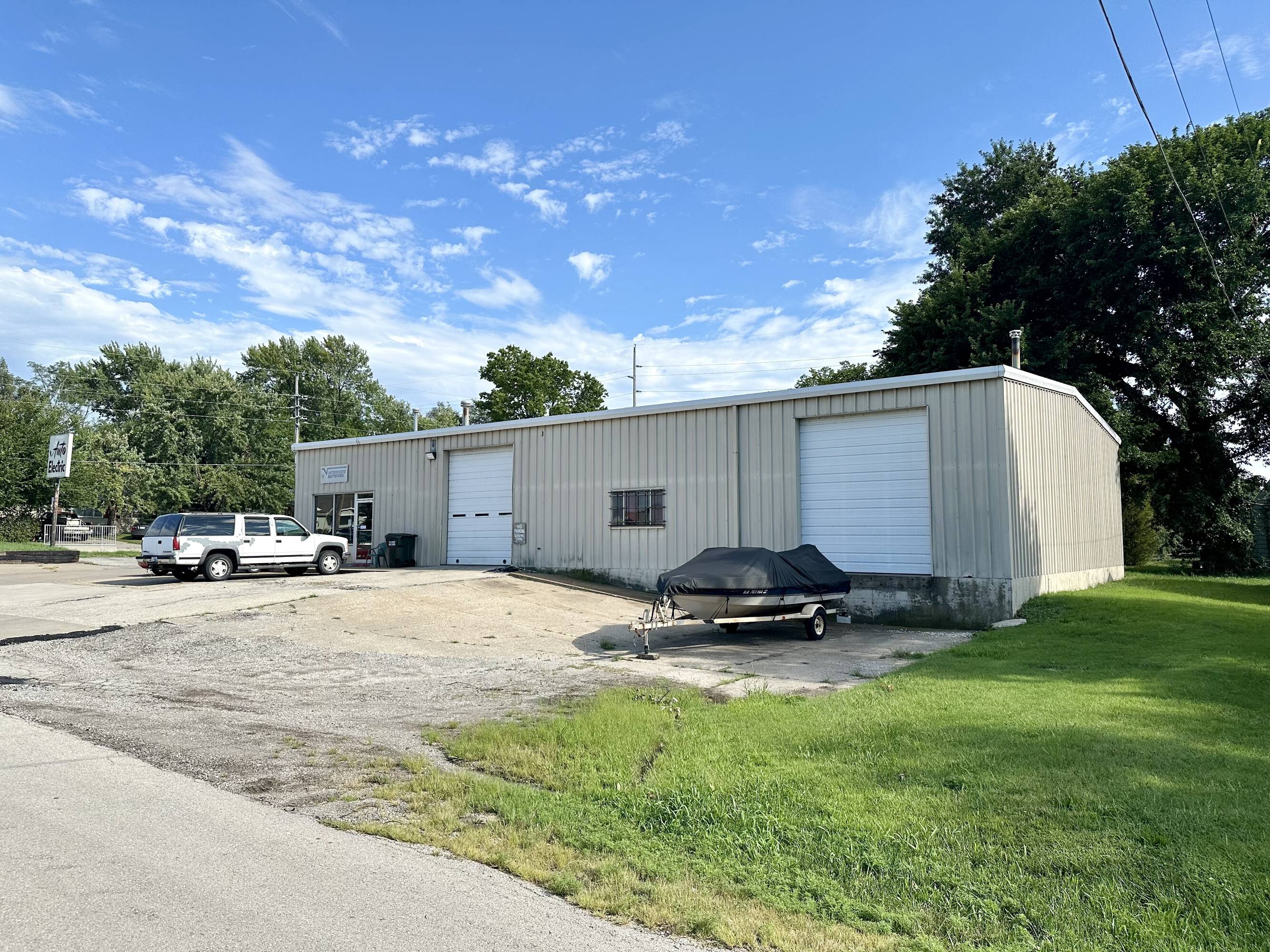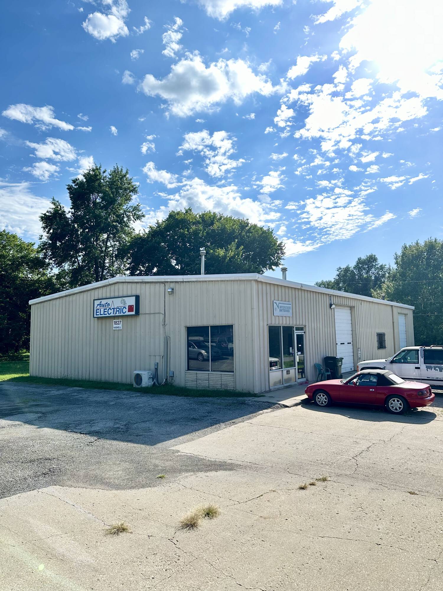 East Lawrence automotive repair shop with office and storage.