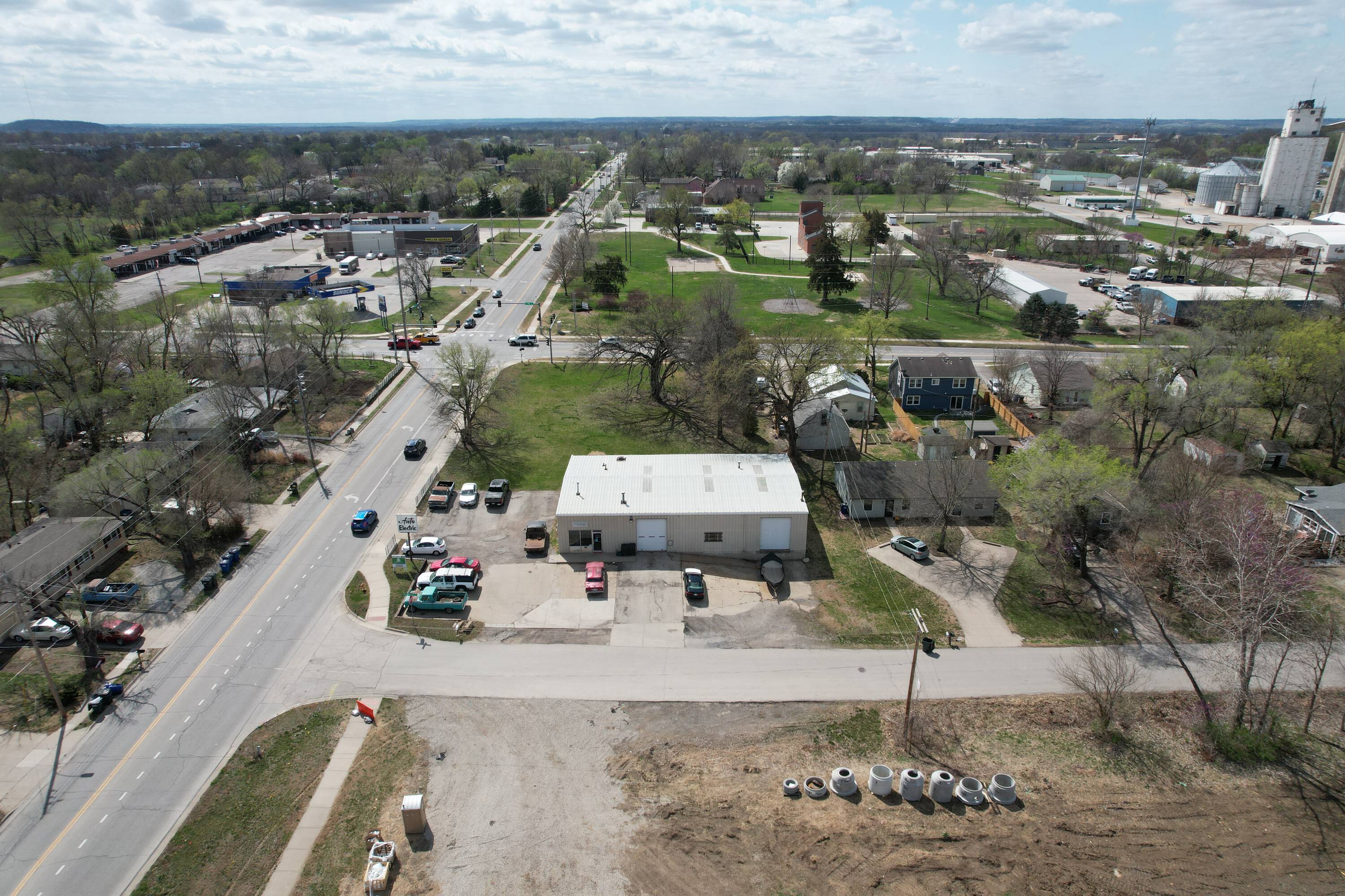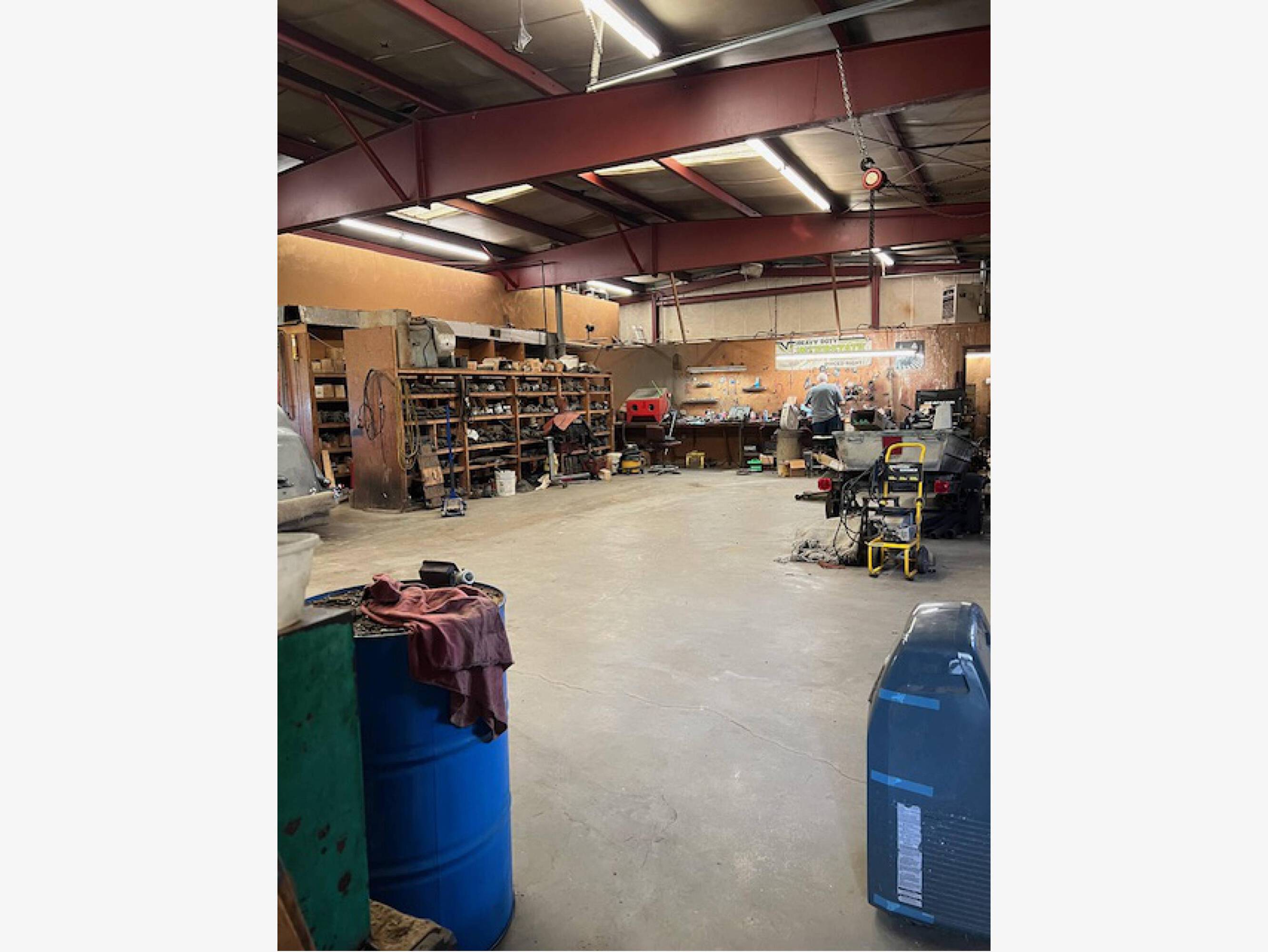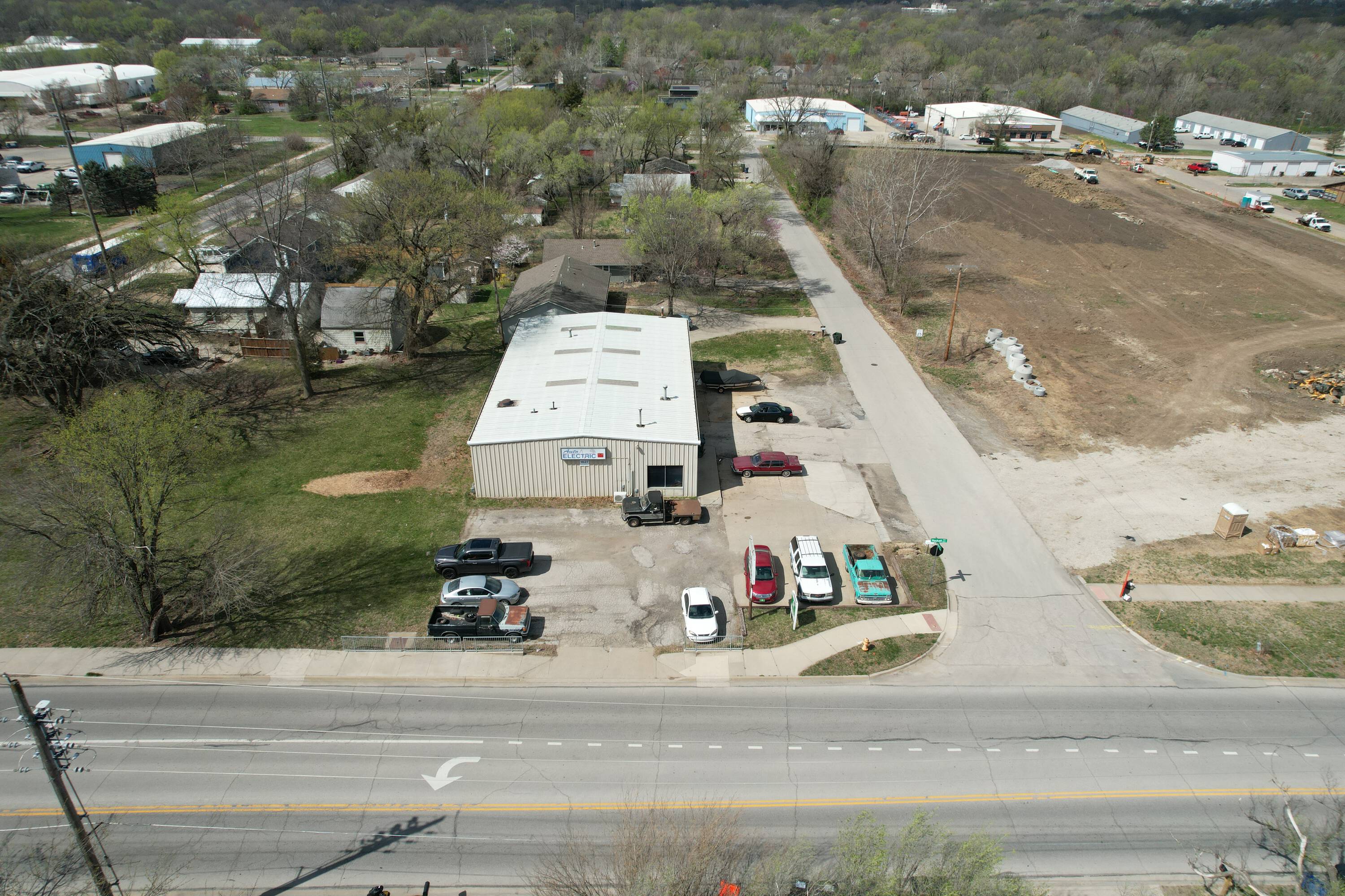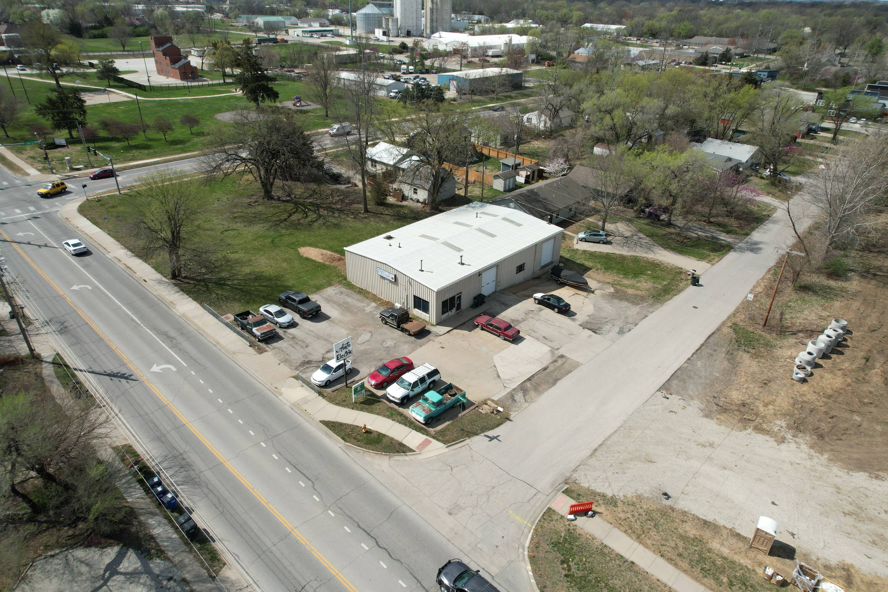 East Lawrence automotive repair shop with office and storage.