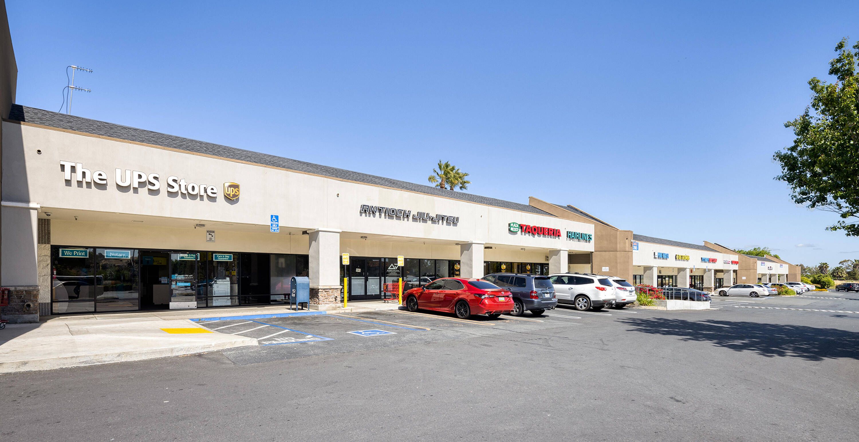 Retail spaces for lease in established Antioch shopping center.