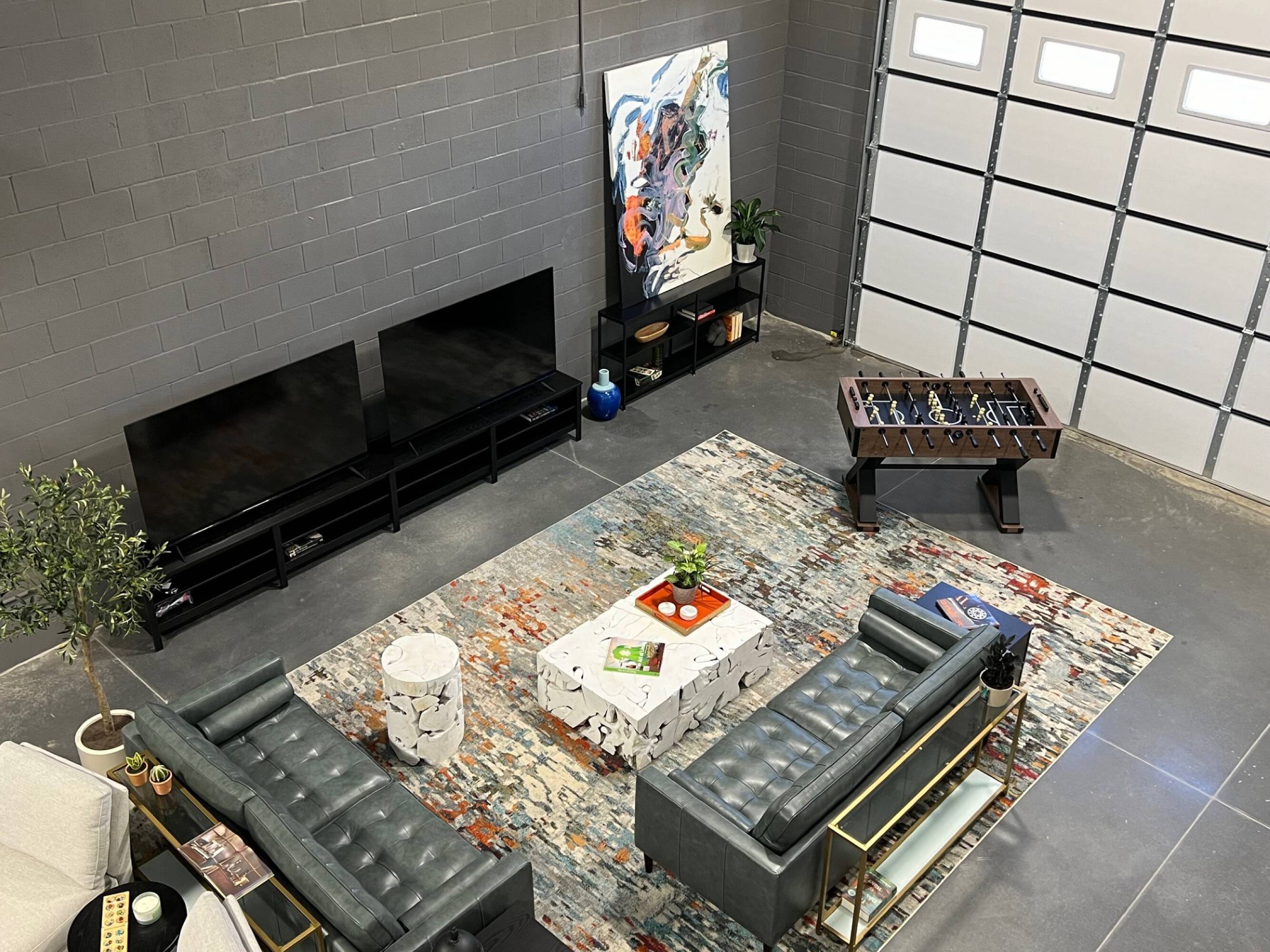This property features: Secure vehicle storage with climate control.; Customizable design to match practical and aesthetic needs.; Private lounge area for relaxation or entertainment.