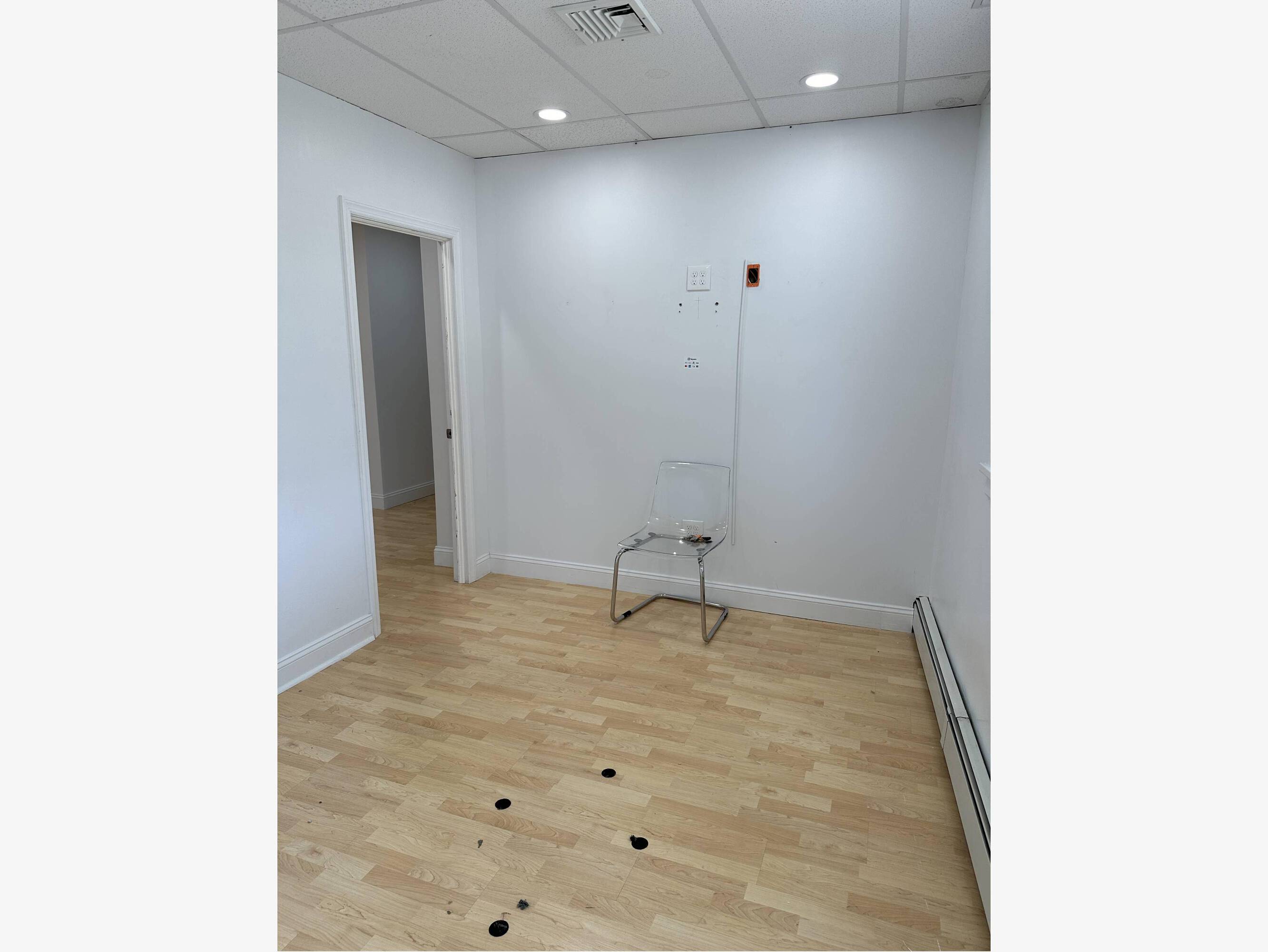 This property, formerly a recording studio, is located in downtown Hillsdale, New Jersey, across from the train station. The space includes a rear door that leads to a common area entrance/exit to the rear of the property, providing access to a municipal parking lot. The rental rate covers taxes, common area maintenance (CAM), and water. The tenant is responsible for 41% of the gas and electric expenses.